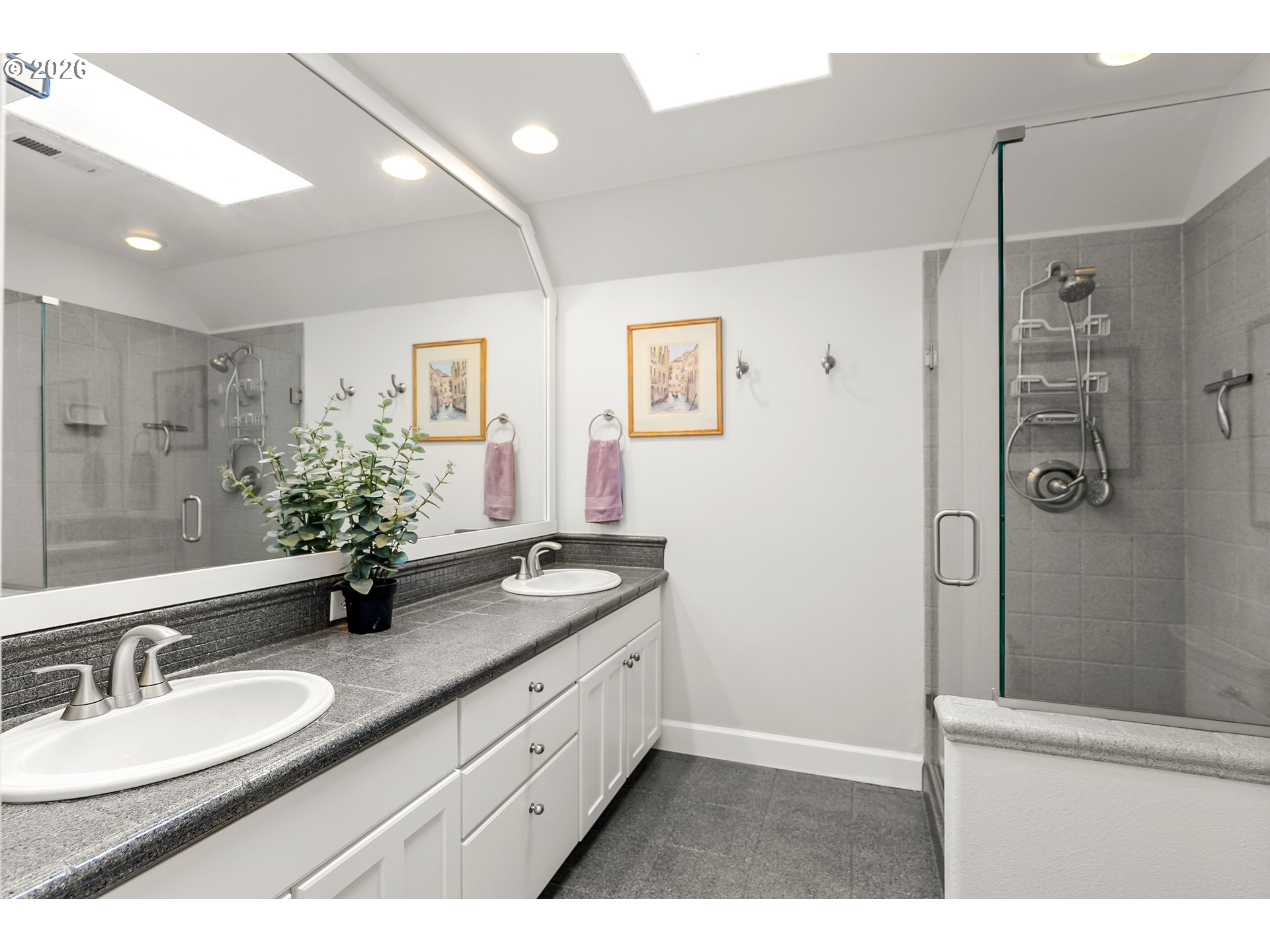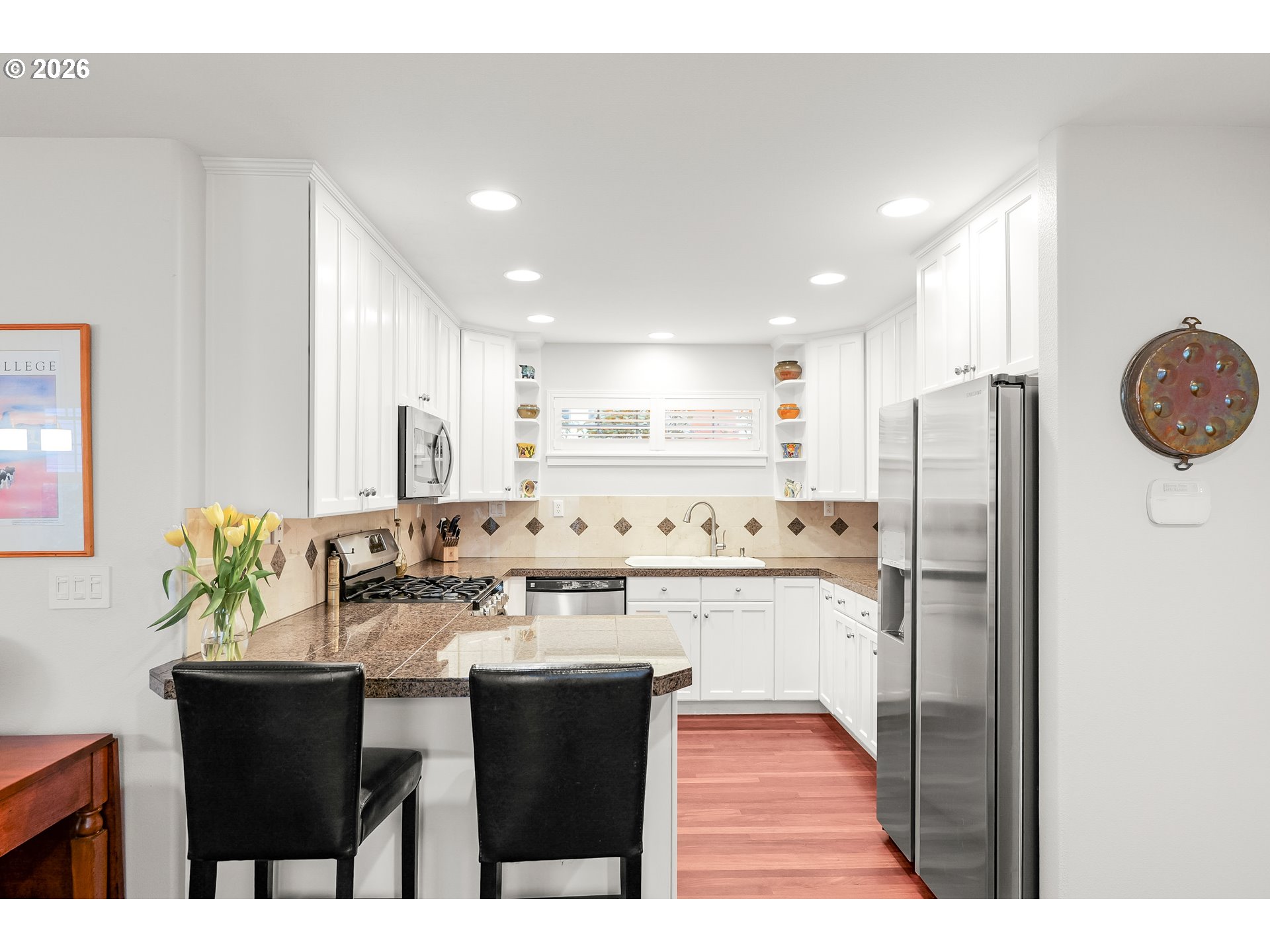 Lovingly cared for Craftsman in the sought-after Forest Heights community. This inviting home combines timeless style with thoughtful updates throughout. Brazilian cherry hardwood floors, plantation shutters, high ceilings, and abundant natural light define the main level. The living room features a gas fireplace, recessed lighting, and an open, comfortable flow into the kitchen, which offers granite countertops, tile backsplash, stainless steel appliances, a gas range, built-in microwave, and an eat-bar perfect for everyday living or entertaining. The spacious owner’s suite is a true retreat with vaulted ceilings, skylights, double walk-in closets with custom California Closets organizers, dual sinks, and a walk-in shower. Two additional bedrooms are located on the upper level, providing flexibility for guests, work, or hobbies. Recent improvements include a new Trex deck and HVAC system (2025), water heater (2024), custom window coverings (2023), newer carpet, disposal, and a roof replaced in 2019. Enjoy outdoor living with a welcoming covered front porch and a covered side-yard patio. Ideally located just minutes from Forest Heights Village Center, Mill Pond, shopping, dining, major highways, and highly regarded schools—this home offers comfort, quality, and an exceptional location.Home Energy Score = 7HES Report = https://us.greenbuildingregistry.com/green-homes/OR10163425