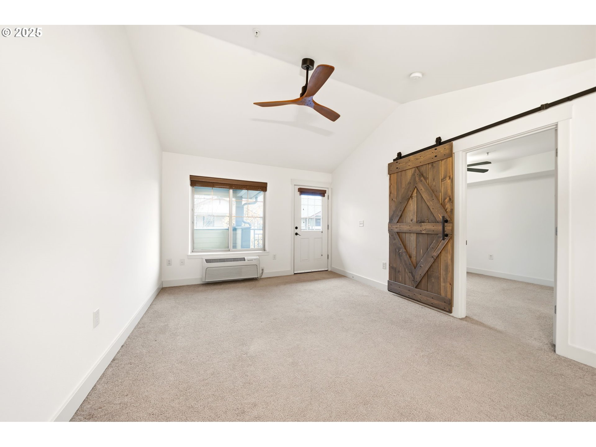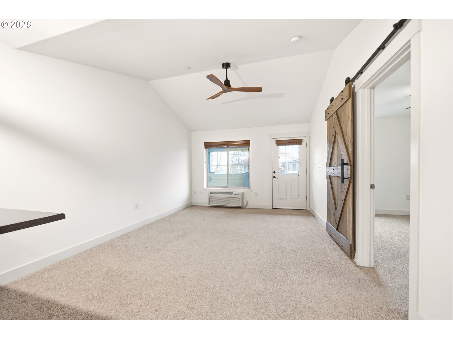 Enjoy soaring vaulted ceilings and no overhead neighbors in this refreshed clean one bedroom unit. Maple kitchen cabinets. Stay cool with ceiling fans in both the Living room and Bedroom. Low HOA monthly fee includes sewer, water and trash. All appliances stay; washer/dryer & refrigerator for move-in ease. Dedicated Off-Street Parking Spot #30 and unbeatable access to Max, Freeways, and Bus lines. Your stress-free life starts here!