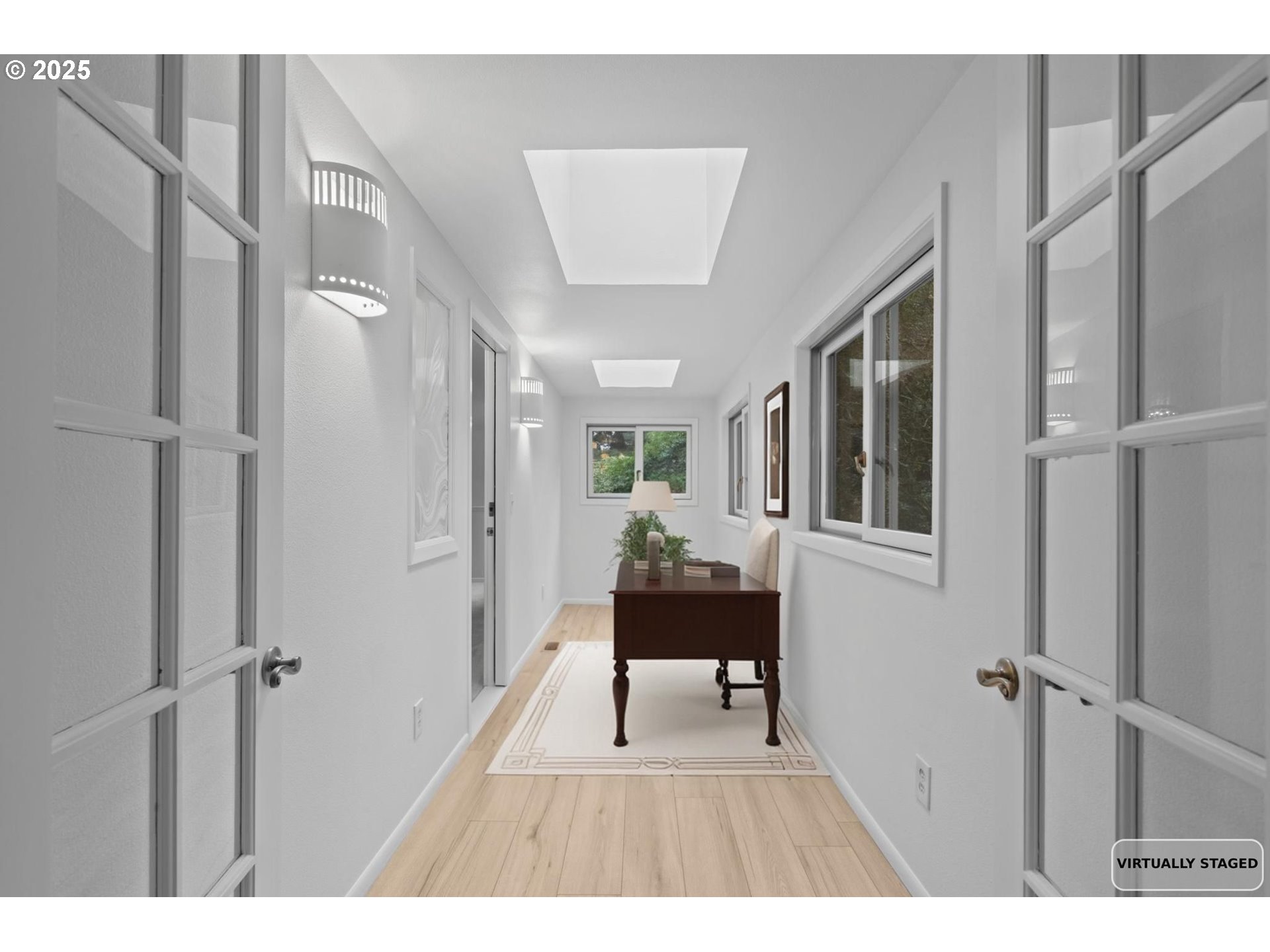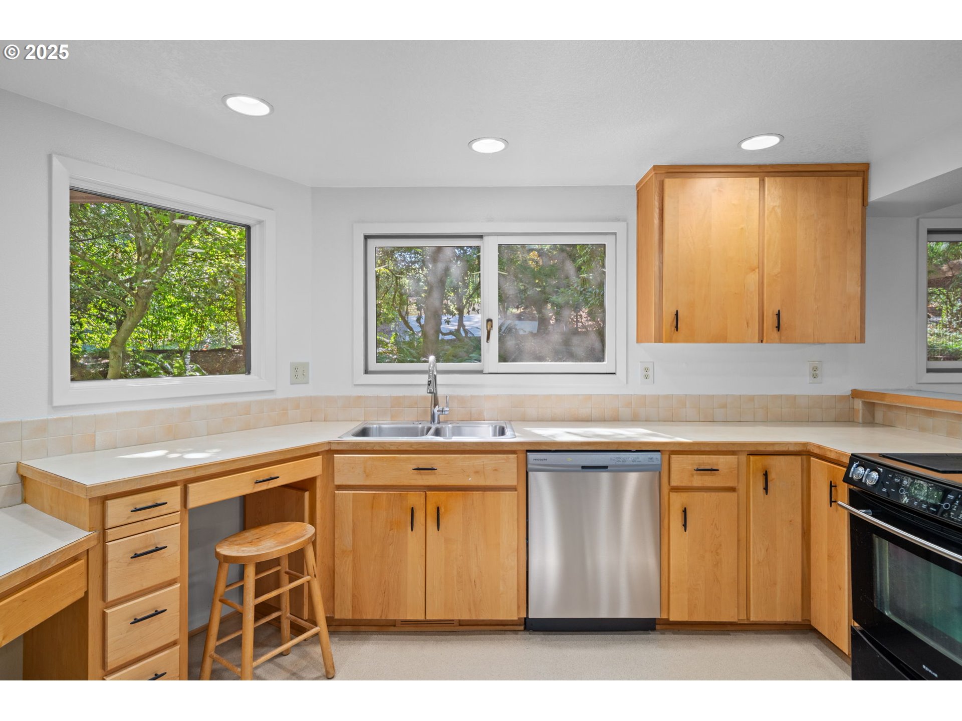 OPEN HOUSE SATURDAY NOON - 2:00. Price Improvement!! Tucked away in the desirable Markham neighborhood, this contemporary-style home offers the perfect blend of privacy and convenience. Move-in ready, it features fresh updates throughout, including new carpet, new interior paint, a brand-new dishwasher, water heater, and garage door opener. The air ducts have been cleaned and the HVAC recently serviced, giving you peace of mind from day one. Step inside to vaulted ceilings, a cozy wood-burning fireplace, and a custom kitchen with abundant storage. A striking contemporary wall of windows floods the home with natural light, creating a seamless connection to the outdoors. A light-filled sunroom and newer back deck further expand your living space, offering the perfect blend of comfort and style. The property offers convenient access to nearby parks and trails. Pet lovers will appreciate the enclosed catio, while everyone will enjoy the home’s thoughtful updates and inviting spaces. This is a rare find: modern comfort, private setting, and move-in ready in one of SW Portland’s most convenient locations.
