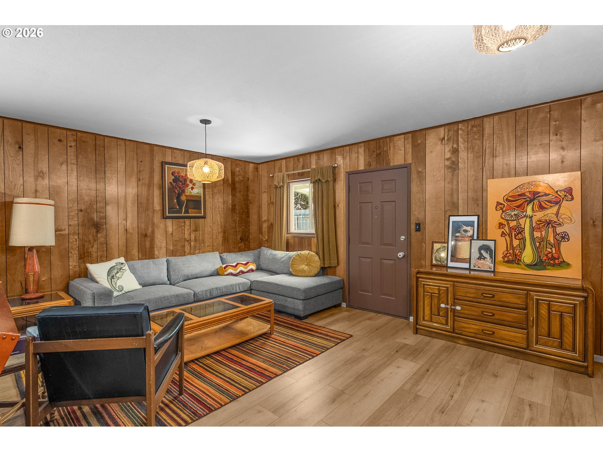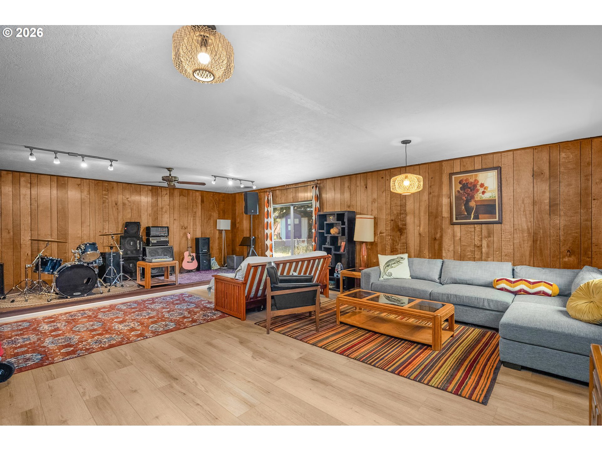 (503) 893-8874Mid-century ranch with big spaces, a creative soul, and a backyard made for living. Located just minutes from the iconic St. Johns Bridge and the shops, restaurants, and community energy of downtown St. Johns, this 1955 ranch delivers more square footage, more character, and more versatility than anything else at this price point. The garage is accessed from the alley providing off-street parking and storage. Inside, original hardwood floors run through the bedrooms and living areas, complemented by new LVP in the kitchen and the massive rear great room. The updated kitchen features new countertops, a painted brick backsplash, full stainless appliance suite including dishwasher, and abundant original cabinetry with modern hardware. The full bathroom has been fully renovated with large-format subway tile, a built-in shower niche, handheld showerhead, and a modern floating vanity — and a permitted half bath with stacked Samsung laundry adds everyday practicality. The big-ticket items are already done too: new roof (2021), upgraded electrical panel and service (2021), and both bathrooms gutted to the studs with new water lines (2025) — so you can move in and enjoy rather than wonder what's next.The 19×27 great room is the home's crown jewel — wood-paneled walls, track lighting, a ceiling fan, and a slider that opens directly to the backyard. Whether it becomes a second living room, a home studio, a gym, or an entertainer's haven, the space will adapt to whatever you bring to it. Out back, the sellers have created something special: a covered pergola with string lights and patio dining, a dedicated garden zone with galvanized steel raised beds, a lawn area, a storage shed, and a fully fenced perimeter. The alley-accessed garage keeps your car off the street and your life oriented toward this private, functional outdoor space. This is a home with room to live, create, and grow — in one of Portland's most authentic and walkable neighborhoods. [Home Energy Score = 2. HES Report at https://rpt.greenbuildingregistry.com/hes/OR10185236]