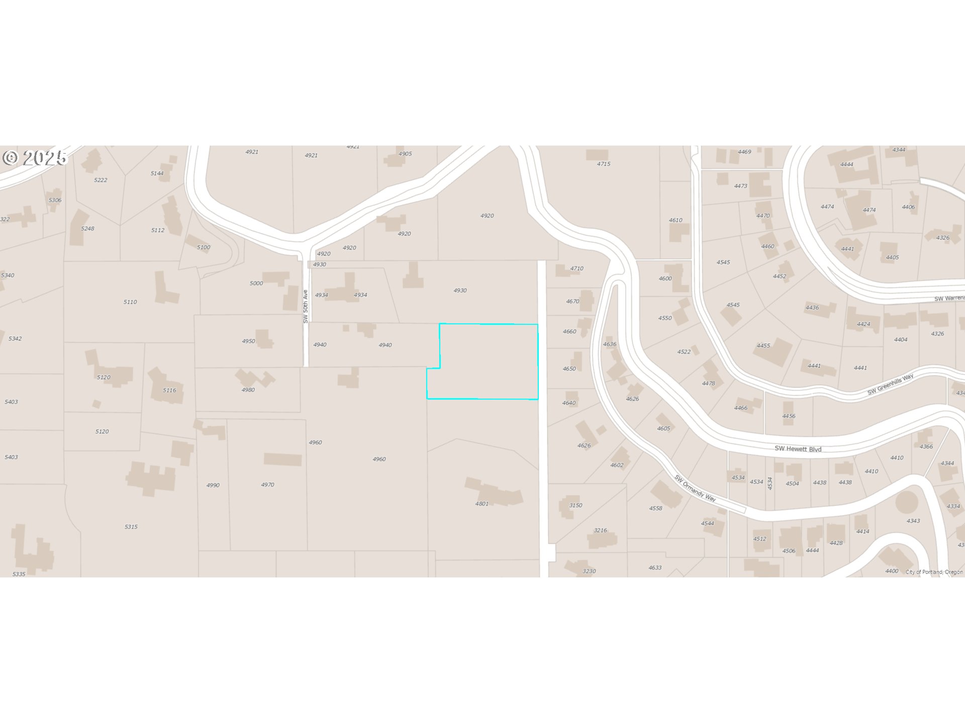 This interesting 1.4 acre potential flag lot sits behind the home located at 4940 SW Hewett. The home located at 4940 sits on 1 acre. The two separate tax lots were once owned together by one but currently are owned by separate owners. There is an easement of record to cross the property at 4940 to access the lot for sale. Zoning code is R20, Lot size is 60,000 square feet. There is also an incomplete road on the opposite side of the property that stops a couple of lots before this property. It is unknown if the road could or would ever be extended. Buyer due diligence strongly recommended. Its a very nice sized piece land for this area. Seller is an Estate. Personal representative of estate has no knowledge as to any future development potential.