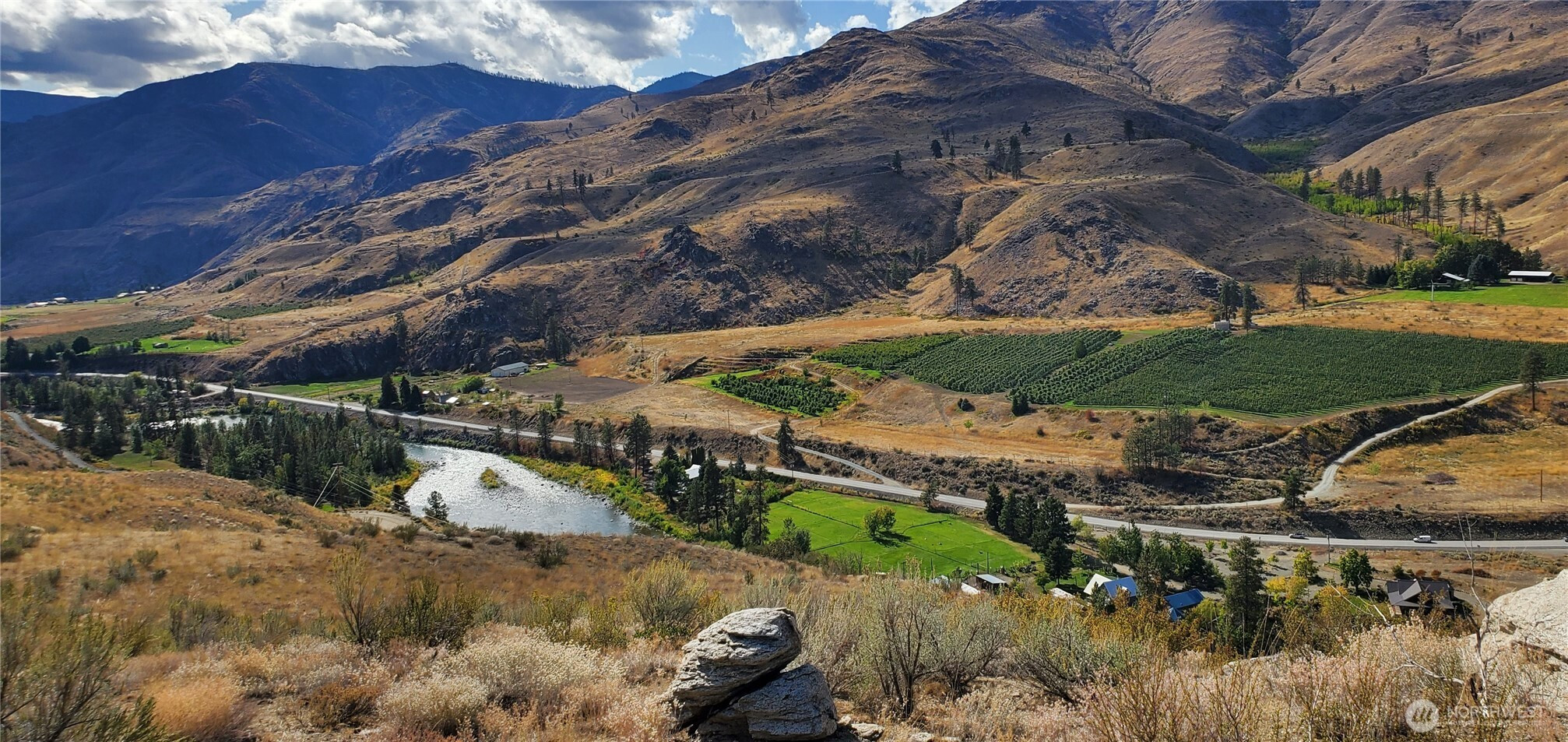 Spectacular view property 9+ acres, set on a point above the Methow River Valley in the gated Methow River RanchPhase II. Sweeping river, mountain, and territorial views with privacy/full sun exposure at the end of a quiet cul-de-sac.Majority of lot is flat with building pad and road to it. Approved standard septic system with shared well (undeveloped).Power is underground. Close to the Methow River, Alta Lake, Twisp, Winthrop, Pateros, Lake Chelan andrecreational access to year round sports. Close to Loop Loop Ski Bowl. Gated community waterfront area on the Methow River with BBQ, sheltered picnic area & restrooms. Excellent access for boat launch and fishing.