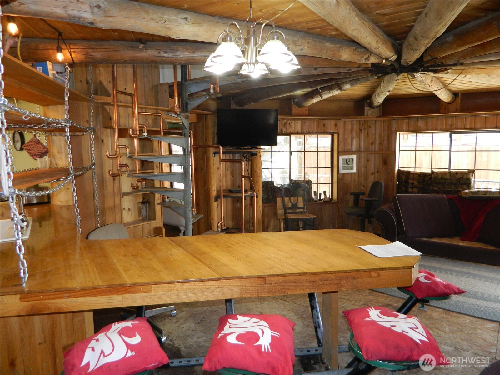 Year Around creek! 40 acres of seclusion and quiet privacy. Very custom designed and built unique home in Aeneas Valley. Beautiful partial wrap deck overlooking the views from the valley as well as the creek rolling past below. Family room complete with pool table, built in dining area with custom designed seating, copper tubing spiral staircase to the bonus room/potential added bedroom and upper bedroom, propane stove/range as well as wood fired cook stove, fire protection pond, a crows nest on the roof! Large metal roofed pole structure to be completed into a barn or shop if desired. A garage/shop with an upper level. A private well, power and septic all in place many unique features! Possible seller financing available!