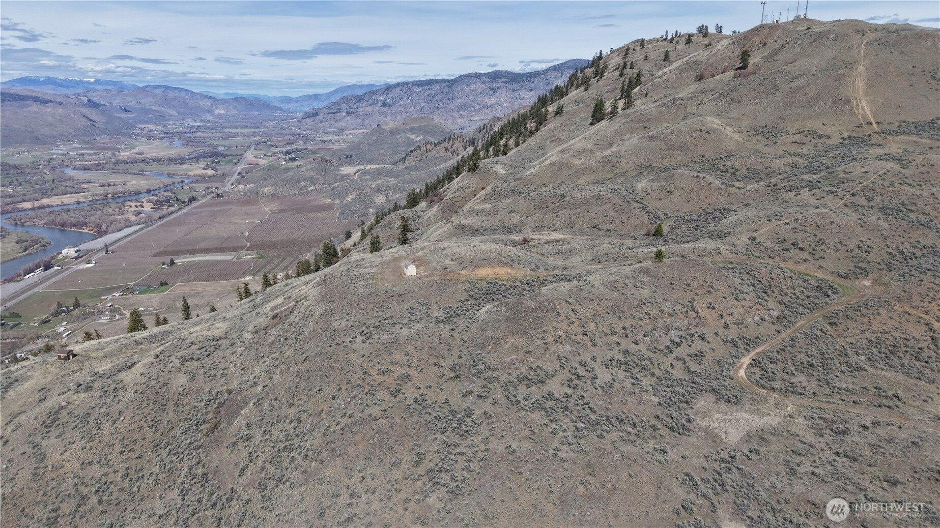 Four parcels, 80 +/- acres. commanding views of Okanogan Valley on Picken's Mountain! large cabin/shed, RV parking, Mule deer & mountain goats abound. A truly special place, power nearby, but this would make an excellent off grid build! Electricity is available on adjacent property. Good 5G cell service (cell tower on adjacent property)