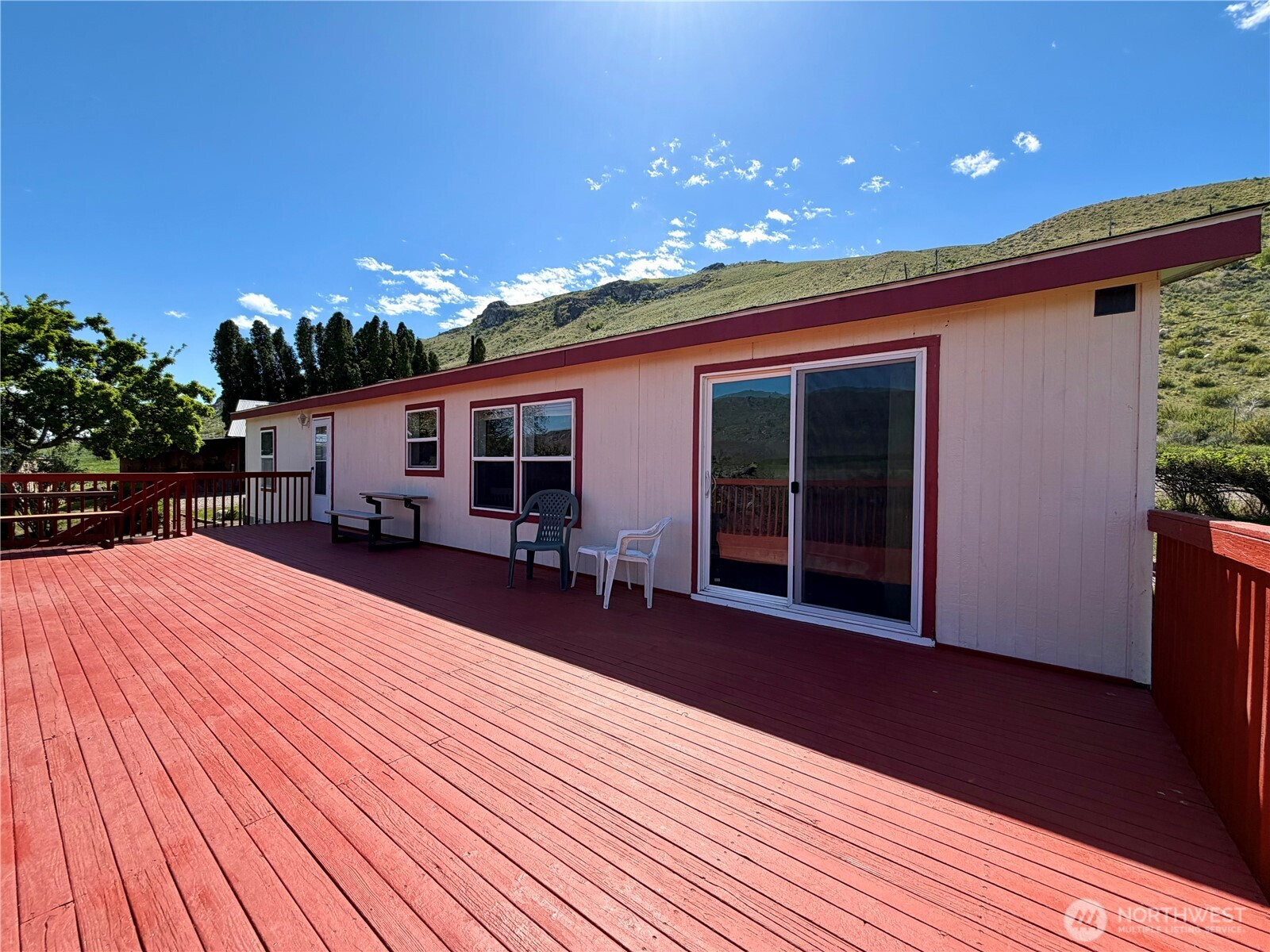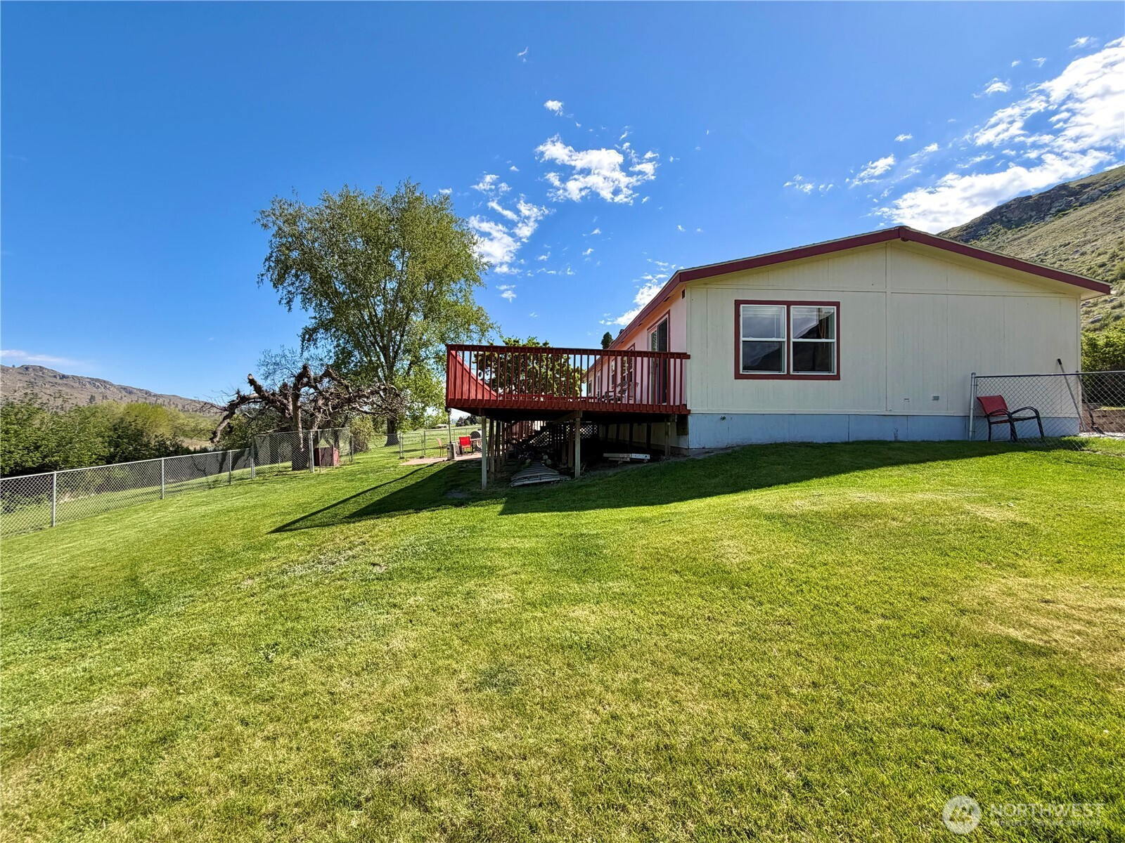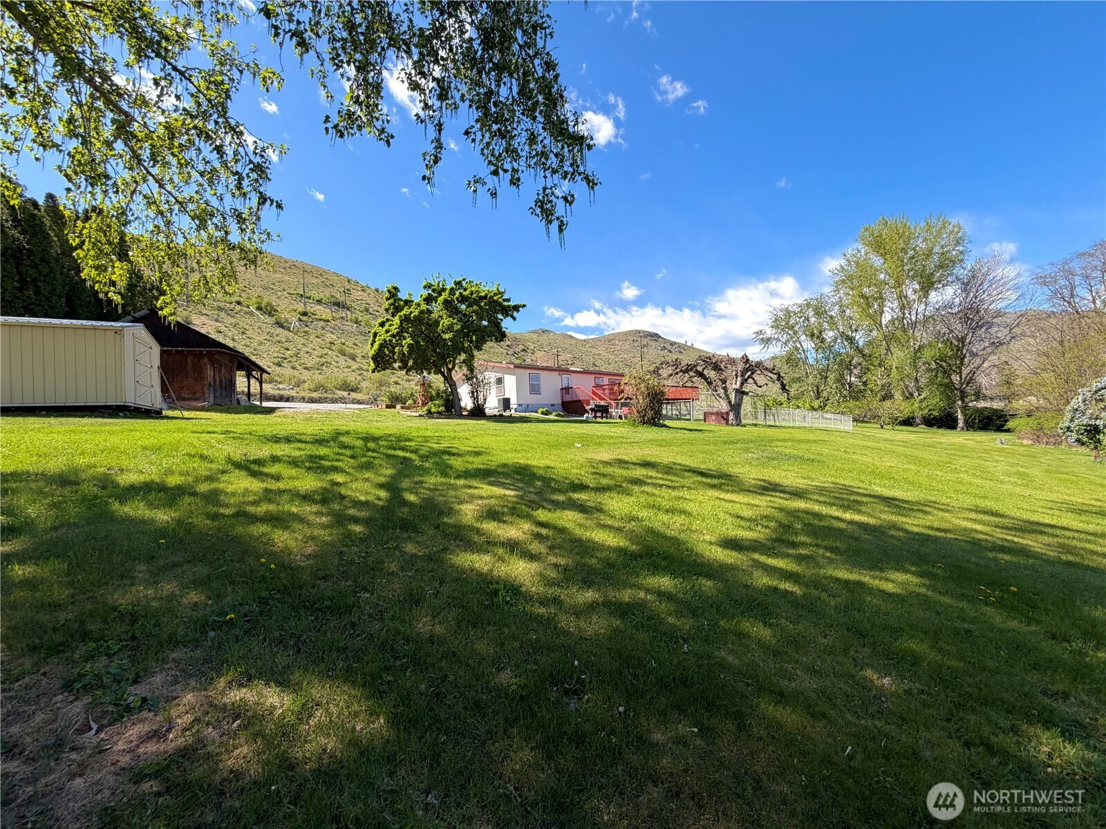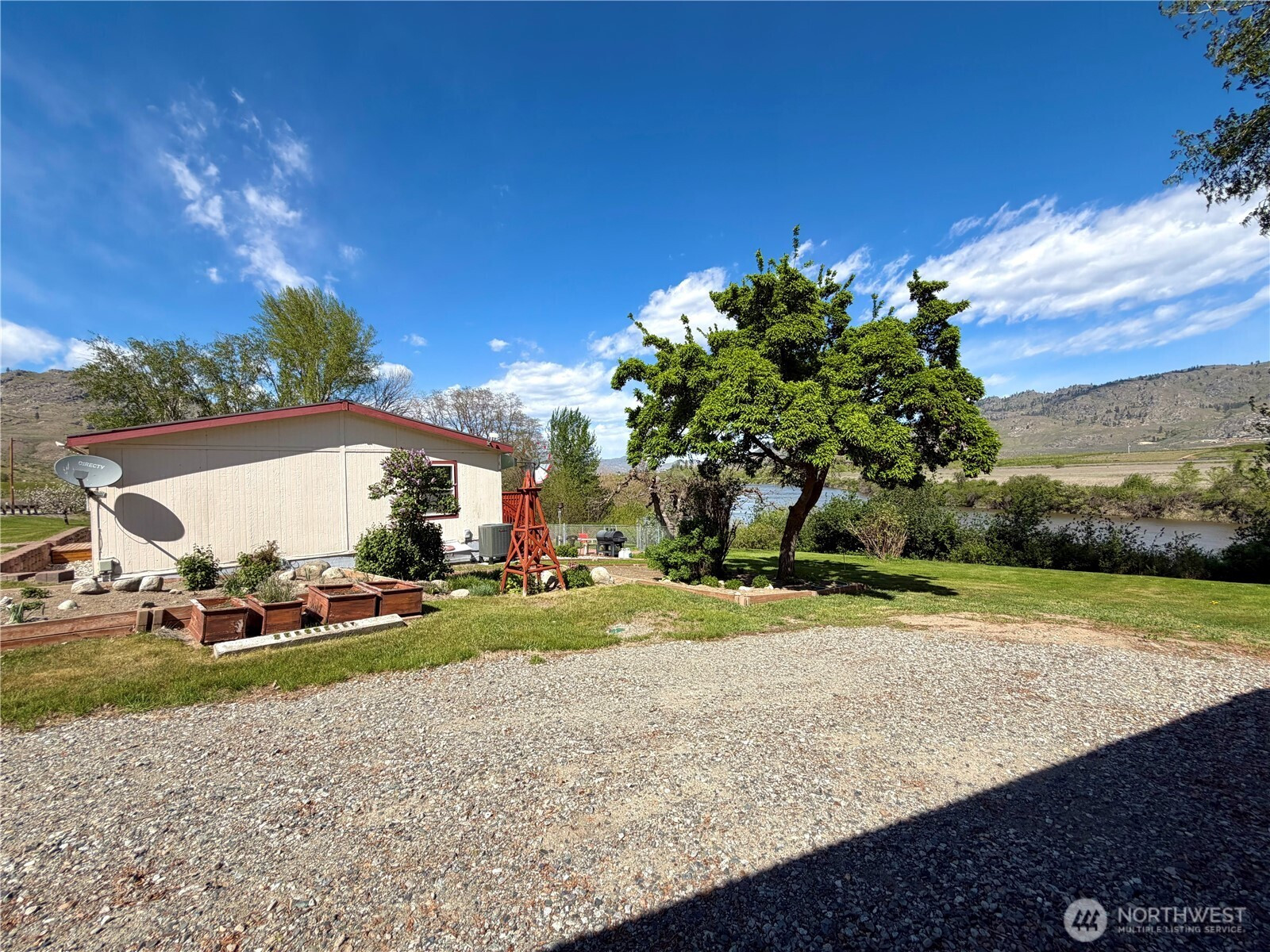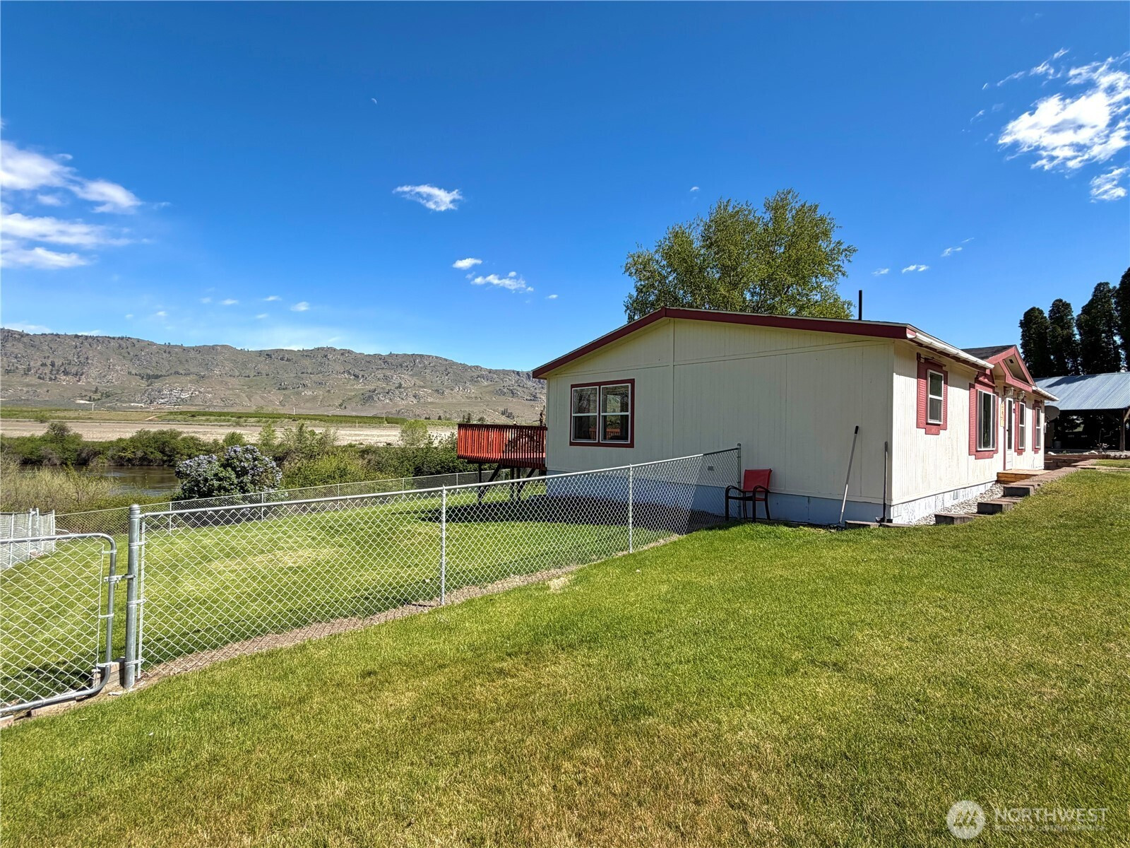 Malott - Okanogan River View! This well maintained double wide MH offers 3 beds/2 baths, 1,500+ sqft on over an acre. Inside, you’ll find the extensive living room w/an electric fireplace and a dining area adjacent to the kitchen. The updated kitchen is the heart of the home, with all new ss appliances, an island, pantry, abundant cabinetry, skylight & a cozy morning room; all perfectly positioned to capture serene river views right from your window! The primary suite is a true retreat; filled w/natural light & sliding door access to the 550+ sqft deck; ideal for enjoying peaceful mornings, stunning sunsets, and frequent visits from local wildlife. The en-suite bath w/double vanity, soaking tub, separate shower & walk-in closet. A utility room with backyard access. Recent updates including appliances, windows, heat pump, furnace, septic system, lighting fixtures and more, offer comfort and peace of mind. Step outside to your own private oasis featuring a variety of fruit trees. From nectarines, white donut peaches, Asian pears, cherries & apples. Plus garden beds and space to grow your own produce. Partially fenced backyard w/patio is ready for entertaining. Detached carport w/fully insulated shop provide excellent storage & workspace. Private well, additional well with water rights, RV hookup & direct access to the river. You can stroll down to fish & relax by the water. This unique property blends comfort, nature & privacy. Your slice of river view living!