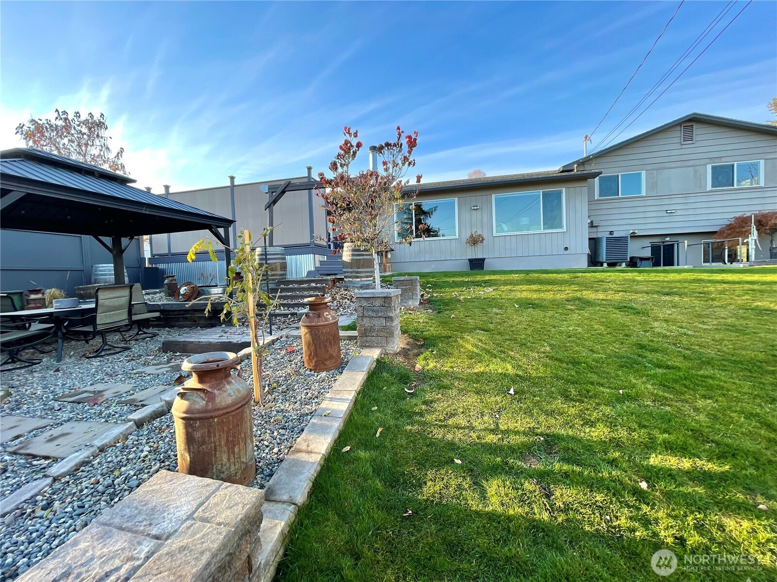 OKANOGAN - COMPLETE REMODEL on 1/2 ACRE IN CITY LIMITS! This 5 bed/3 bath charming, 2,300+sqft home offers an extensive kitchen w/dining area, ss appliances, farmhouse sink, built-in oven, pantry & lots of cabinets; large bright living room w/picturesque windows, ceiling fans, double sided fireplace & french doors to the man cave; primary suite w/double closets, 3/4 bath w/laundry shoot. Finished daylight basement w/laundry room, 2nd primary bedroom w/1/2 bath en-suite, storage & outdoor access. Step out to a fenced backyard oasis w/gazebo, enclosed deck w/hot tub, 24x30 shop w/wood & pellet stoves, basketball area; plenty of parking includes attached 2-car garage, RV, carport, driveway, off-street & gated access.