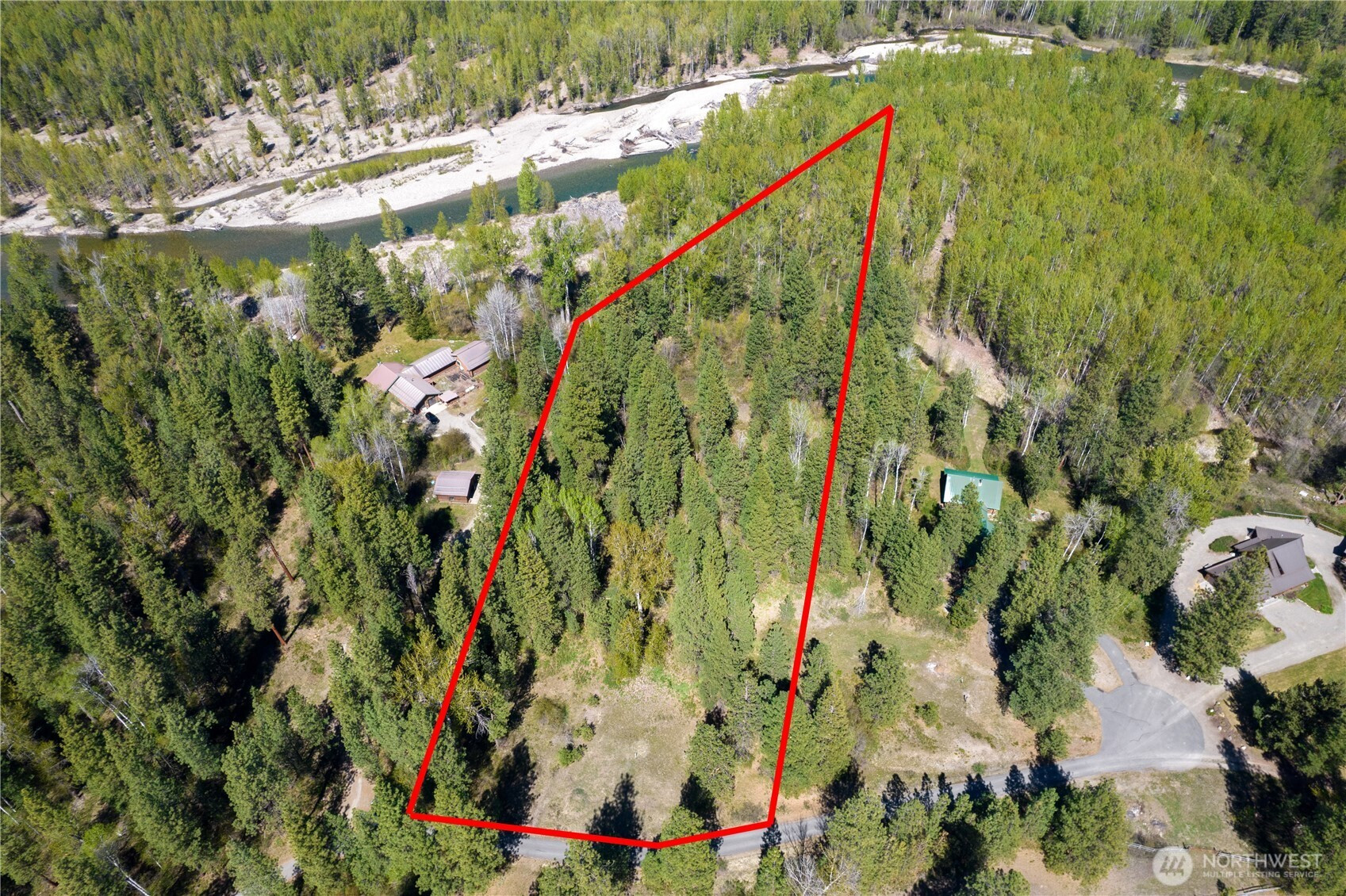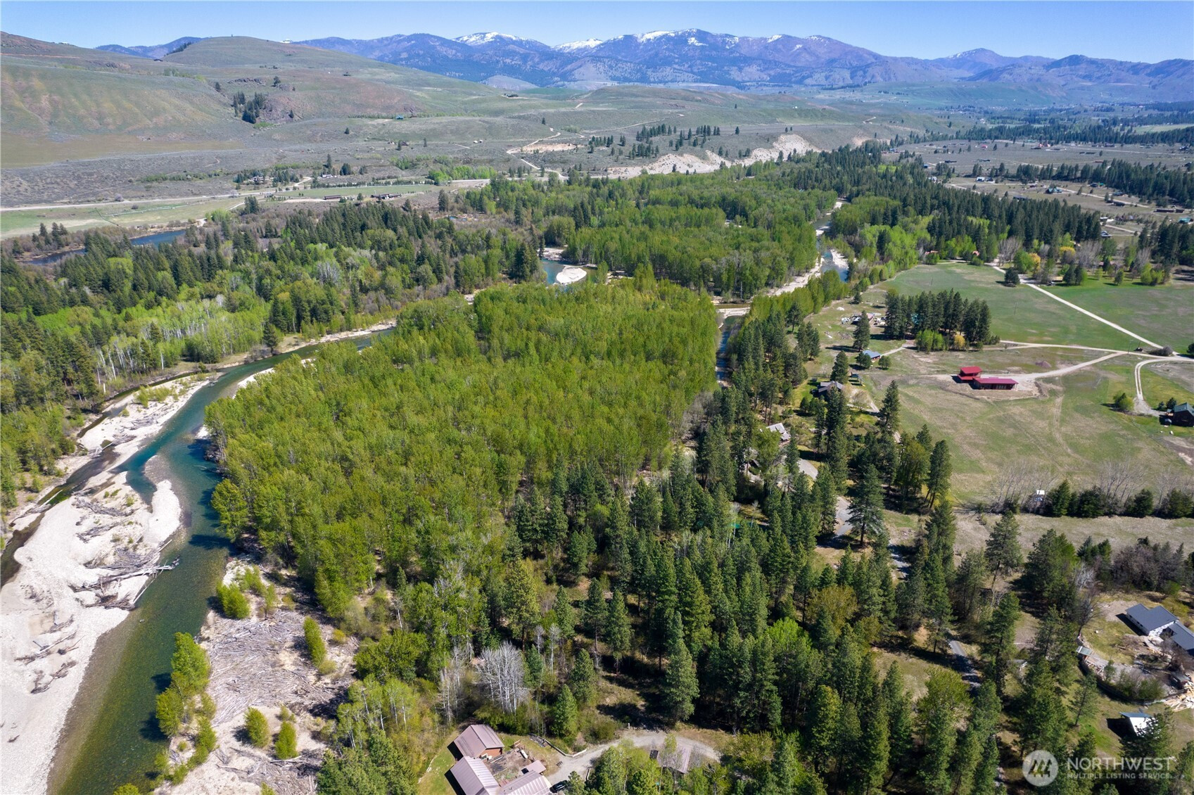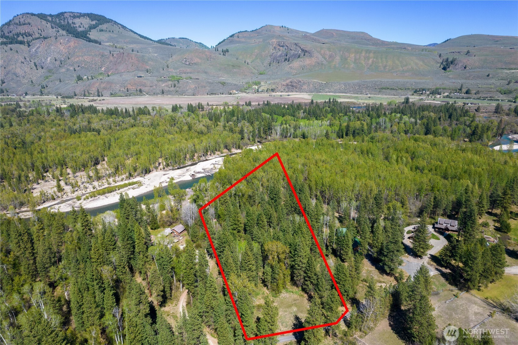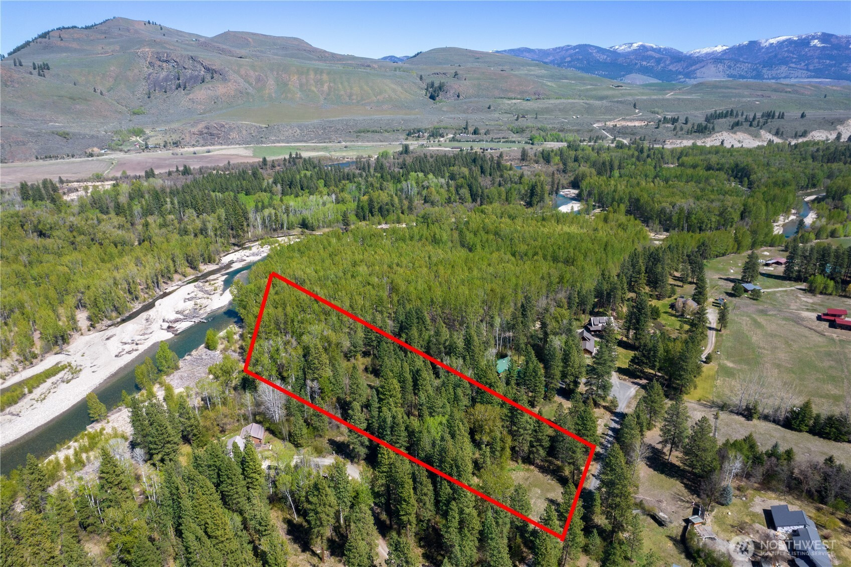 Wolf Creek building site with exclusive Methow Riverfront access. Only five miles from Winthrop but an absolute world away- steeped in privacy and natural beauty. Build your full time or vacation home on 3+ private acres along a half-mile of shared riverfront. Be one of five parcels sharing 25 acres of pristine riverfront common area. Private well is in place. A 2026 updated geotechnical report issued from Nelson Geotechnical Associates in Wenatchee, clearly outlines the setback needed to clear both the 50 year floodplain and the Channel Migration Zone. The level, south-facing suggested homesite is partially cleared with power in the street. Full growth Ponderosa Pines and Douglas Fir trees give way to Aspens and Cottonwoods as you enter the vibrant riparian habitat leading to the Methow River . Explore meandering overflow channels and scenic sandy beaches that beg you to stay all summer and play. Just you, a beach chair, and a cooler. The Methow Trails system is less than 1000 feet away from the property. Hop on that bike, put on your hiking shoes, or cinch up those ski boots to explore the longest cross country trail system in North America.