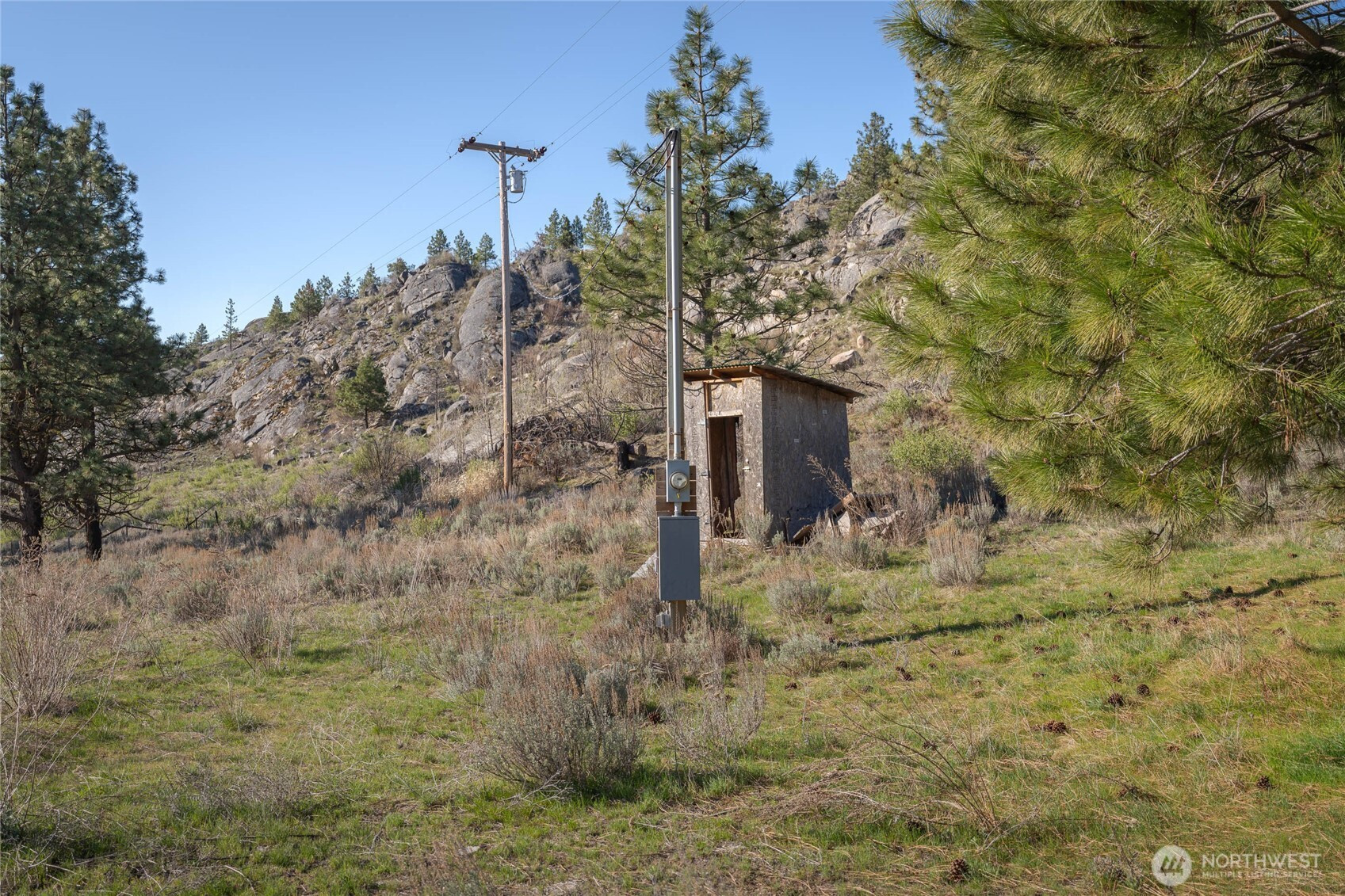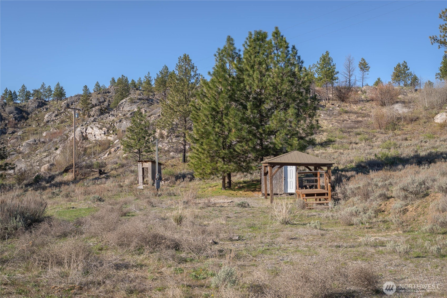 Private and expansive 40+ acre property located on the Colville Reservation, offering a rare opportunity for recreation, camping, or future building. This beautiful parcel features rolling terrain with a mix of open brush and light tree coverage, creating a peaceful and secluded setting with. multiple level areas ideal for building or setting up camp. The property is equipped with electricity, making it ready for immediate use. A covered camping pergola with a deck and stairs provides a comfortable space to relax and enjoy the surroundings. A storage outbuilding is already in lace for convenience, wither for equipment or recreational gear. With easy access and a variety of usable terrain, this property is wee suited as a private getaway, hunting basecamp, or future homesite. enjoy wide open space, matural beauty and the flexibility to create your ideal retreat.