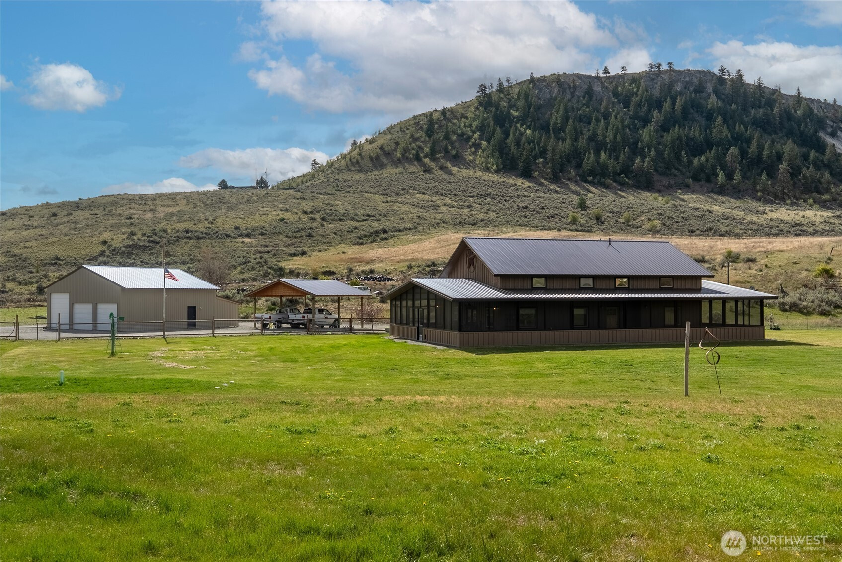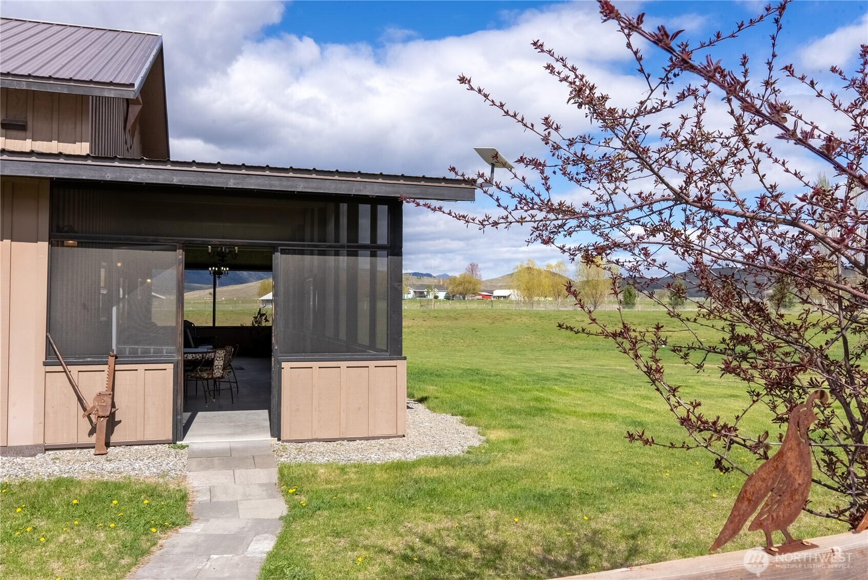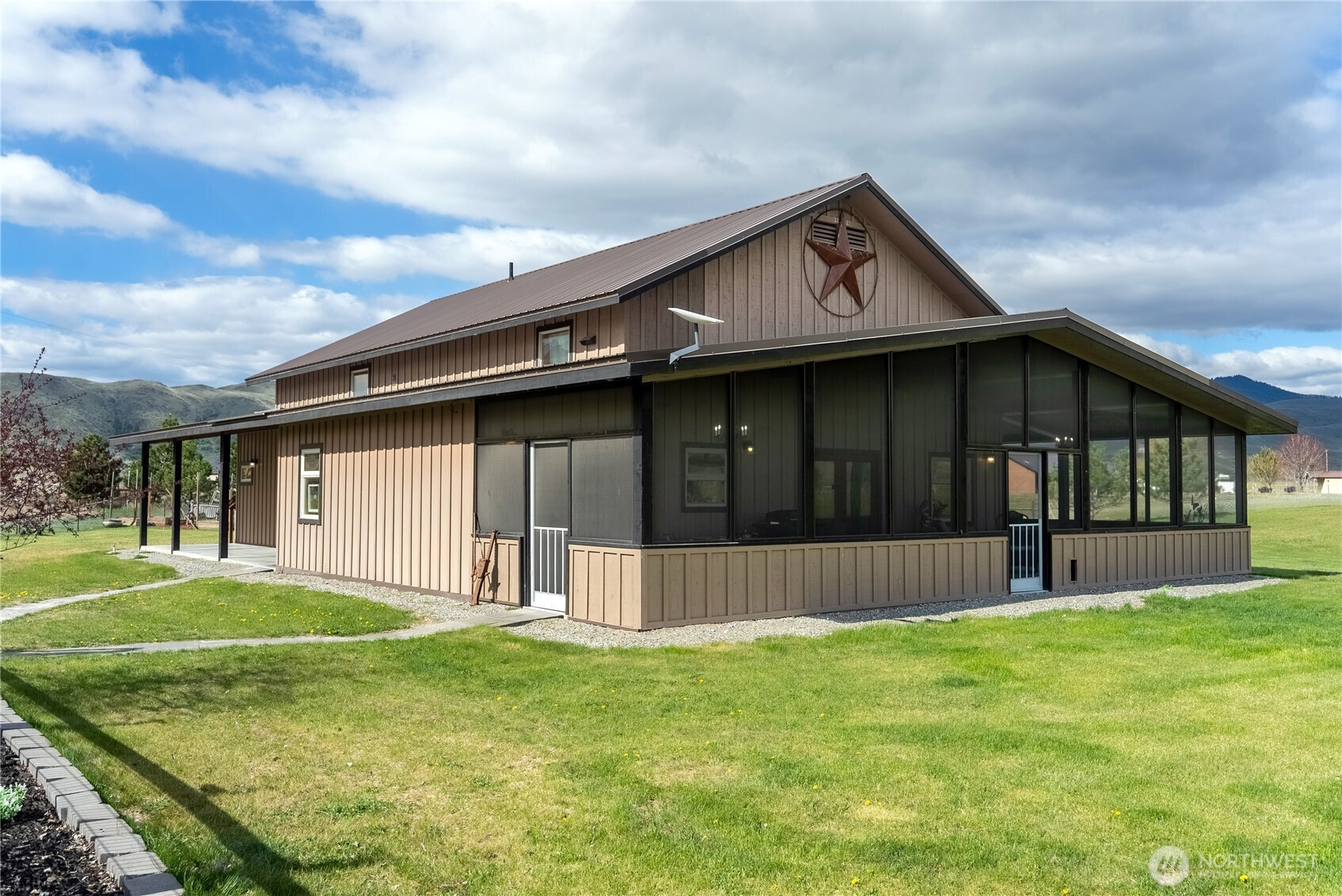 Exceptional quality, beautiful grounds and convenient location describe this special Tonasket property. The home, built in 2014, is wrapped in covered patios with 3 sides enclosed with pony wall and screening providing great usability in all weather. The home features a spacious Master bedroom with walk-in closet and lovely spacious bath, a second good sized bedroom, dedicated Office/Flex room, 2nd full bath and 1/2 bath. The Great Room boasts an open and inviting space providing connection between the Kitchen, Living and Dining Rooms. The Kitchen is expertly put together with beautiful glass door upper cabinets, SS appliances, large pantry and solid surface counters. There is a nice and useful Mud/Laundry Room with direct access to a covered patio. The detached Carport and the 36x36 shop with 3/4 bath and lean-to off the provide parking and work/storage space out of the weather. The property is fenced along with additional fenced garden space. Irrigation from Aeneas Irrigation provides the ability to keep the ample grass and garden space thriving. A unique opportunity in a move-in-ready home conveintly located in the heart of North Central Washington.