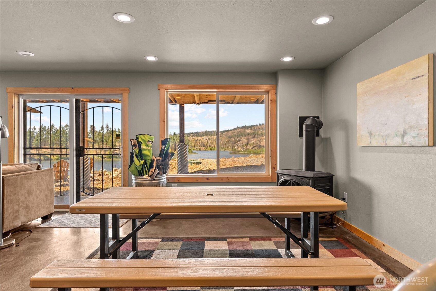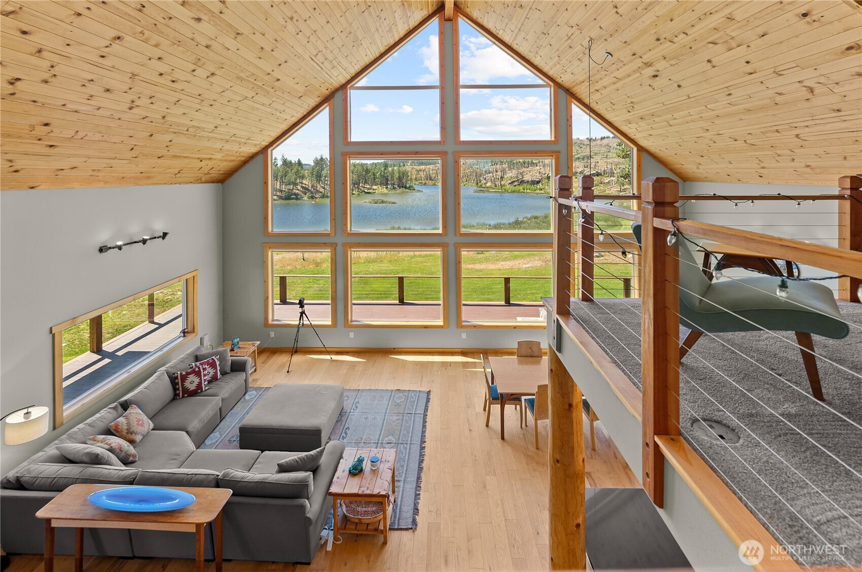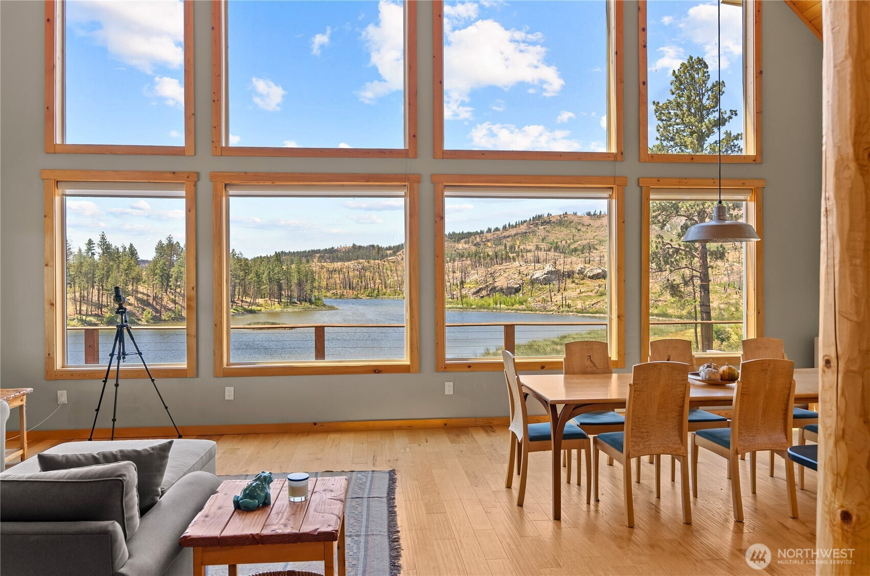 A once-in-a-lifetime Shalberg Lake waterfront opportunity! This exquisite off-grid lakefront retreat on over 60 acres features more than 1,200'+ of private shoreline, delivering endless beauty, fishing, boating, kayaking, and wildlife viewing in serene Okanogan County. Masterfully built in 2017, the 2,904 sq ft home boasts soaring vaulted ceilings, a dramatic wall of windows framing panoramic lake and mountain views, a modern kitchen with premium energy-efficient appliances, advanced solar panels for reliable sustainable living, and top-quality construction throughout. Enjoy ultimate privacy at the end of a peaceful road, yet easy access to Riverside and Omak amenities. A spacious insulated shop adds versatility for workshops, vehicles, or storage, making this self-sufficient sanctuary as functional as it is stunning. Your private lake escape awaits!