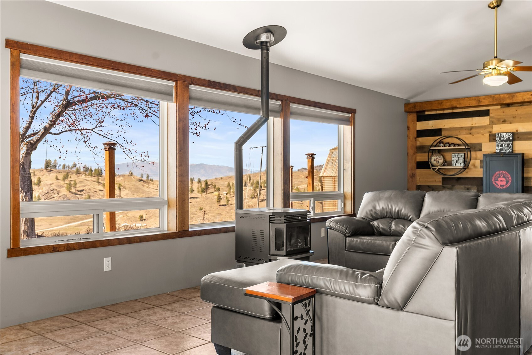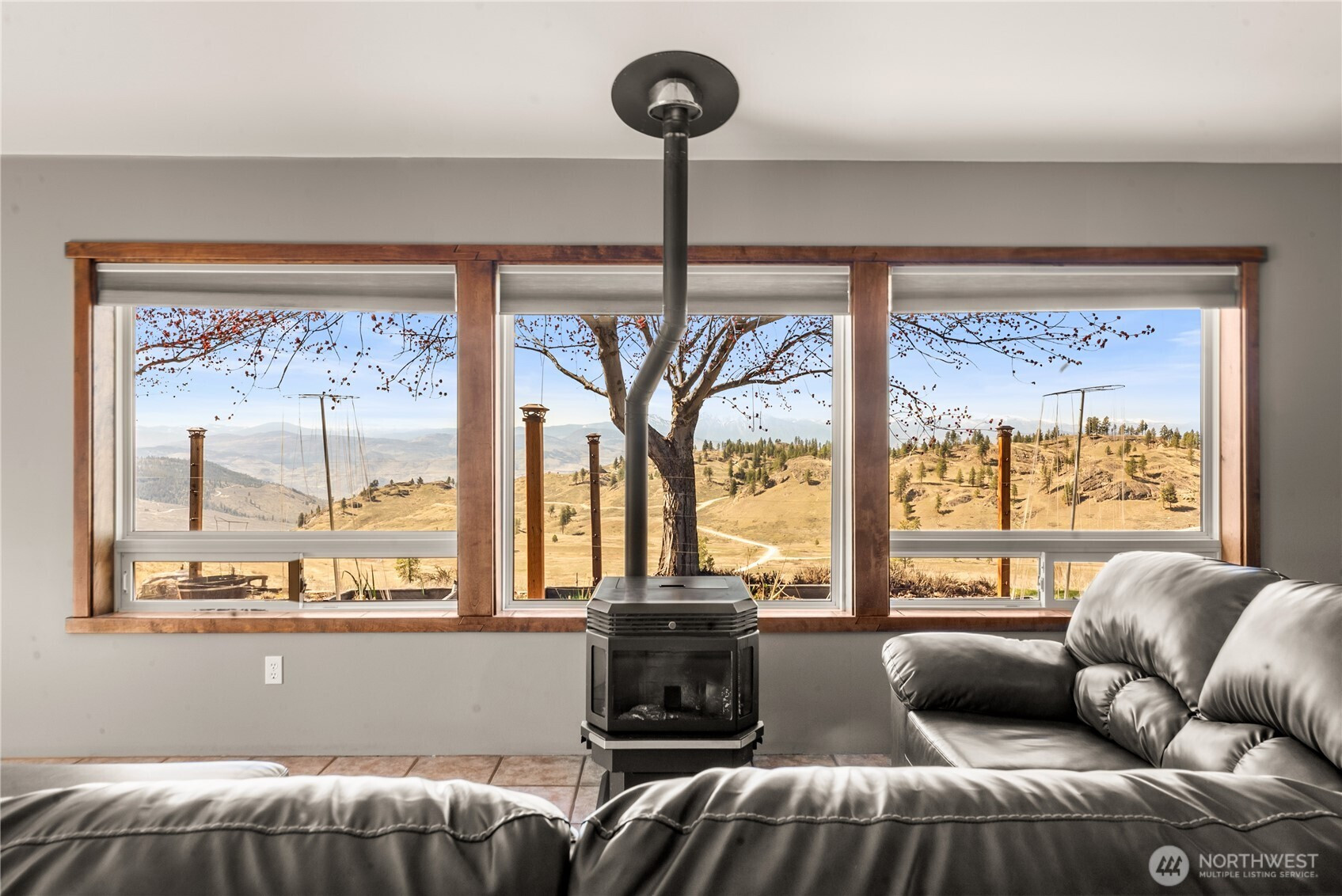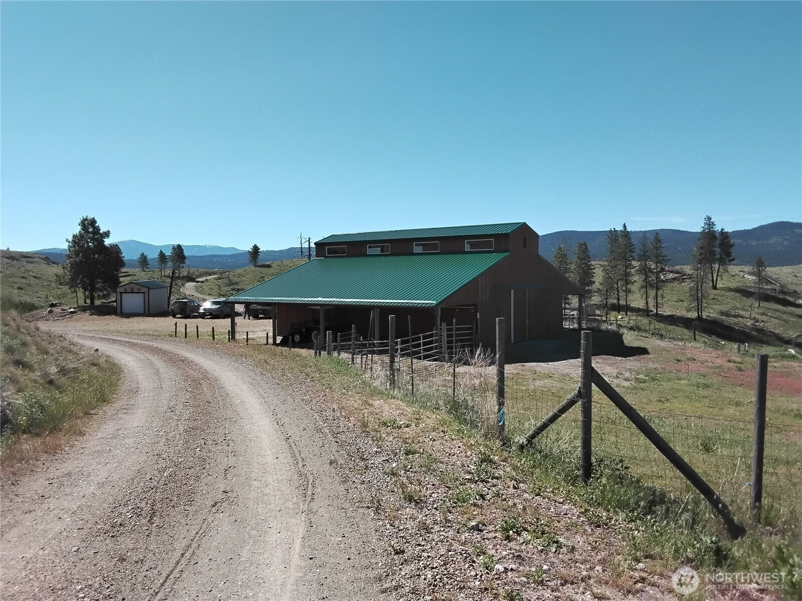At the end of a country road lies your own personal Nirvana—20 private acres of peace, bordering 480+ acres of state lands, adding extra privacy, and breathtaking panoramic views. This custom-built, fully furnished 3-bed, 1.75-bath home features energy-efficient SIP construction designed to withstand the rugged terrain while providing year-round comfort. Vaulted ceilings, multiple skylights, and an open floor plan fill the home with natural light, while radiant heated tile floors and three heat sources keep you warm in every season. Beautiful maple cabinetry, built-in dining area, formal dining room, and a hidden stairway leading to the “Eagle’s Nest” office add charm and function. Move-in ready and thoughtfully equipped. Outside, enjoy a 2-car garage, a large Methow-style barn/shop with power and water, multiple outbuildings, a greenhouse, an electrified garden, and fenced areas ready for livestock. Three acres are fenced with corrals, and the property is fenced on three sides, bordering state land to the north for added privacy. Grow your own vegetables, raise animals, work remotely with Starlink, then relax in the hot tub beneath a sky full of stars—where wildlife roams, and even the Northern Lights may appear.