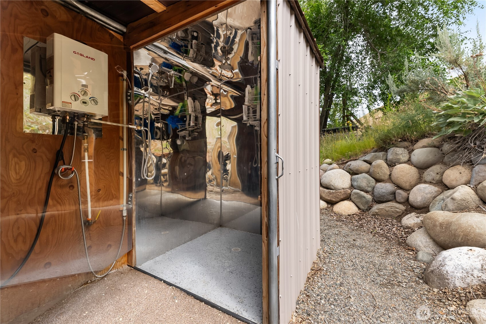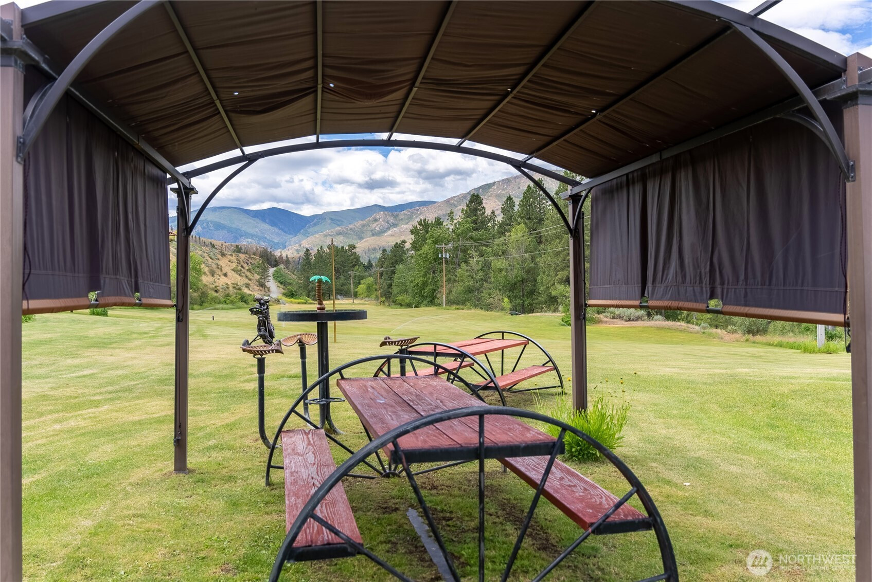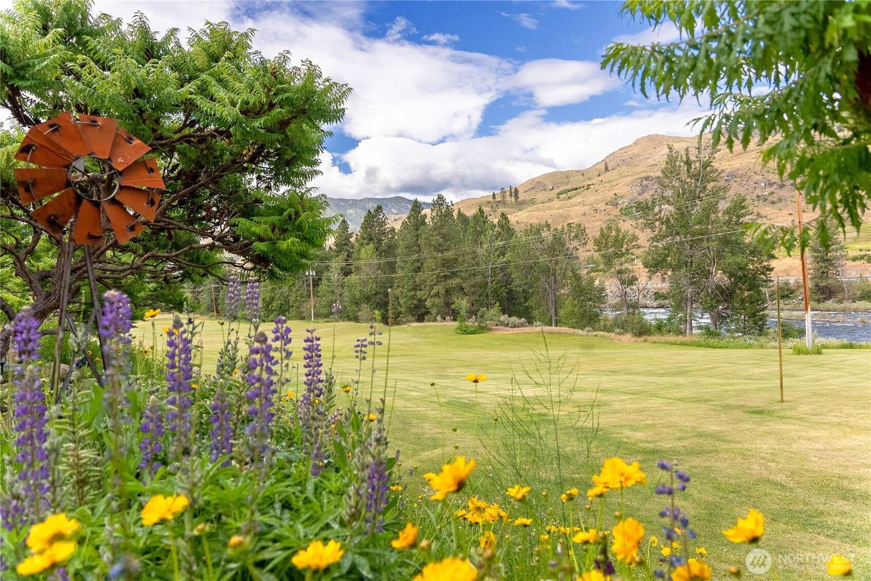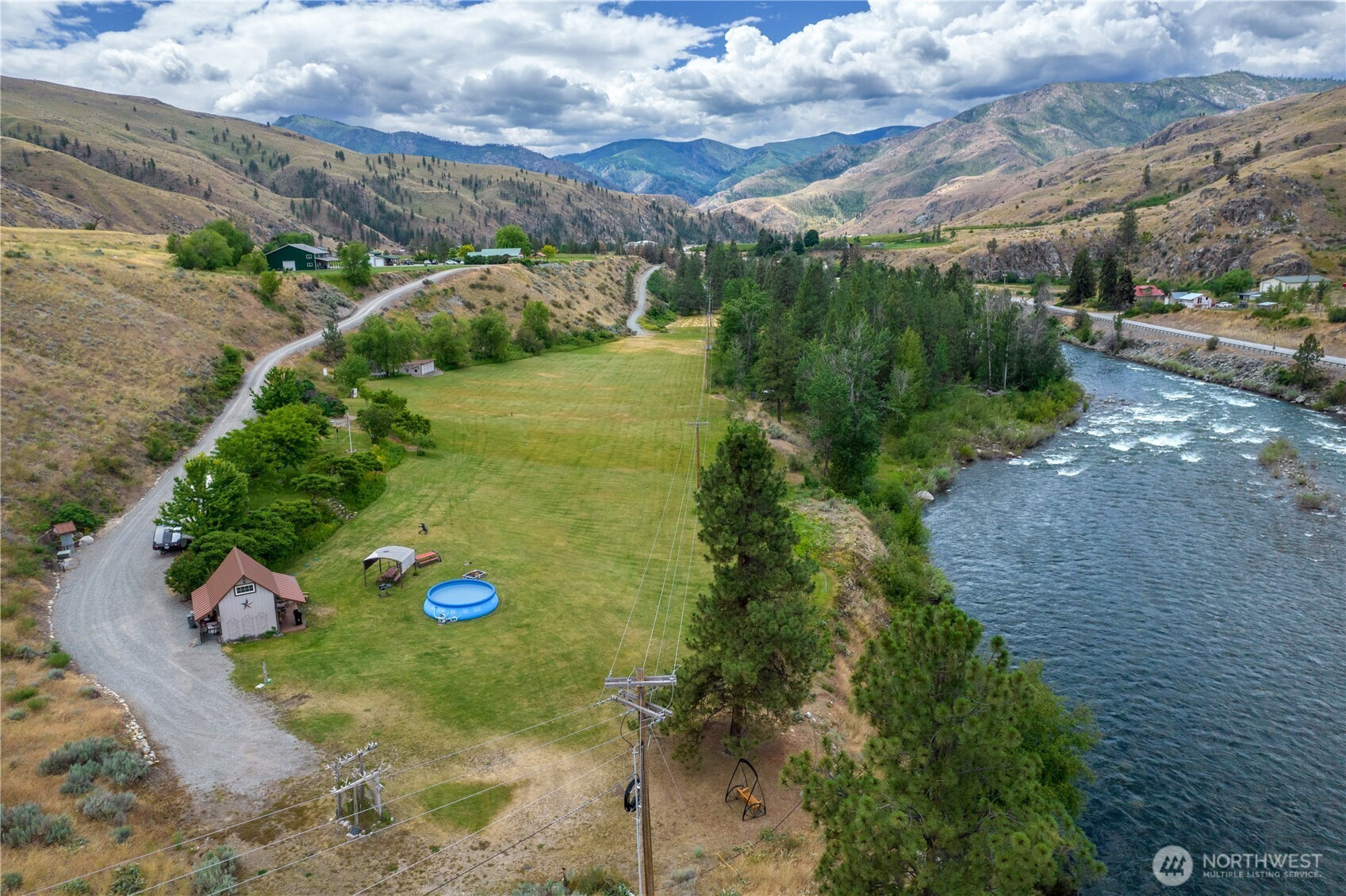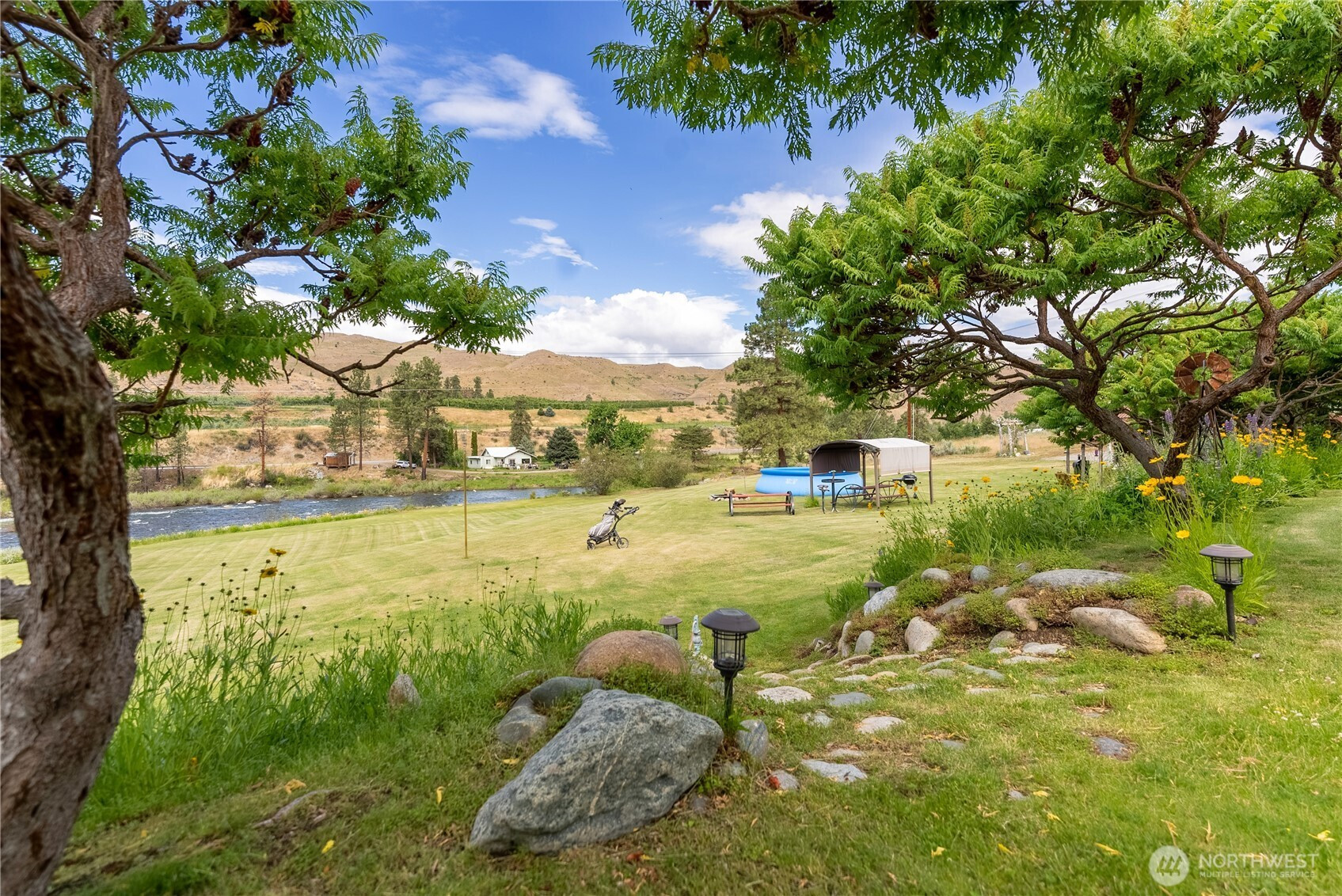 With Over 800 feet of Methow Riverfront, this 7+ acre paradise features a low beach perfect for fishing, swimming, rafting & cooling off on hot days. Close to Lake Chelan, Columbia River & Methow Valley Recreation areas. Charming 1-bedroom tiny cabin includes a kitchen, bathroom bed/loft, making it ideal for a hunting or a fishing homestead. 50 & 30 amp full hookups for RV's is well-equipped for visitors & entertaining. Irrigation rights keep the sprawling lawns green & lush. Perfect for games, recreation & BBQ's. Japanese Ueki style landscaping is delightful. Peach, pear, apple, cherry & apricot trees provide abundant fruit. Your next adventure is ready w/10 gpm well, power & 3 bd septic system. Keep as a developed glamping site or build your dream home on an upper Bld site