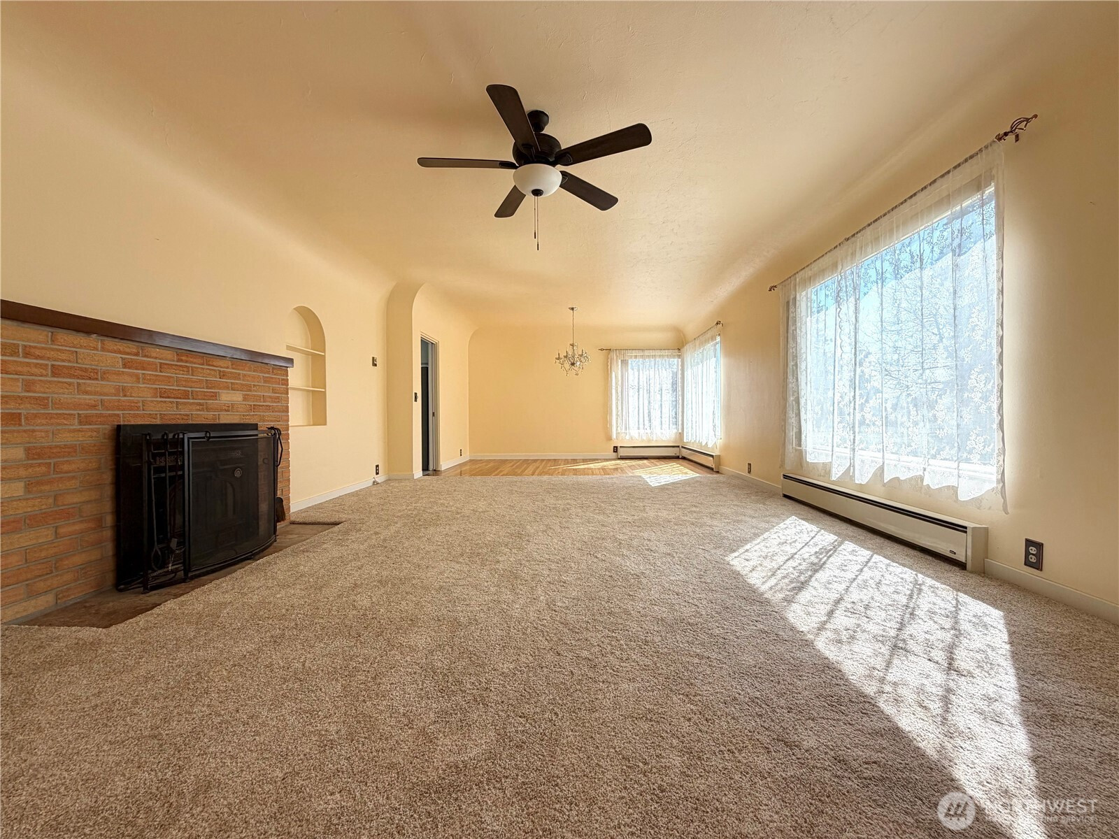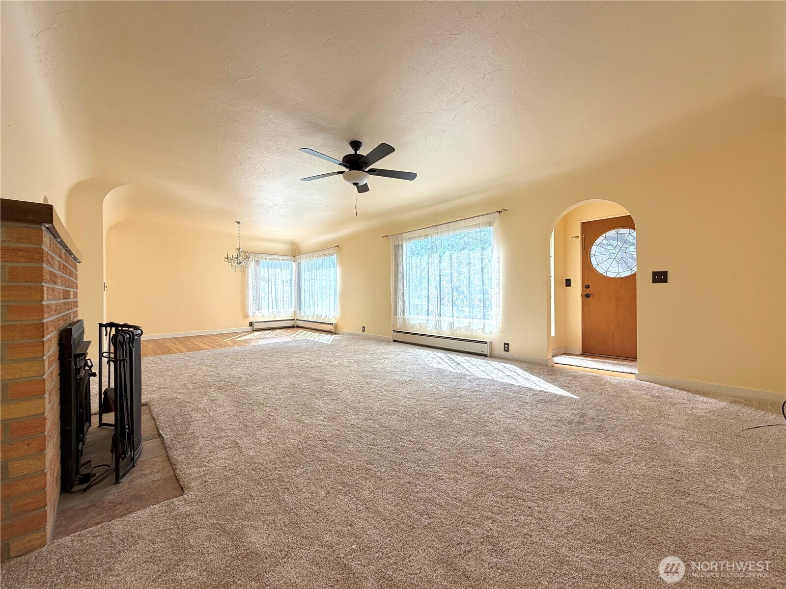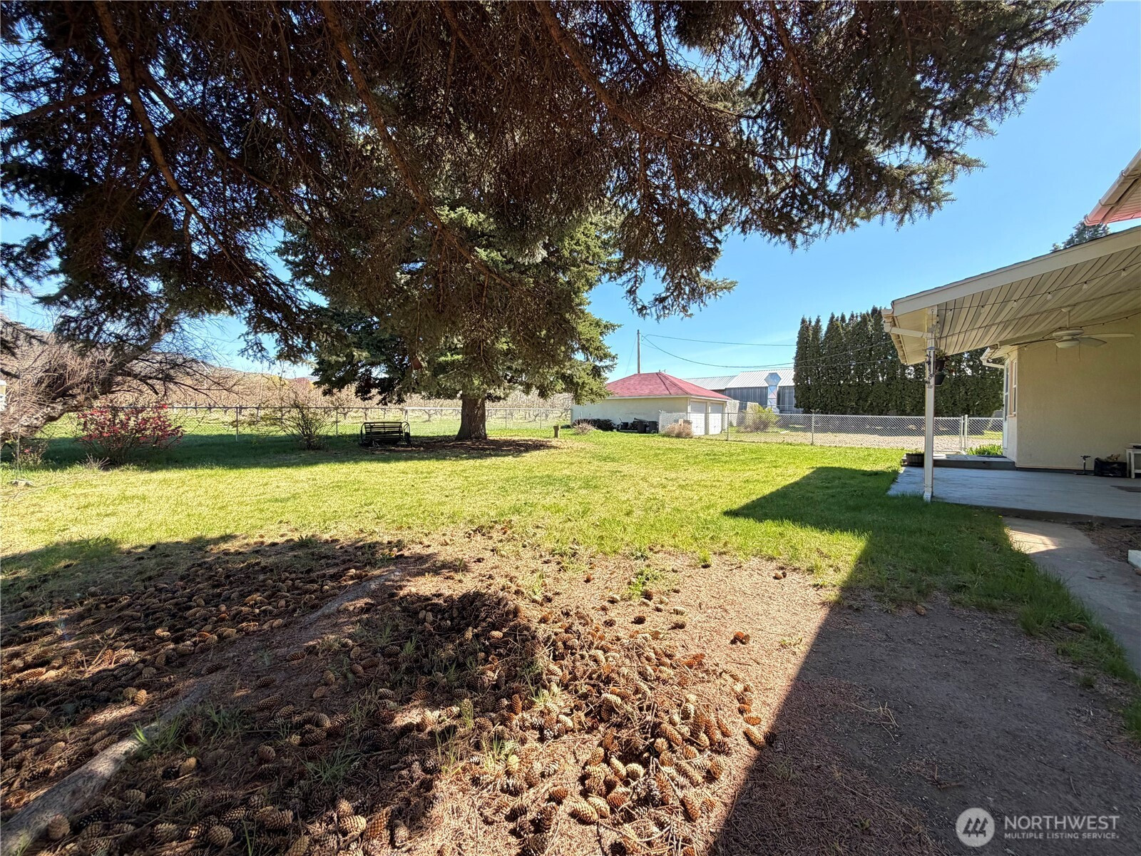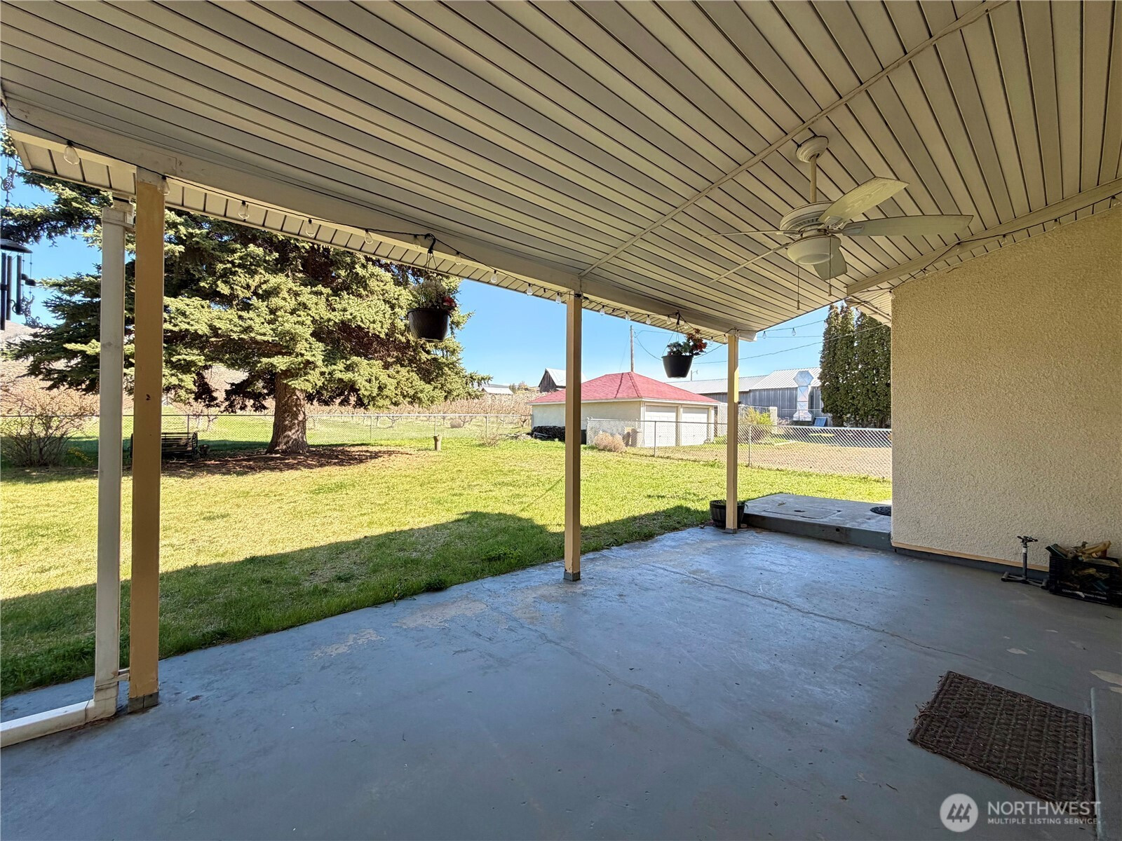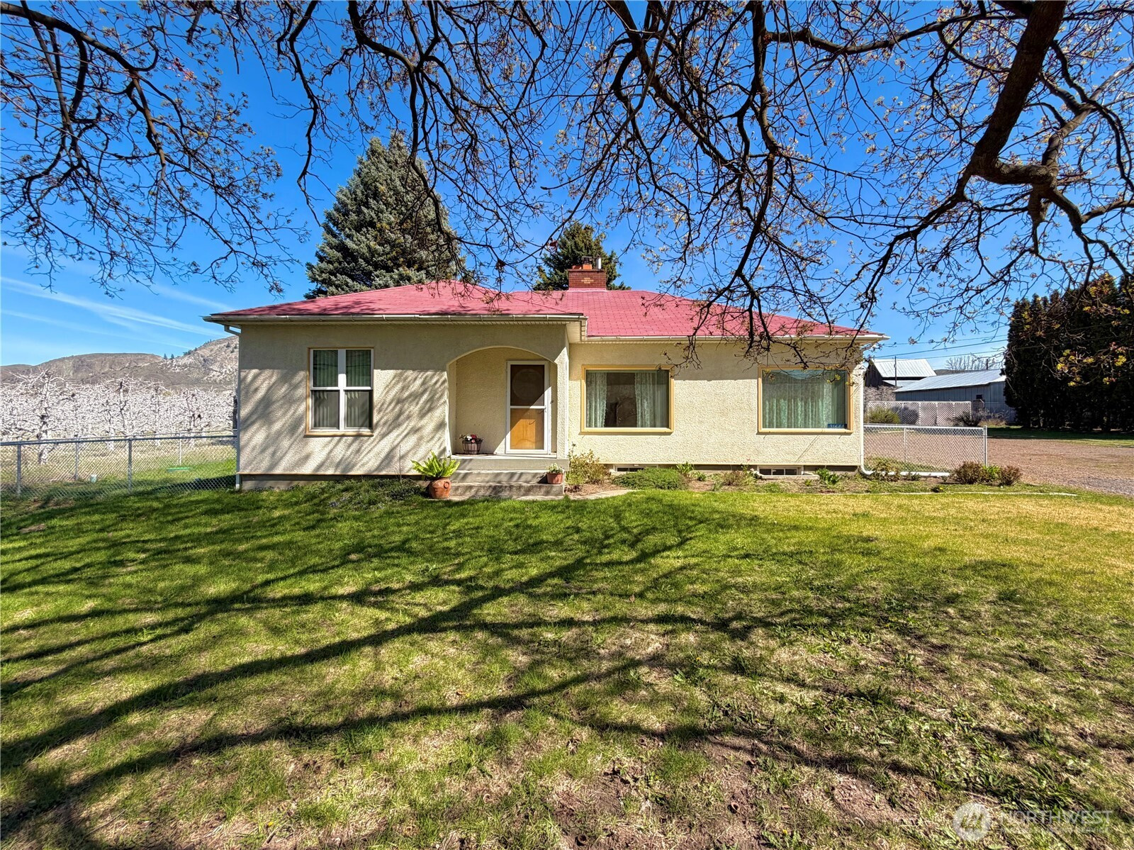 Tonasket - Spacious and character filled home on over 1/2 an acre! With over 3,100 sqft, this 2 bedroom/1.5 bath home offers room to spread out while showcasing timeless charm with wood flooring and coved ceilings. The main level features multiple entries, an updated kitchen with all appliances, lots of cabinetry and storage and a flexible dining or office space. Enjoy a huge living room filled with natural light, plus an additional dining area and beautiful arched details throughout. Two bedrooms and the bonus room with a wood stove, built-ins and backyard access adds versatility. A spacious full bathroom, hallway built-ins, ceiling fans throughout, a utility room with washer, dryer and 1/2 bath enhance functionality. The unfinished basement with interior and exterior access offers excellent potential for additional living space. Outside, you’ll find a detached 2 car garage, a covered concrete patio perfect for entertaining and a level, fenced yard with mature landscaping and shade trees. Oroville Tonasket Irrigation. Private well and septic. Located just minutes from town amenities while enjoying a more private setting.