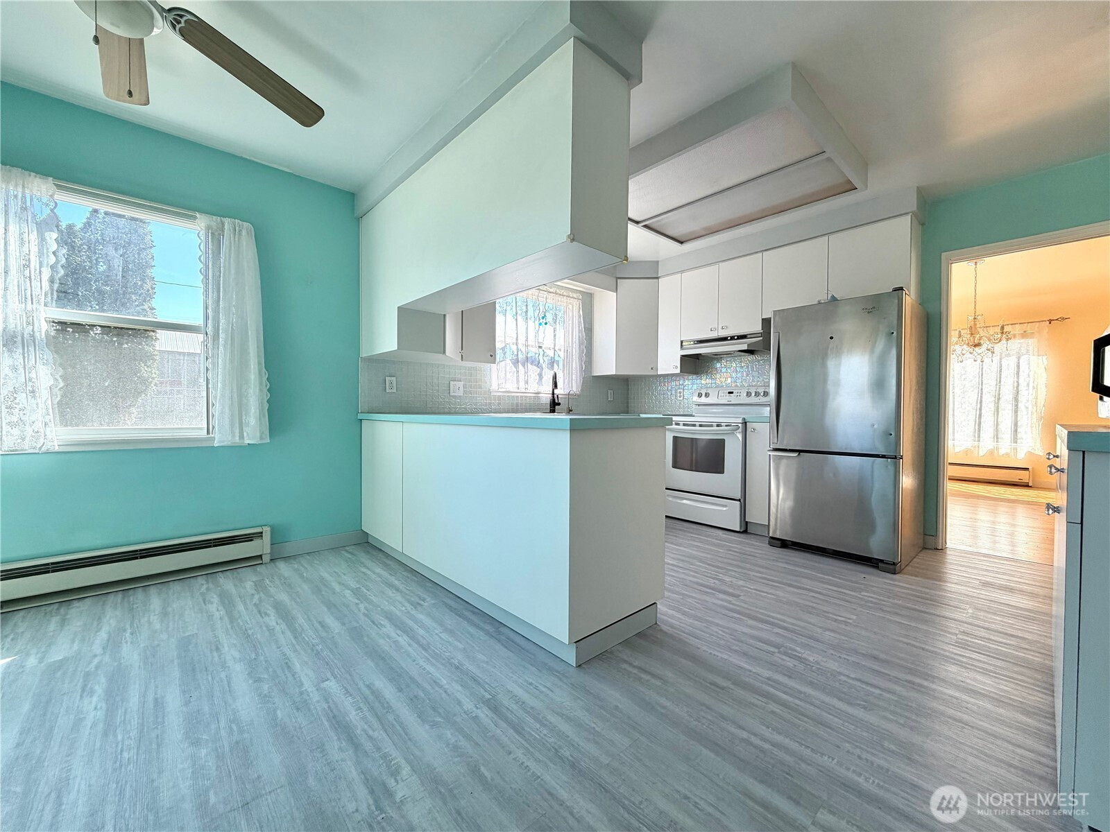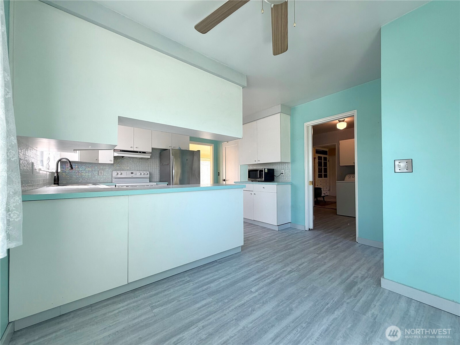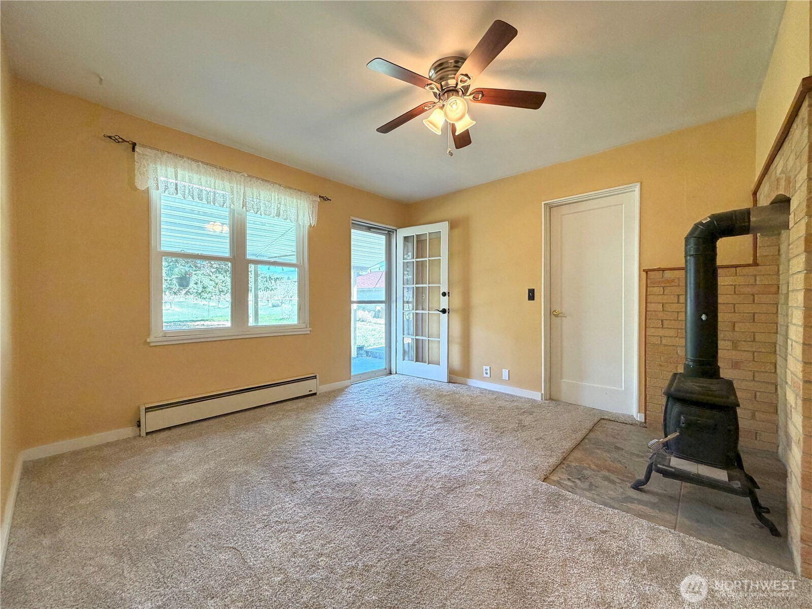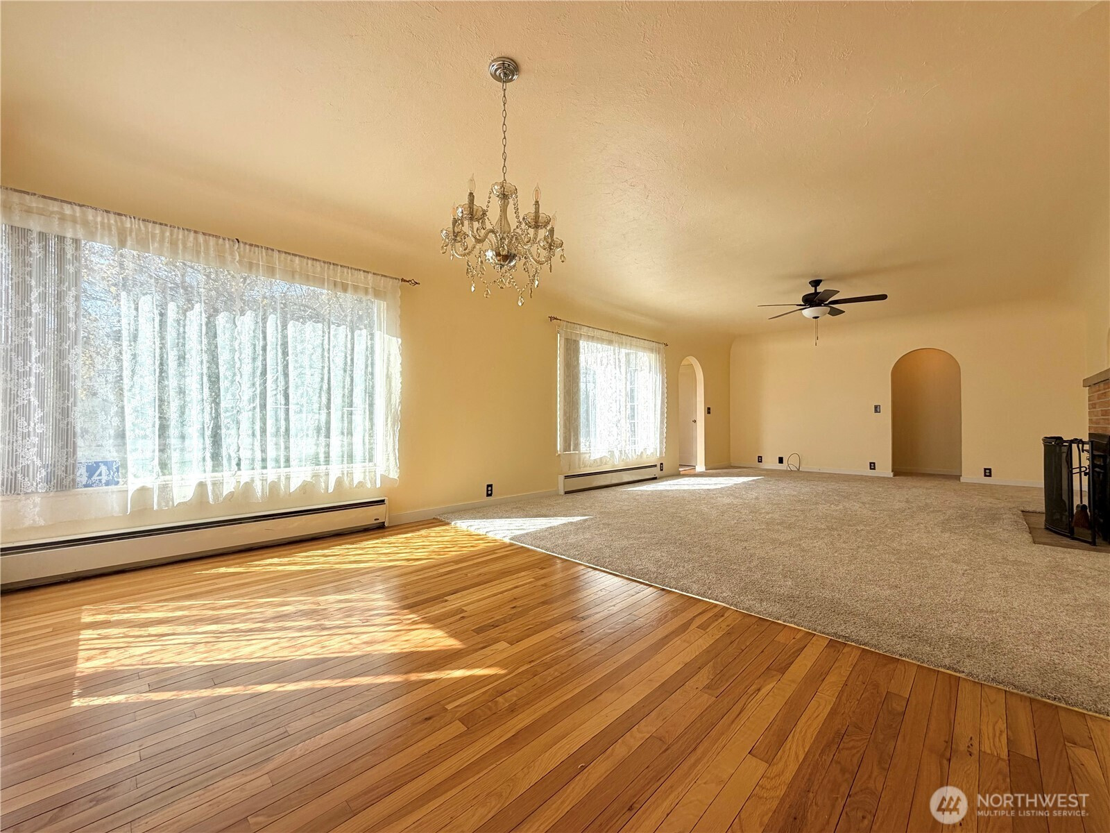 Tonasket - Spacious and character filled home on over 1/2 an acre! With over 3,100 sqft, this 2 bedroom/1.5 bath home offers room to spread out while showcasing timeless charm with wood flooring and coved ceilings. The main level features multiple entries, an updated kitchen with all appliances, lots of cabinetry and storage and a flexible dining or office space. Enjoy a huge living room filled with natural light, plus an additional dining area and beautiful arched details throughout. Two bedrooms and the bonus room with a wood stove, built-ins and backyard access adds versatility. A spacious full bathroom, hallway built-ins, ceiling fans throughout, a utility room with washer, dryer and 1/2 bath enhance functionality. The unfinished basement with interior and exterior access offers excellent potential for additional living space. Outside, you’ll find a detached 2 car garage, a covered concrete patio perfect for entertaining and a level, fenced yard with mature landscaping and shade trees. Oroville Tonasket Irrigation. Private well and septic. Located just minutes from town amenities while enjoying a more private setting.