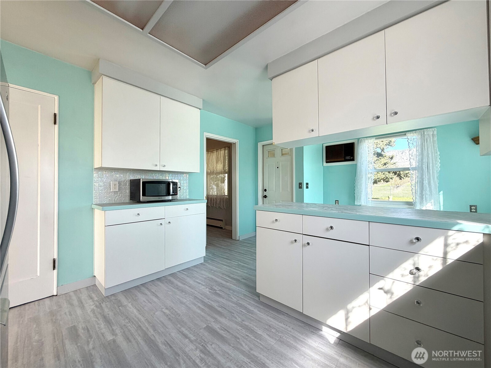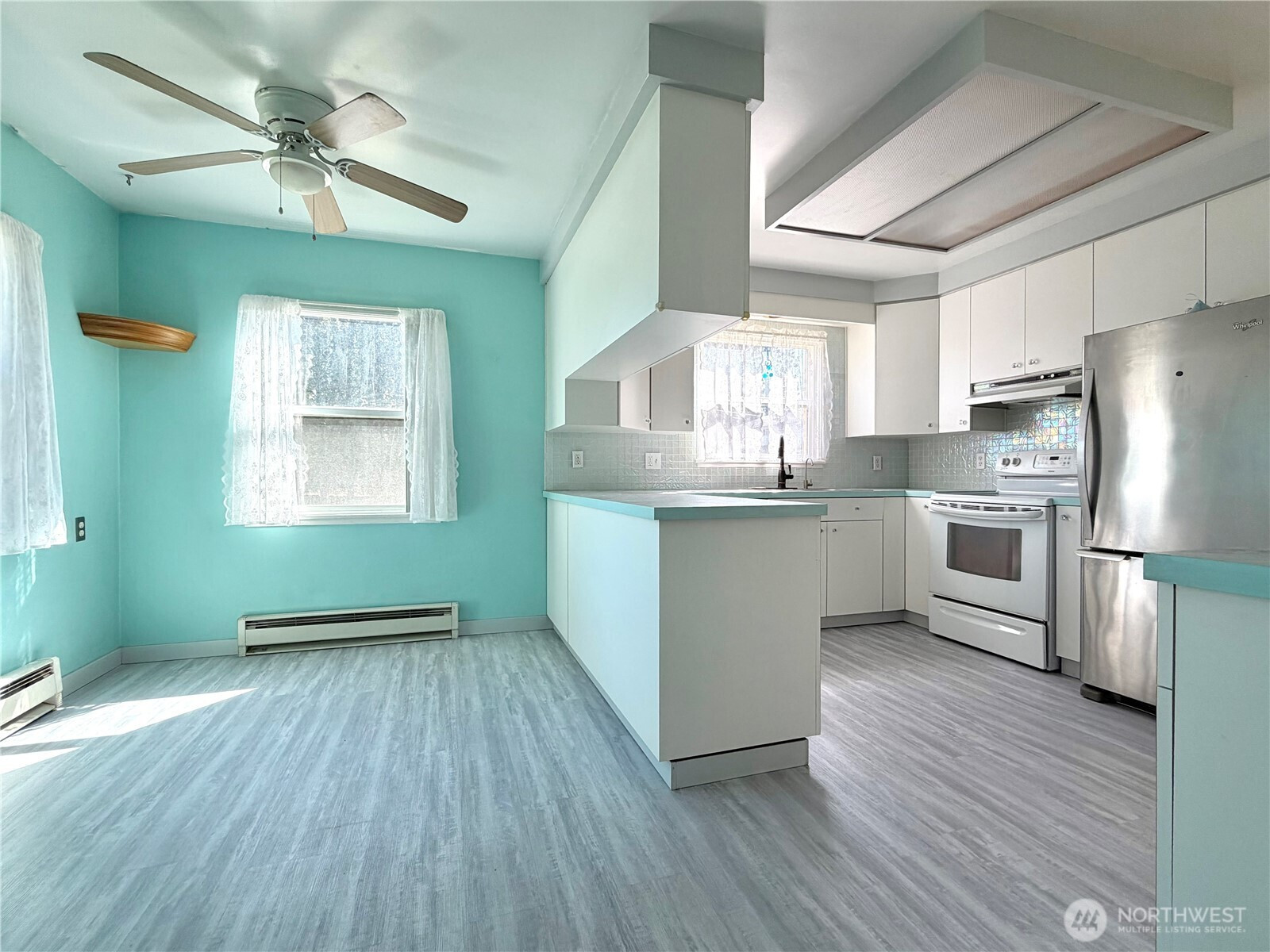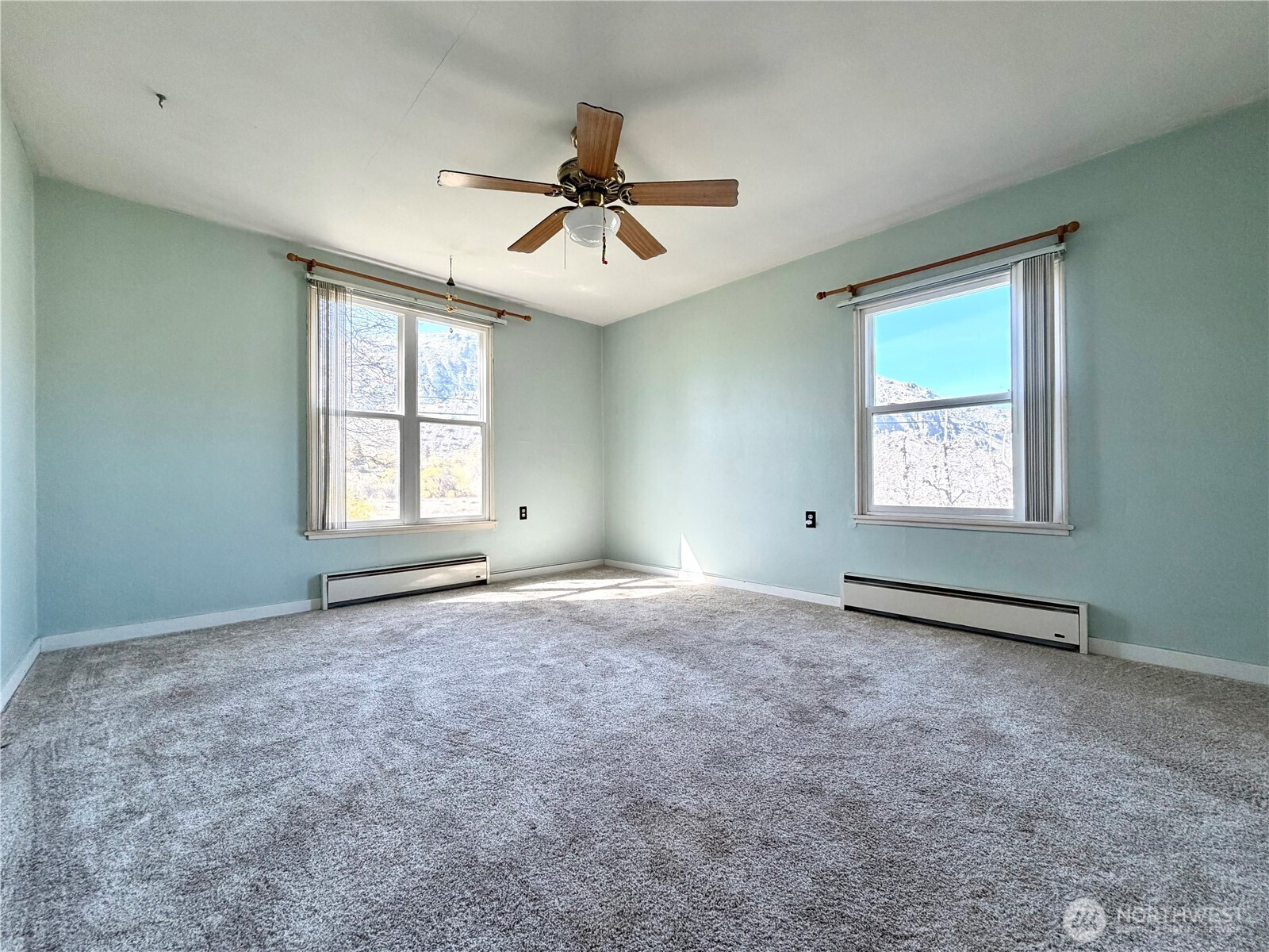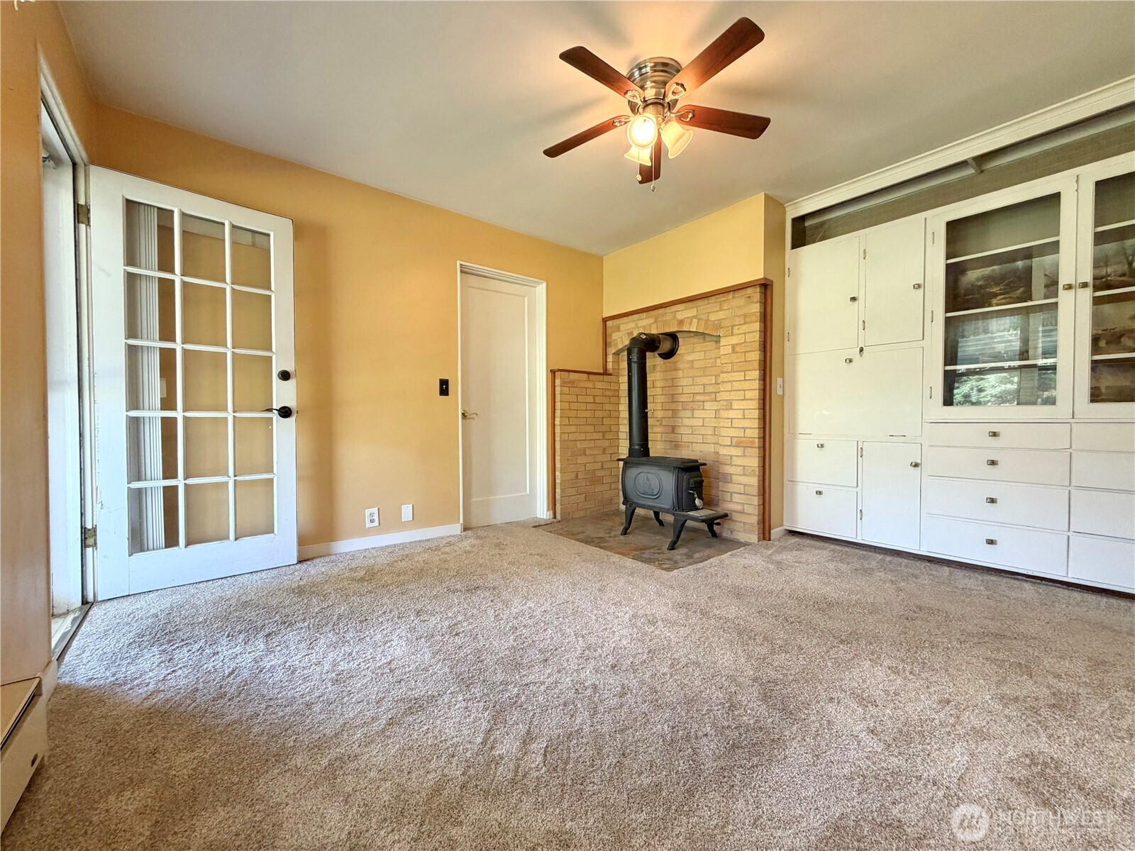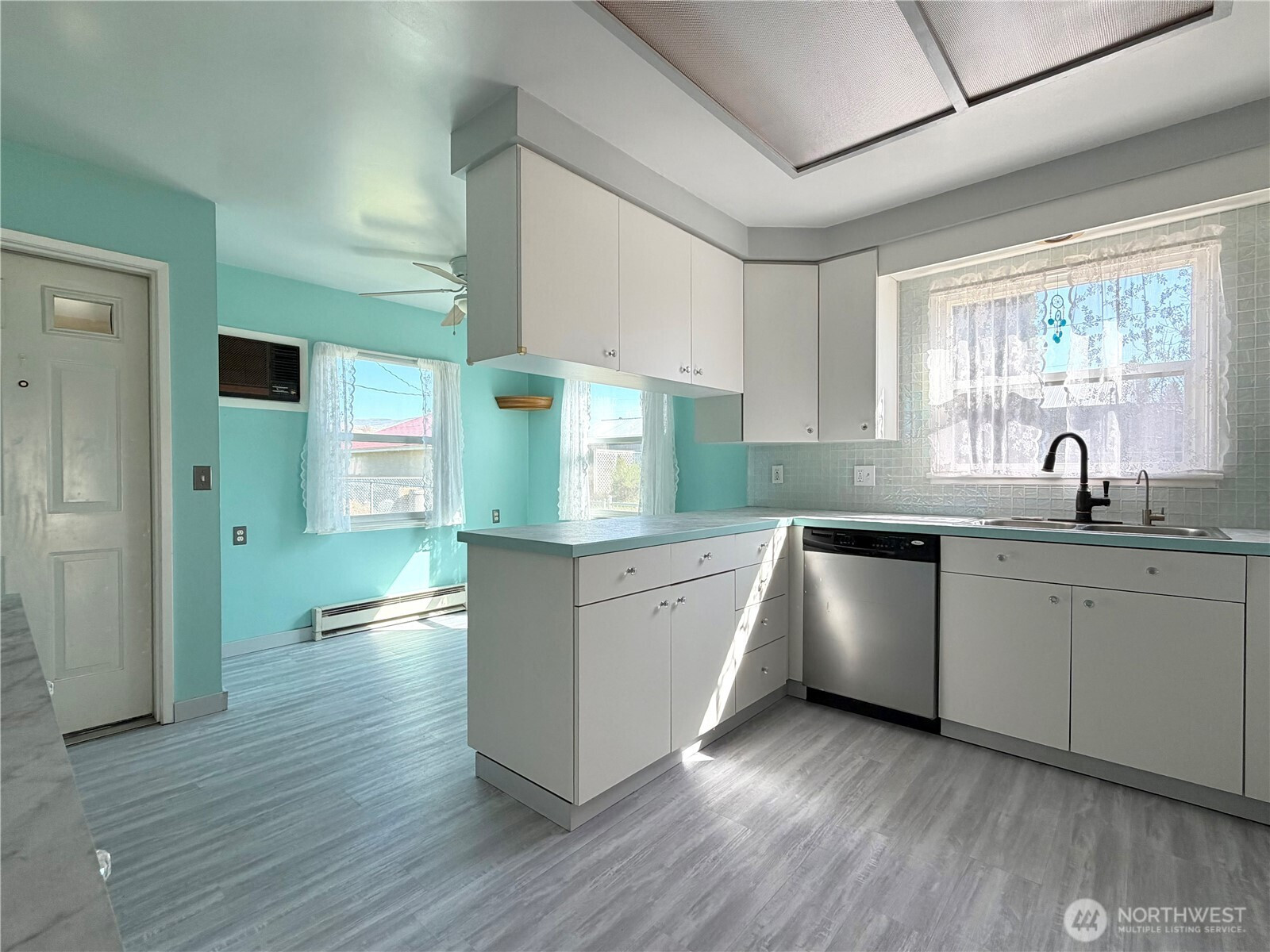 Tonasket - Spacious and character filled home on over 1/2 an acre! With over 3,100 sqft, this 2 bedroom/1.5 bath home offers room to spread out while showcasing timeless charm with wood flooring and coved ceilings. The main level features multiple entries, an updated kitchen with all appliances, lots of cabinetry and storage and a flexible dining or office space. Enjoy a huge living room filled with natural light, plus an additional dining area and beautiful arched details throughout. Two bedrooms and the bonus room with a wood stove, built-ins and backyard access adds versatility. A spacious full bathroom, hallway built-ins, ceiling fans throughout, a utility room with washer, dryer and 1/2 bath enhance functionality. The unfinished basement with interior and exterior access offers excellent potential for additional living space. Outside, you’ll find a detached 2 car garage, a covered concrete patio perfect for entertaining and a level, fenced yard with mature landscaping and shade trees. Oroville Tonasket Irrigation. Private well and septic. Located just minutes from town amenities while enjoying a more private setting.