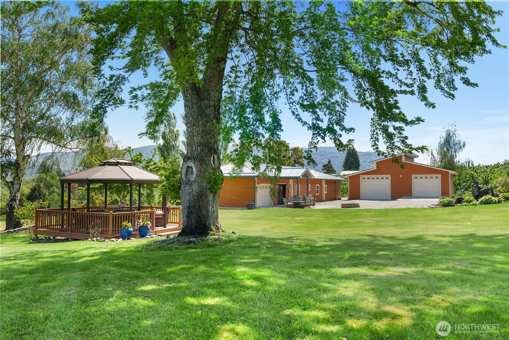 Fantastic Views of Lake Osoyoos from this gorgeous 1-level home, located on just over 2 acres of park like grounds! Fully renovated in 2020, this home is turn key! Whether you live here year round, or make this your vacation property you will love the open floor plan with lots of windows to take in the beauty of the surroundings! Large grand entry opens up to contemporary kitchen, which flows easily into the dining area and large living room. Primary suite with ensuite bathroom, complete with heated floors. Outside you can relax in the hammock or entertain in the gazebo! Gorgeous yard, garden area & Large shop/garage with wine cellar, complete this Fabulous property! Composed of 2 separate lots, there's plenty of room to add an additional dwelling! Directly across the street from Taber's Taste of Summer Wine Barn/Produce!