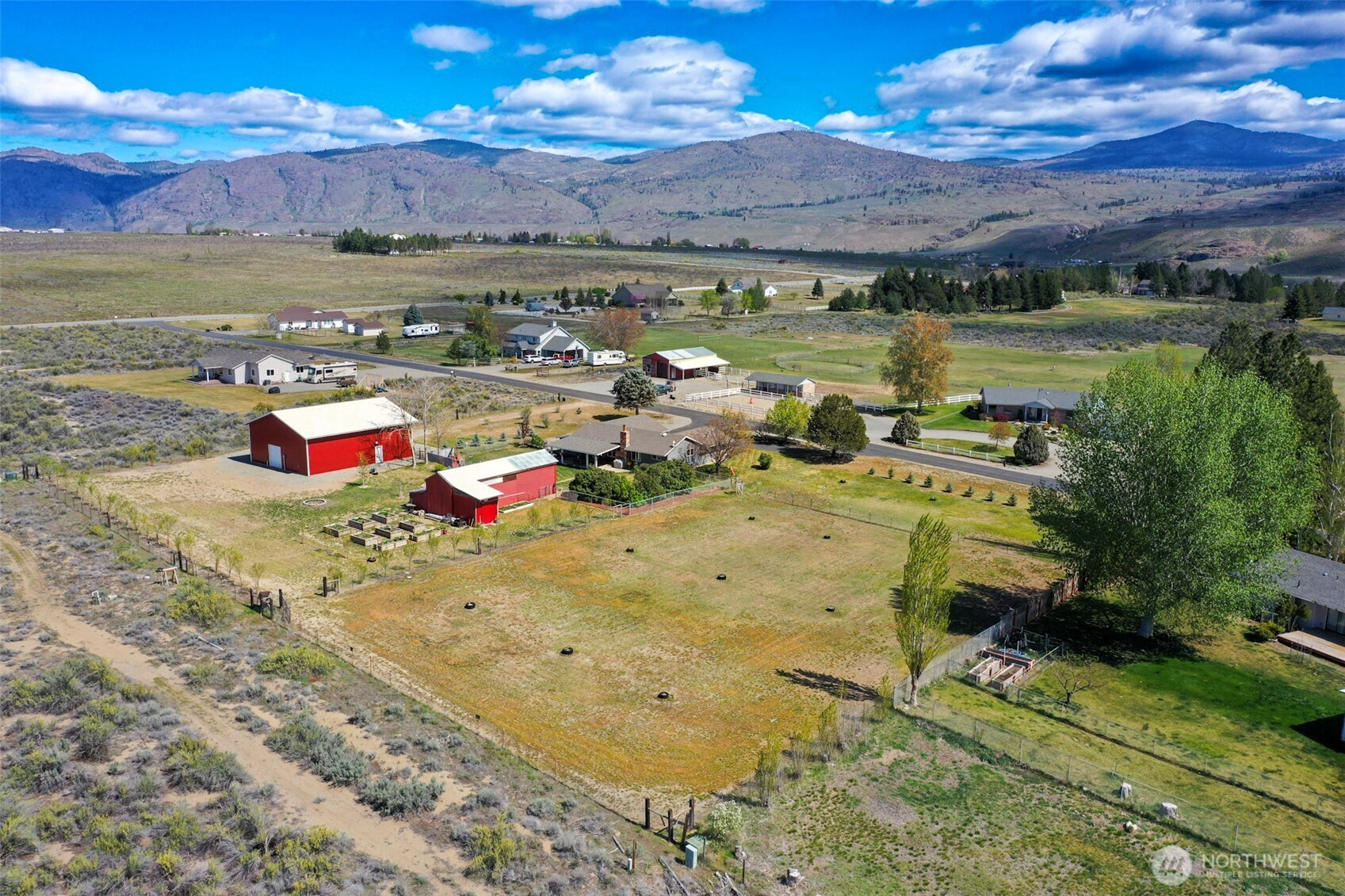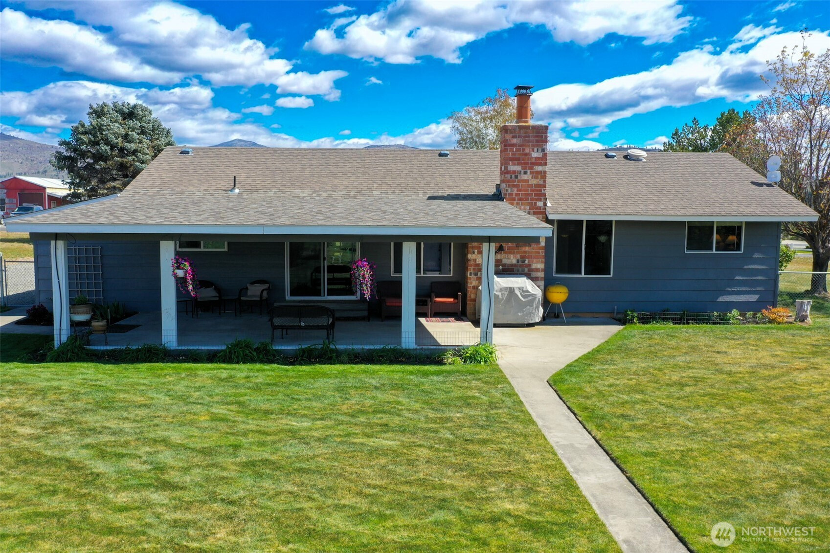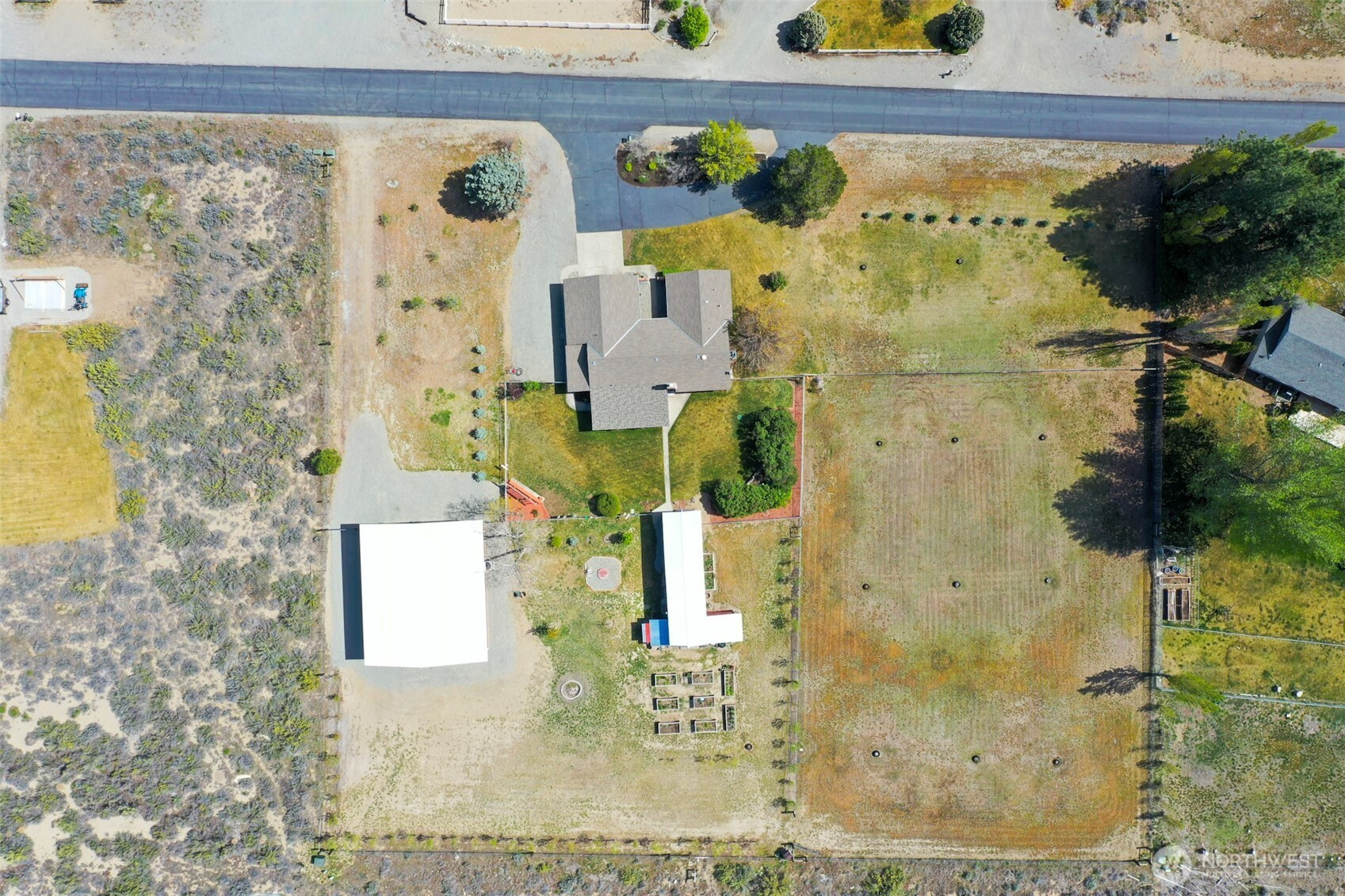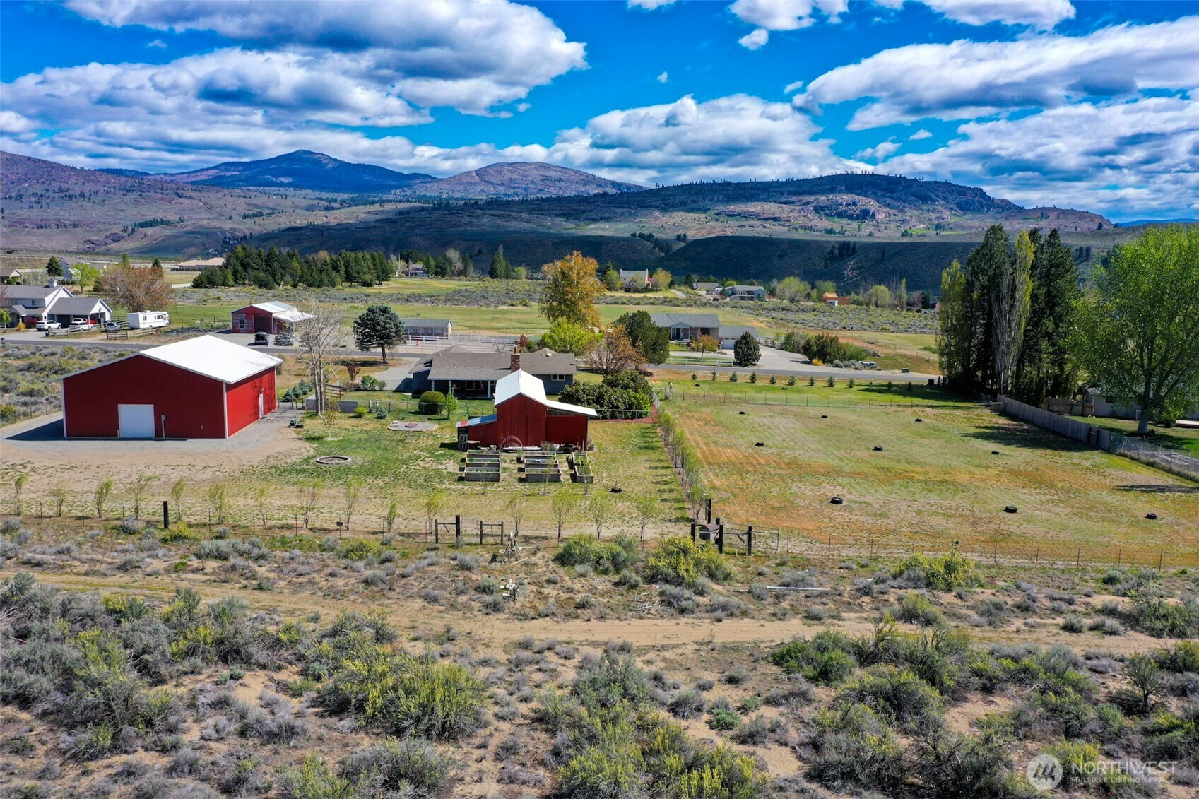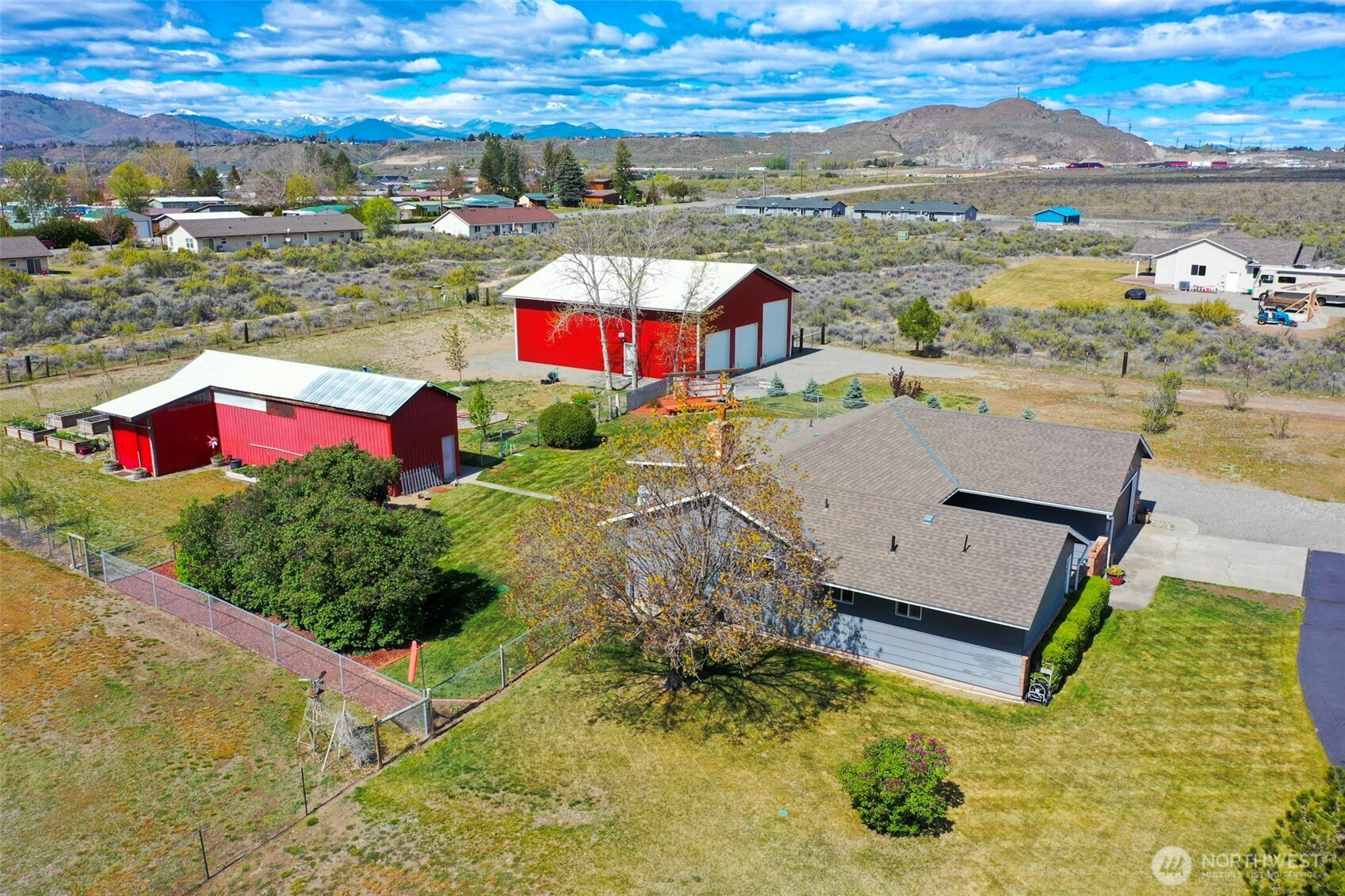 Set on 2.16 irrigated acres in Orchard Trails, this well-maintained 3 bed, 2 bath property offers a rare combination of comfort, utility, and meaningful improvements. The fully fenced and cross-fenced acreage is highly usable, with mature landscaping, established trees, garden beds, and open space already in place. Inside, the home presents a clean, well-cared-for feel with updated kitchen and bath finishes, new flooring, a pellet stove, dedicated office, laundry room, attached garage, and a covered patio just off the kitchen for easy everyday use. A standout improvement is the new 42x48 shop completed in 2024, featuring concrete floors, its own meter with upgrade potential, four garage doors including an RV-height door, and finished flex space. An additional approx. 400 SF workshop/barn with loft adds further flexibility for storage, projects, or workspace. The property also includes an RV space with full hookups, including a 30 amp plug-in. Properties with this level of infrastructure, usability, and overall readiness are difficult to find.