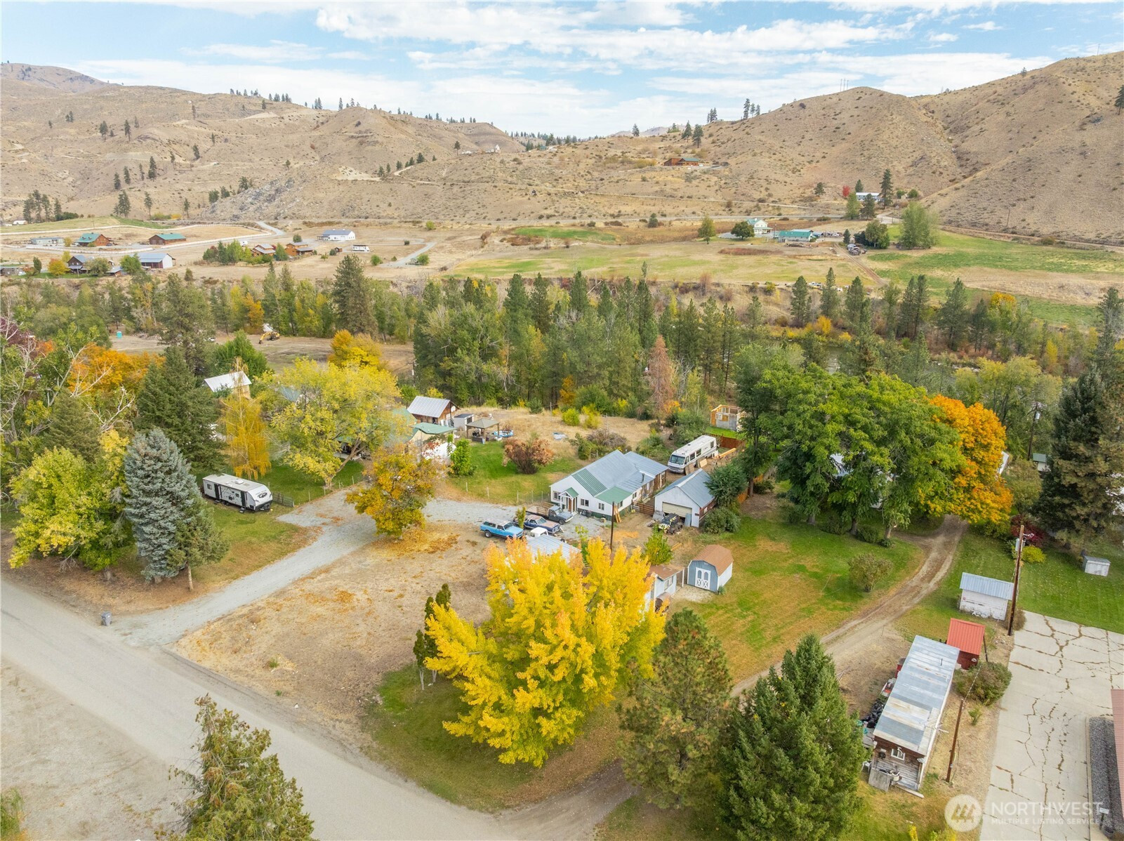 Prime location in the heart of Methow. Lush green grass surrounds the property on this perfectly flat lot. Charming 1940 home in need of TLC. Renovate the current home or start fresh on this flat, grassy lot just steps from the Methow River. Built-in bunk beds for added space. Established trees. Shed included. Home is sold as-is. All furnishings stay.