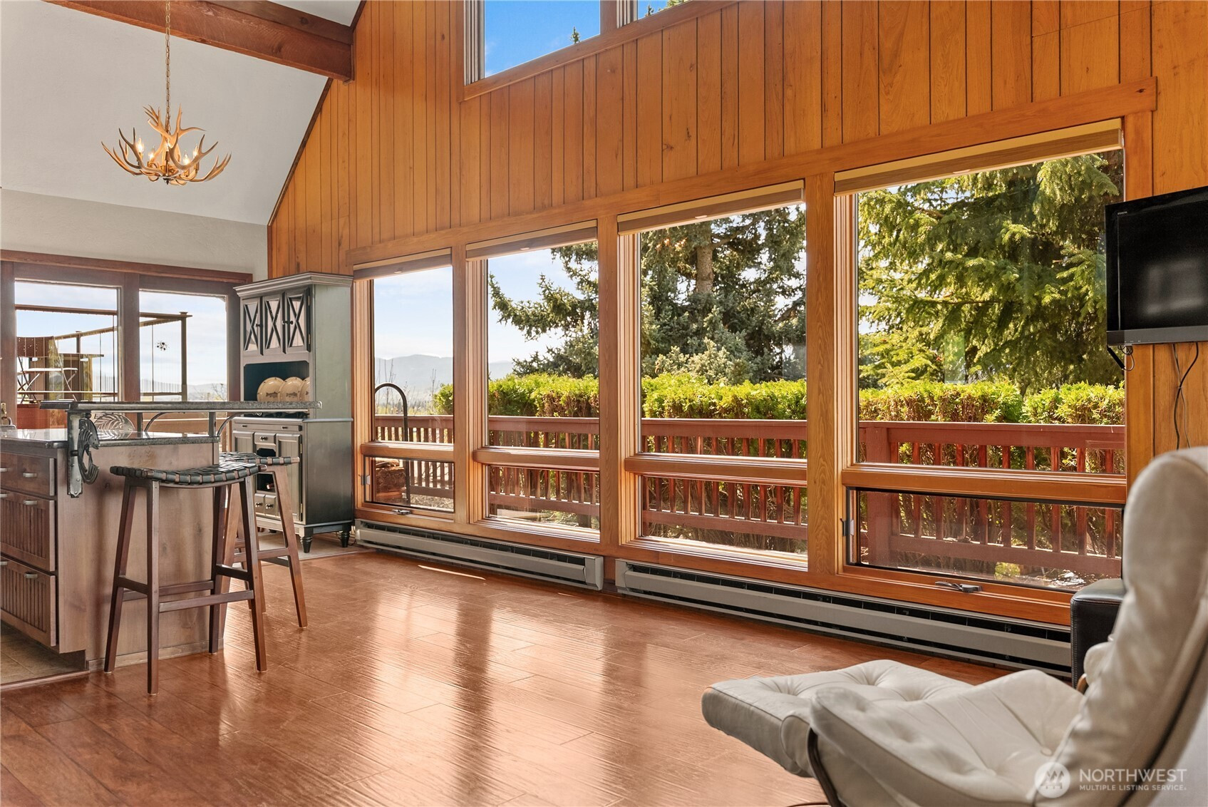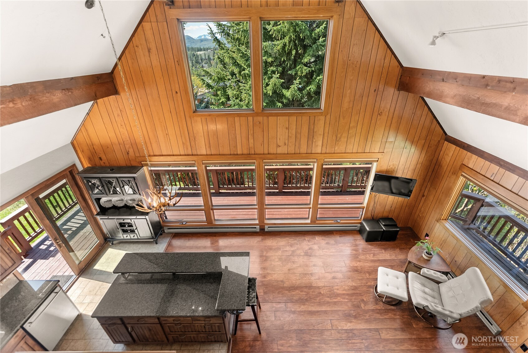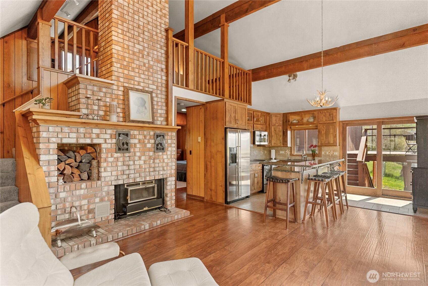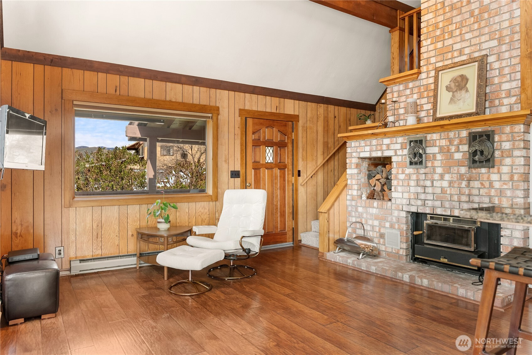 Spectacular views from this immaculately maintained in town Winthrop home on a divisible lot. Ideal for full time or part time living, this two bedroom home with bonus loft, family room and two car garage is filled with quality upgrades & custom features. The living area showcases a dramatic wall of windows and a brick fireplace with wood burning insert accented with ironwork by a local metal artist. Hunter Douglas insulated shades, thoughtful lighting fixtures, custom wood railings, wrapped columns and detailed molding add warmth throughout. The remodeled kitchen features alder cabinets, granite countertops, floating bar with custom metal accents and new appliances. Most original windows have been replaced with Sierra Pacific windows and a locking glass sliding door. Enjoy multiple decks for entertaining, including a spacious 12’X 24’ cedar deck with stainless cable railings and hardwired lighting. A separate 355 sq. ft heated pine paneled pool room with a fridge and walk in storage area provides extra space. Upgrades include a premium Canadian cedar shake roof with fire resistant coating, new garage doors, and metal garage roof, blown in cellulose insulation (2025), new hot water heater and upgraded irrigation system (2024). Two mature pine trees provide shade and privacy. Established apple tree, raspberries, strawberries, and rhubarb in garden. Don’t need the space? R1 zoning allows for a practical future lot division. Thoughtfully upgraded and lovingly maintained.