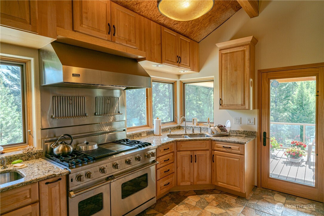 Ultimate self-sustainable living on 65+ private acres across 6 parcels. This unique, partially finished off-grid retreat combines solar and PUD power, supported by two backup generators and a 1,000-gallon propane tank. The property features a massive 40x60’ pole barn and full infrastructure including a private well and septic. Inside, find a gourmet kitchen with granite, a 4-burner gas stove/dual ovens, Italian tile, and soaring vaulted ceilings. The main-floor primary suite boasts a walk-in closet, marble shower, and granite finishes, with potential for two additional bedrooms. Premium upgrades include radiant flooring, a ventilation system, central vac, a root cellar, and RV parking with a pump-out station. Enjoy low taxes, minimal utility costs, and unmatched privacy in a stunning natural setting.