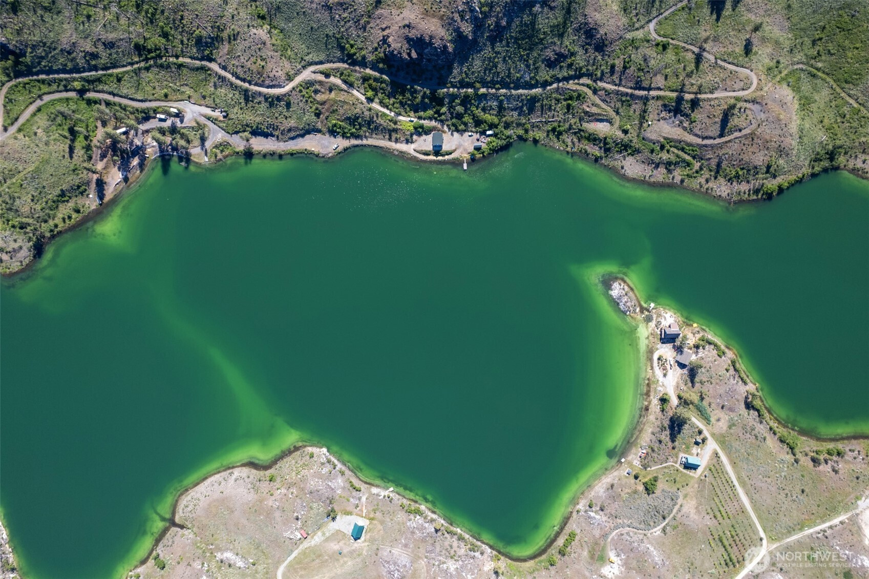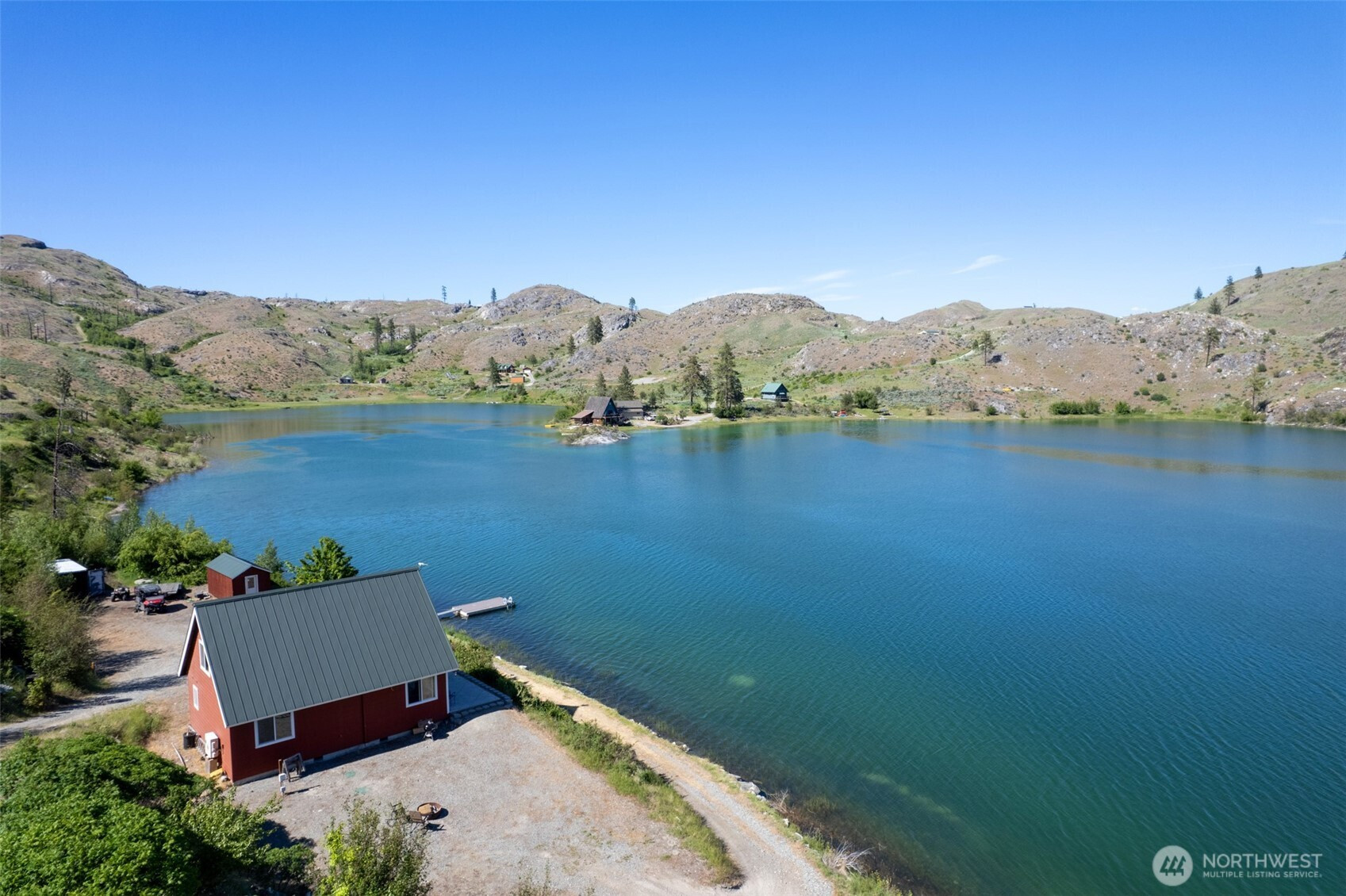 1,152 sq ft lakeside cabin on 10+ acres steps away from your private beach w/ dock on the shores of Alkali Lake—renowned for its mineral-rich, healing waters. Waterfront living made easy behind the gated community with exclusive access-not open to the public-electric motors only. Inside this 2-bed/1-bath home, you'll find vaulted ceilings, a main-floor primary & spacious loft. Enjoy morning coffee on the patio, afternoons kayaking, fishing or going for a swim w/ quiet evenings overlooking the water—less than 10 miles from Omak! 2 RV hook ups w/ multiple outbuildings provide space for overflow guests, lake gear or ATVs. Whether you’re looking for a full-time residence or a weekend escape, this cabin is set up for ease of comfort & usability.