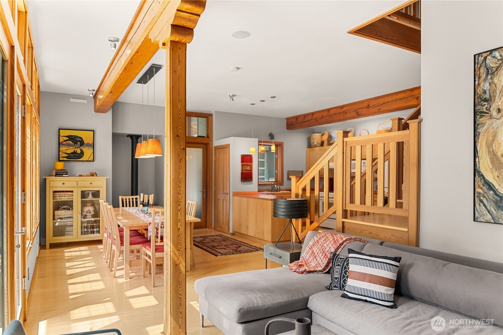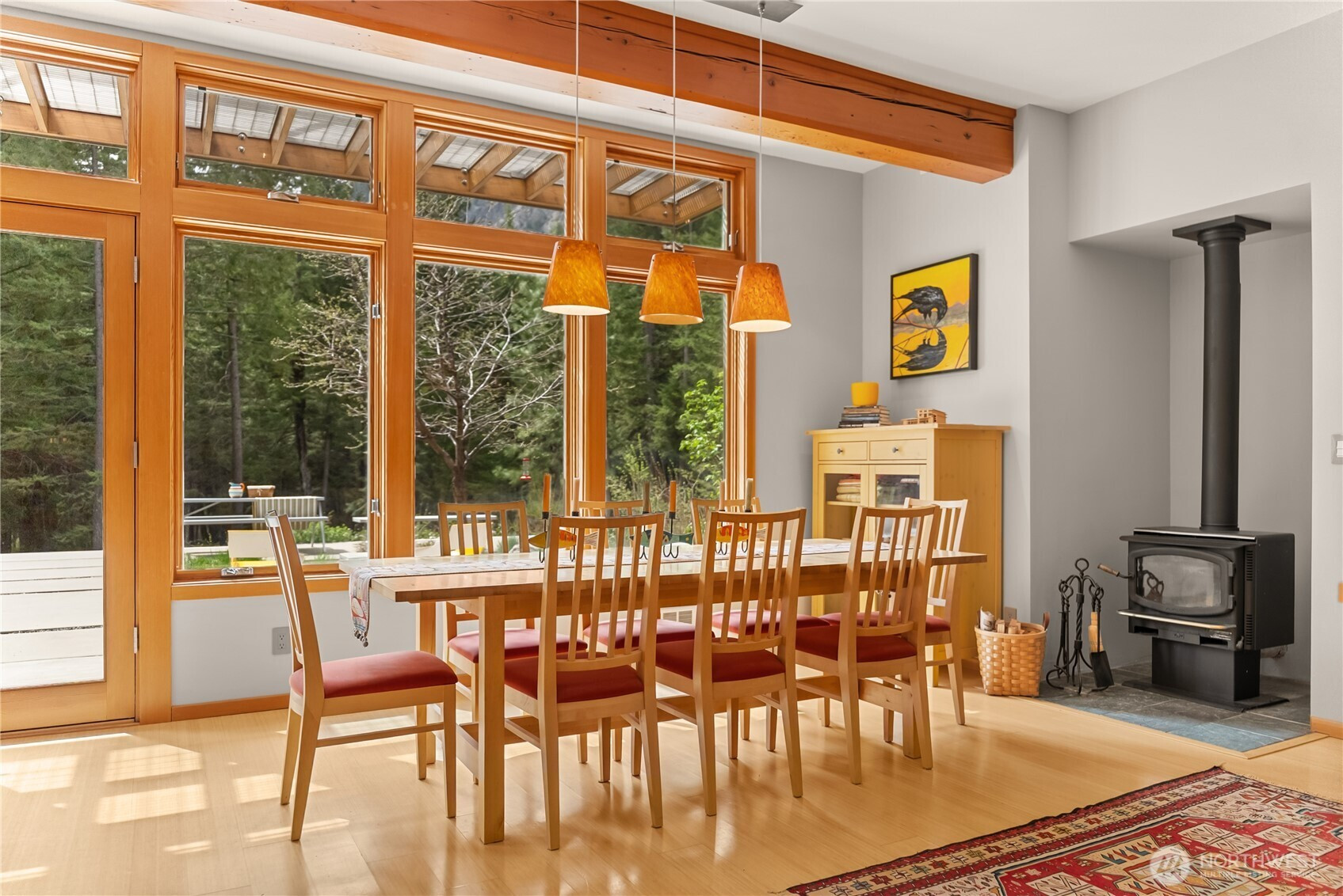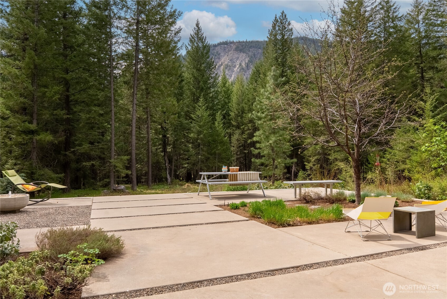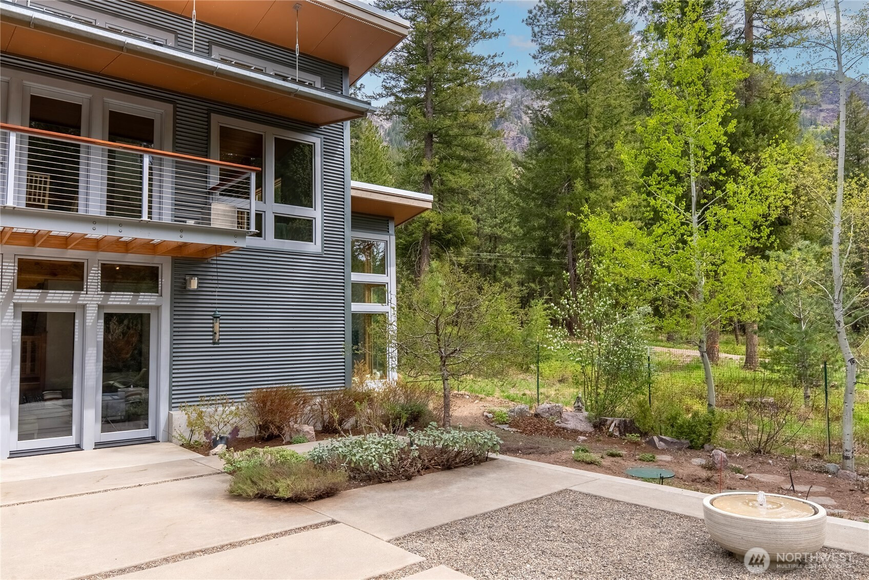 Exceptional contemporary home just minutes from the Mazama junction checks all the boxes! Designed and built as a full-time residence or the perfect recreational getaway, this 3-bedroom, 2-bath home was completely renovated in 2010. It features a large 2-car garage, heated shop with roll-up door, and generous storage for bikes, skis and more. The light-filled interior, with its tamarack pillars and beams includes a double-height library with sliding barn door and upper story overlook, bright open kitchen with adjoining dining and sitting spaces, first floor guest room and bath, wine closet, atrium entry with radiant floor heat, and expansive outdoor terrace. A warm wood staircase leads to the primary bedroom suite with open sitting area, full bath, generous closets, laundry, third bedroom or office, and private deck with views of Driveway Butte and starry skies at night. The low-maintenance landscaping, automated irrigation, covered walkways and robust metal cladding means fewer chores and more time to enjoy the upper Methow Valley's best climbing pitches, nearby hikes, extensive ski and bike trails, and summertime swimming holes! Relax in privacy or throw a party on the outdoor terrace with its sunny outlook, bubbling water feature, separate sitting and dining areas, and a garden of culinary herbs and plants carefully selected for the Methow Valley climate. If you are inspired by a creative spirit, and looking for convenience and ease, don't miss this architectural delight.