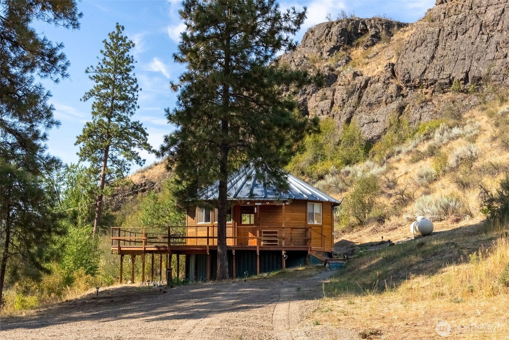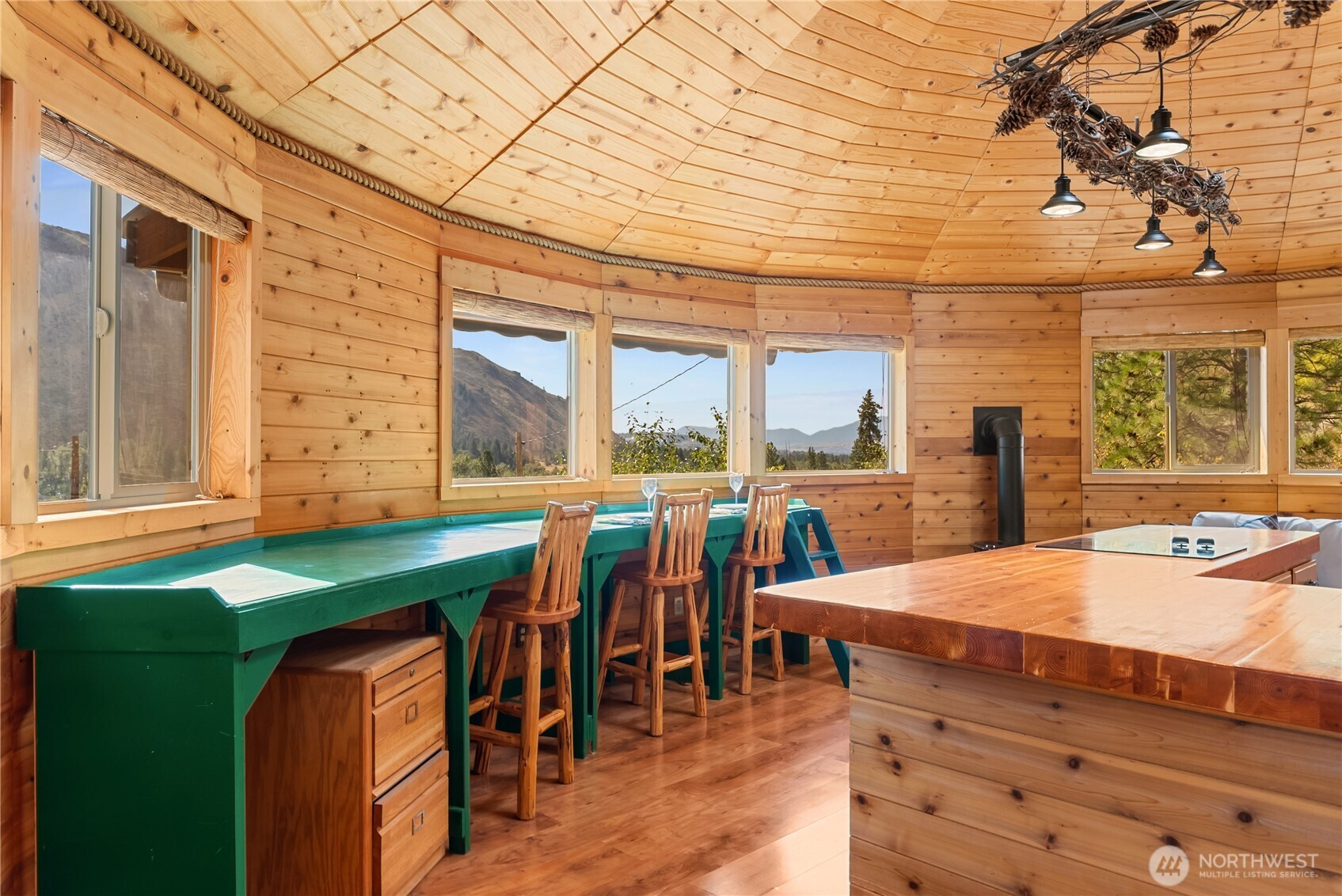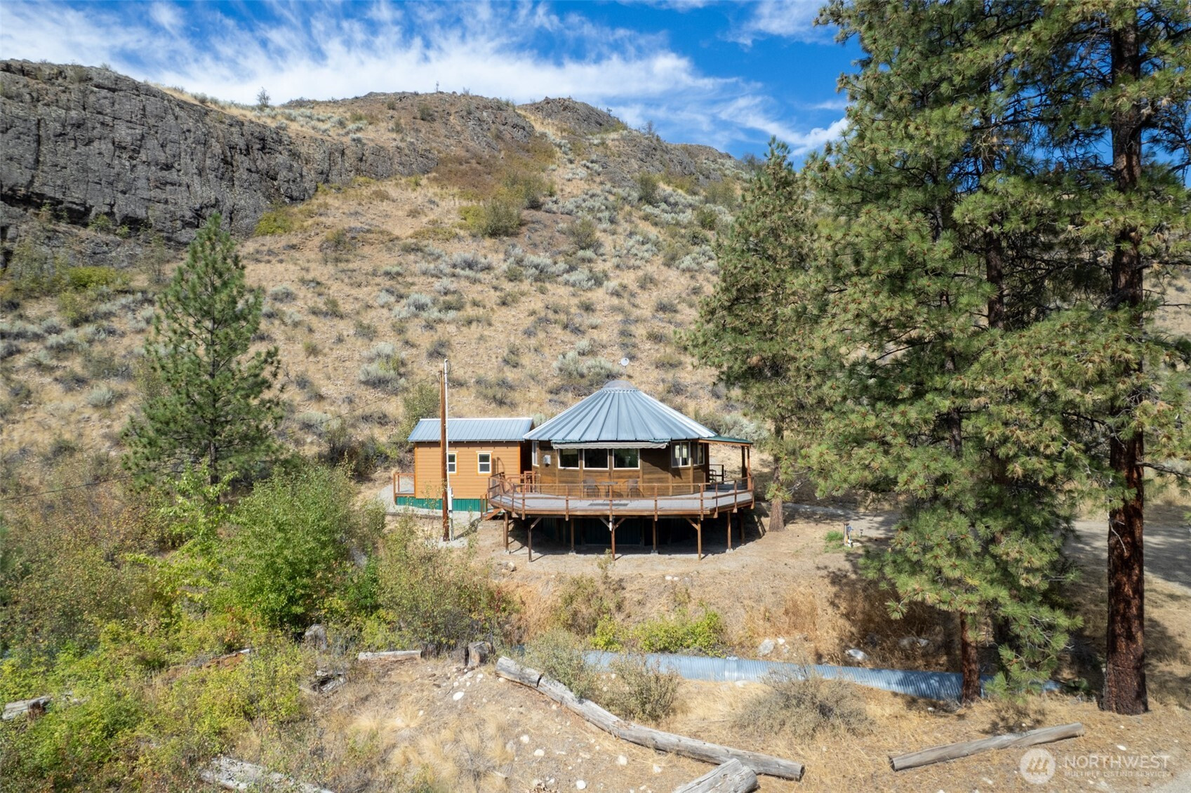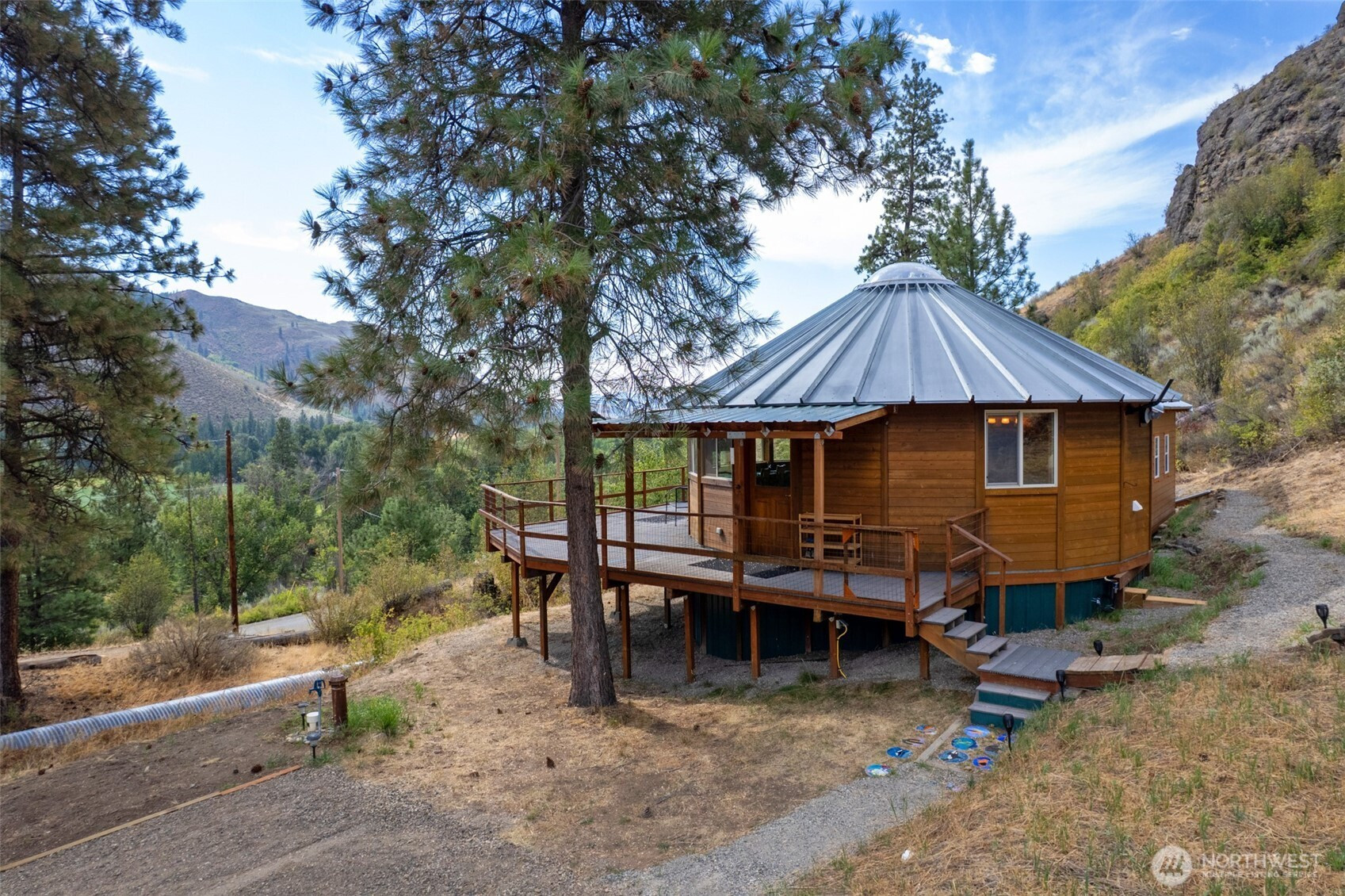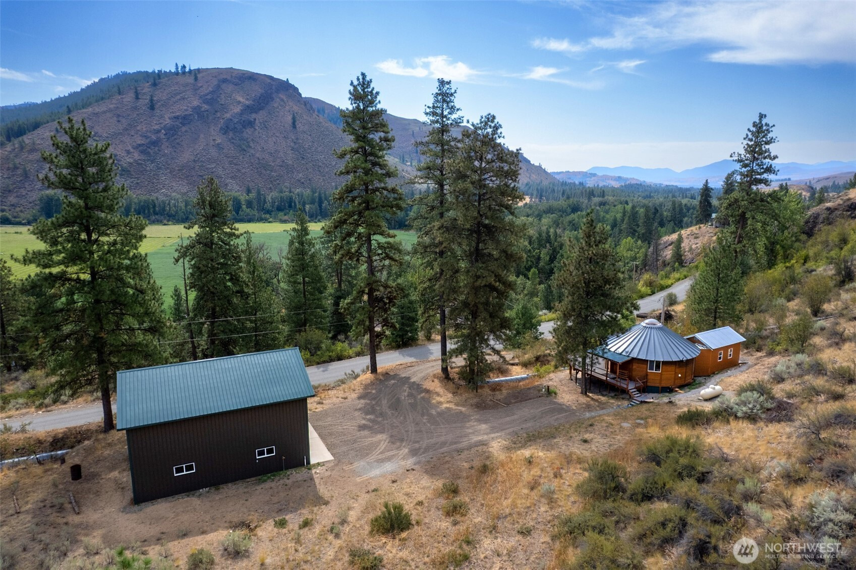 Unique 672 sf 1 bed, 1 bath round house with warm wood finishes, cozy propane fireplace, on-demand hot water, and east-facing windows that flood the space with natural light. Enjoy a wraparound deck and sweeping, permanently protected views of the West Chewuch river valley. A 1,350 sf, three-level insulated pole barn offers a concrete floor, RV parking, workshop, and abundant storage. Just 6 miles from Winthrop and Falls Creek Falls in the Okanogan National Forest—ideal for endless recreation or quick trips to town. Your Methow Valley adventure base starts here.