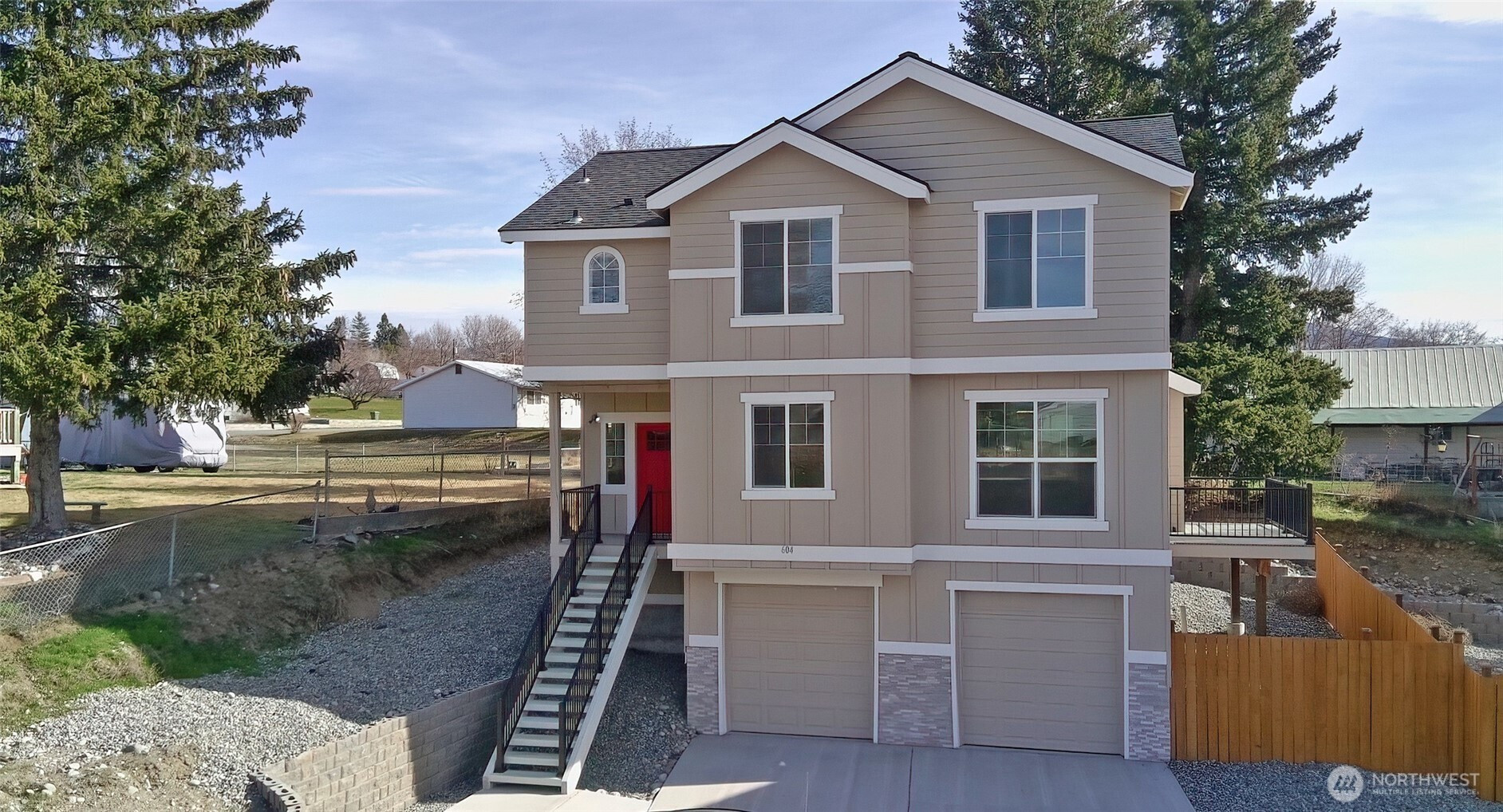 Be the first to live in this beautiful brand-new home! This 3-level design offers 3 bedrooms, 2.5 baths, and a bright open-concept living and dining area perfect for entertaining. The modern kitchen features quartz countertops, stainless steel appliances, and plenty of cabinet space. Durable LVP flooring and air conditioning provide comfort and easy upkeep. All bedrooms and the laundry area are conveniently located upstairs. The lower level includes a spacious 2-car garage with direct access to the main floor. One of two newly built homes side by side, with contemporary finishes and quality craftsmanship. Close to town, schools, and parks.
