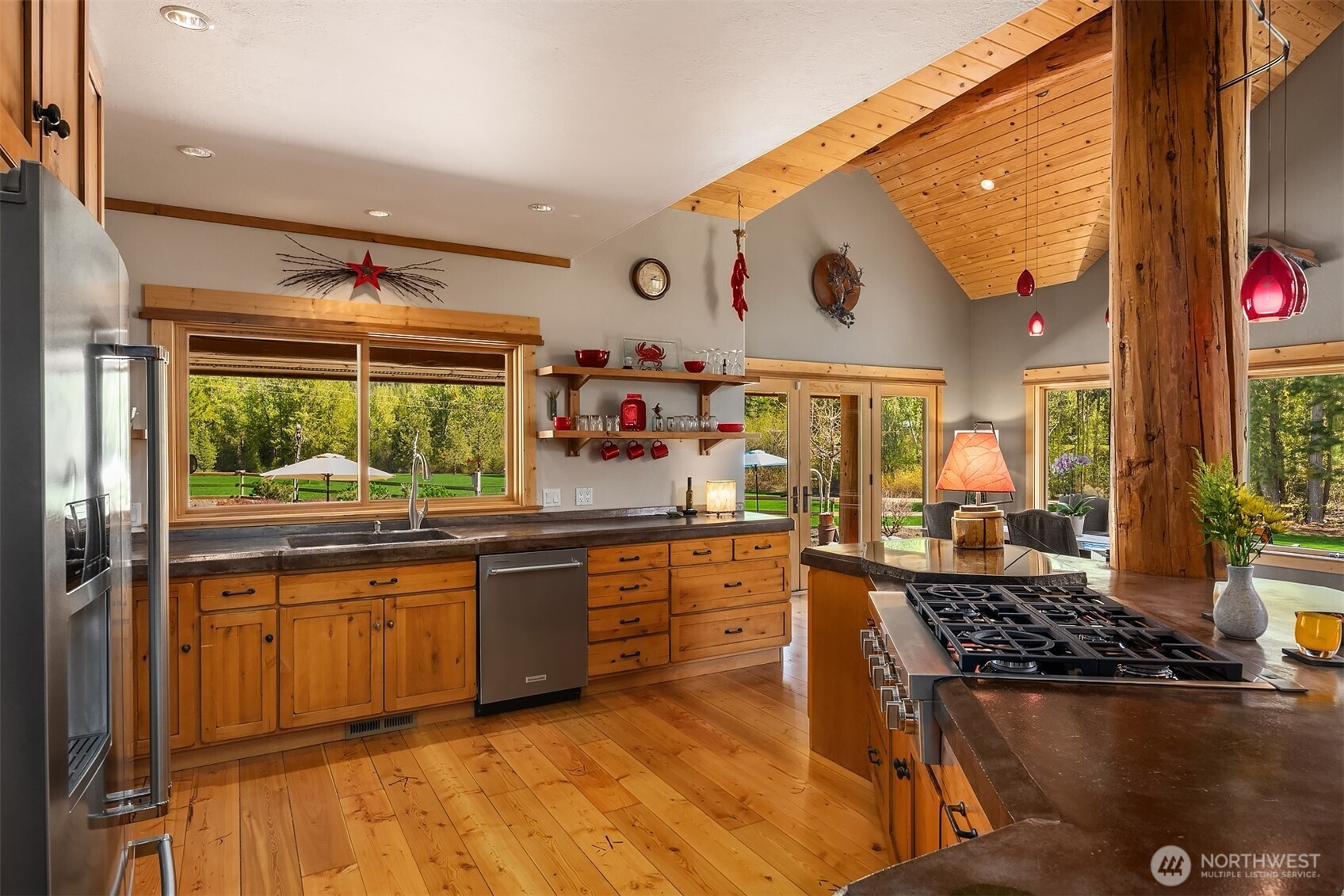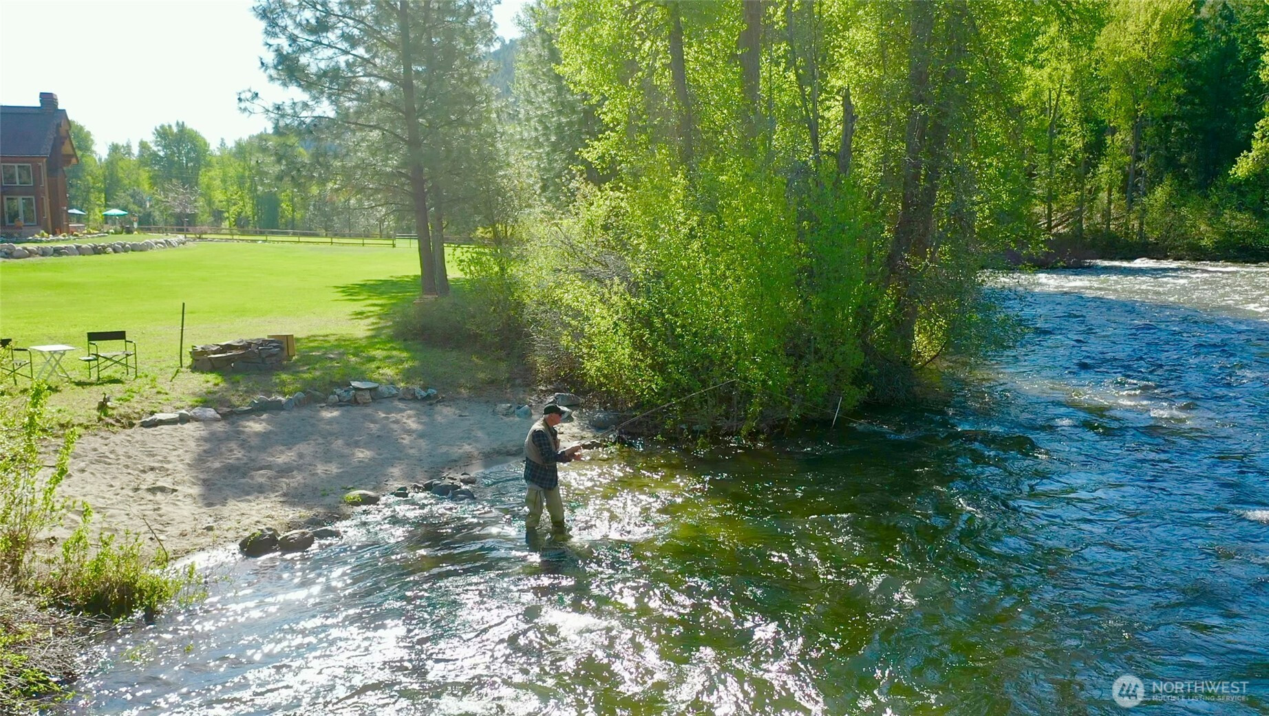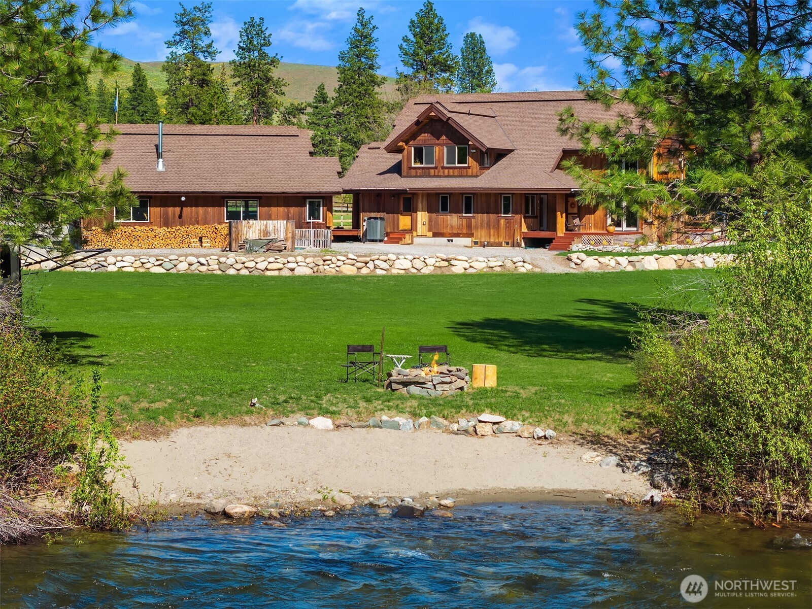 This Extraordinary Legacy Estate-quality home and property features a rare opportunity to own 2,300 +/- feet of Twisp River frontage as your South-West boundary, with a total of 14.33 acres spread over 3 tax parcels. Just 10 minutes to Downtown Twisp, but feels a world away. Enjoy 5 sandy, private beachfronts along the river's edge to take in the serenity of the flowing waters, do some fishing, or just just relax in the cool shade. A nice privacy buffer is provided by 2 private islands located in the center of the River. The commanding home is built at an extreme spec level, in like-new condition with updating throughout (a complete list is available). The Primary Suite has a Resort/Spa feel and there's a 2nd Primary Suite on the Main Level, plus a 3rd oversized Bedroom currently used as an Office with the 3rd GuestBathroom. Covered parking for 11 vehicles/equipment/RV. Generous heated Shop space. Barn is designed for storage plus horse stalls, you decide how to use the space. 50-year roof. Want to expand? There is plenty of room to build a Second Main House and ADU's -- positioned downstream with a 2nd private, gated entrance and a 2nd well that's dug, and utilities available. Or, sell off already divided parcels and recoup some money! Guests have loved to camp at water's edge as well, in fact many have commented this property is "like owning your own State Park"! A true legacy property, the Flying X brand dates back to 1940. Come see this very special retreat!