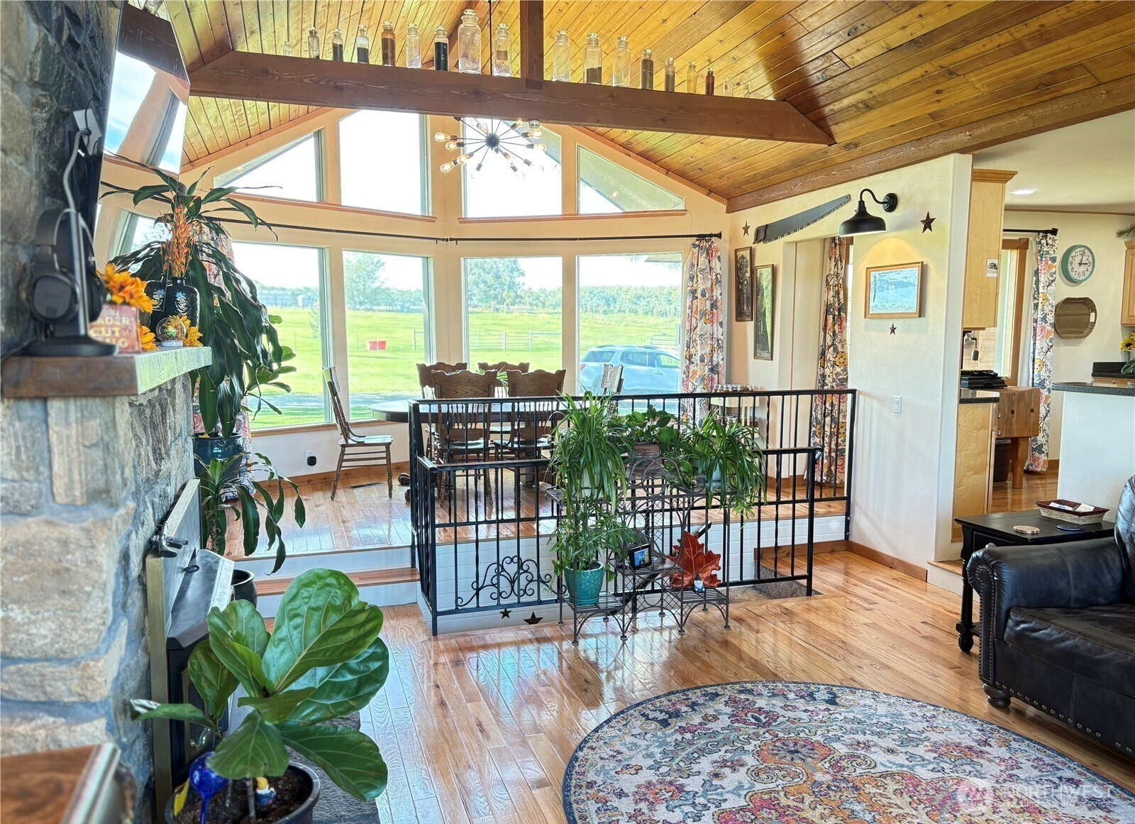 Private country retreat with breathtaking views and endless possibilities! Welcome to this inviting 2+ bedroom home tucked away on 5.9 peaceful acres, offering the perfect blend of comfort, functionality, and rural charm. The spacious primary suite features a beautifully updated bathroom heated floors and a walk-in closet, while the main bathroom has also been fully remodeled, giving the home a fresh, move-in-ready feel. The heart of the home is the living room, where warm oak floors, a cozy fireplace, and a stunning wall of windows bring in natural light and frame sweeping views of the mountains and river—a setting you’ll never get tired of. Downstairs, the lower level offers flexible space that can easily serve as a second living room, guest area, or additional bedroom, complete with a convenient half bath—perfect for visitors or multi-generational living. Step outside and take in everything this property has to offer: A massive 24x70 shop for all your projects, storage, or business needs; 4 irrigated acres of fenced pasture ready for animals; greenhouse and plenty of room to expand, garden, or simply enjoy the privacy and quiet of country living. Whether you’re looking to start your homestead, bring your animals, or just enjoy wide-open space with incredible views, this property delivers.