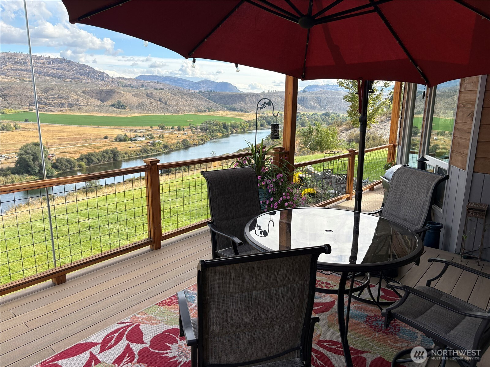 Enjoy breathtaking views of the mountains & river from this beautifully maintained 3-bedroom, 4-bath home. Featuring updated flooring throughout, a spacious kitchen, living room with fireplace, this home offers both comfort and style. Primary bedroom has a newly remodeled bathroom with walk-in shower, fixtures, heated floors and more. Main bath has been remodeled with new tub, shower, heated floors & cabinet. A flexible guest bedroom can serve as an additional room, living room & the large deck is ideal for outdoor entertaining. The grounds are thoughtfully landscaped & fully equipped for country living. Highlights include a 24x70 shop, greenhouse, chicken coop, fencing, 5.9 acres, with irrigation. Private location on dead end road.