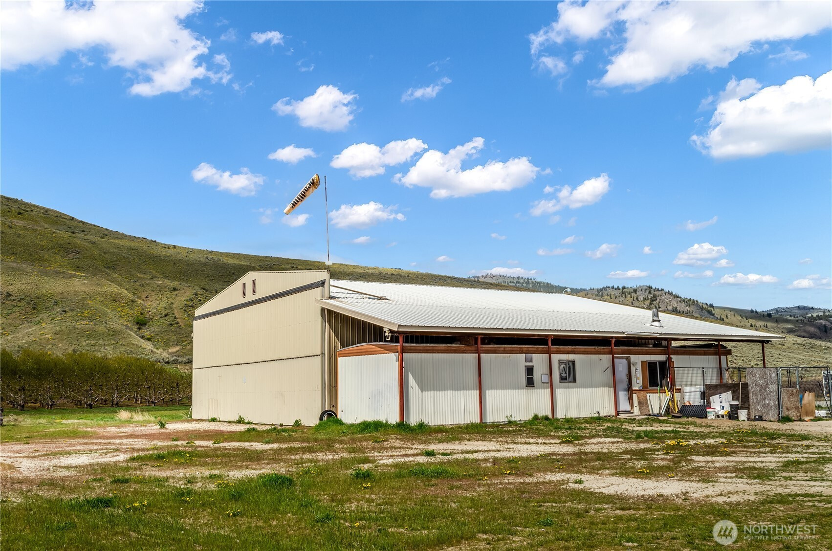 Rare opportunity to own a registered private airport, Lockwood Dry Coulee Airport, set on 401 expansive acres with a 3,800-ft runway. Take in breathtaking panoramic views of the city of Okanogan, surrounding mountains, river, and wide-open territories.This exceptional property offers limitless potential—create a premier fly-in community, remodel the existing 5-bedroom, 3-bath home with detached garage and indoor pool, or start fresh and build a one-of-a-kind aviation estate. Well and septic are already in place. Multiple prime building sites throughout the property provide flexibility for development or a private retreat.A standout feature is the impressive 50’x60’ hangar with a 49’x17’ bi-fold door and a 14’x50’ attached office—ideal for aircraft storage, operations, or hobby use. With no CCRs or HOA, year-round access, and direct proximity to BLM & DNR land, this property offers unmatched freedom and recreation. Conveniently located just minutes to downtown Okanogan, schools, dining, and shopping; 9' to Omak and under 30' to Brewster.