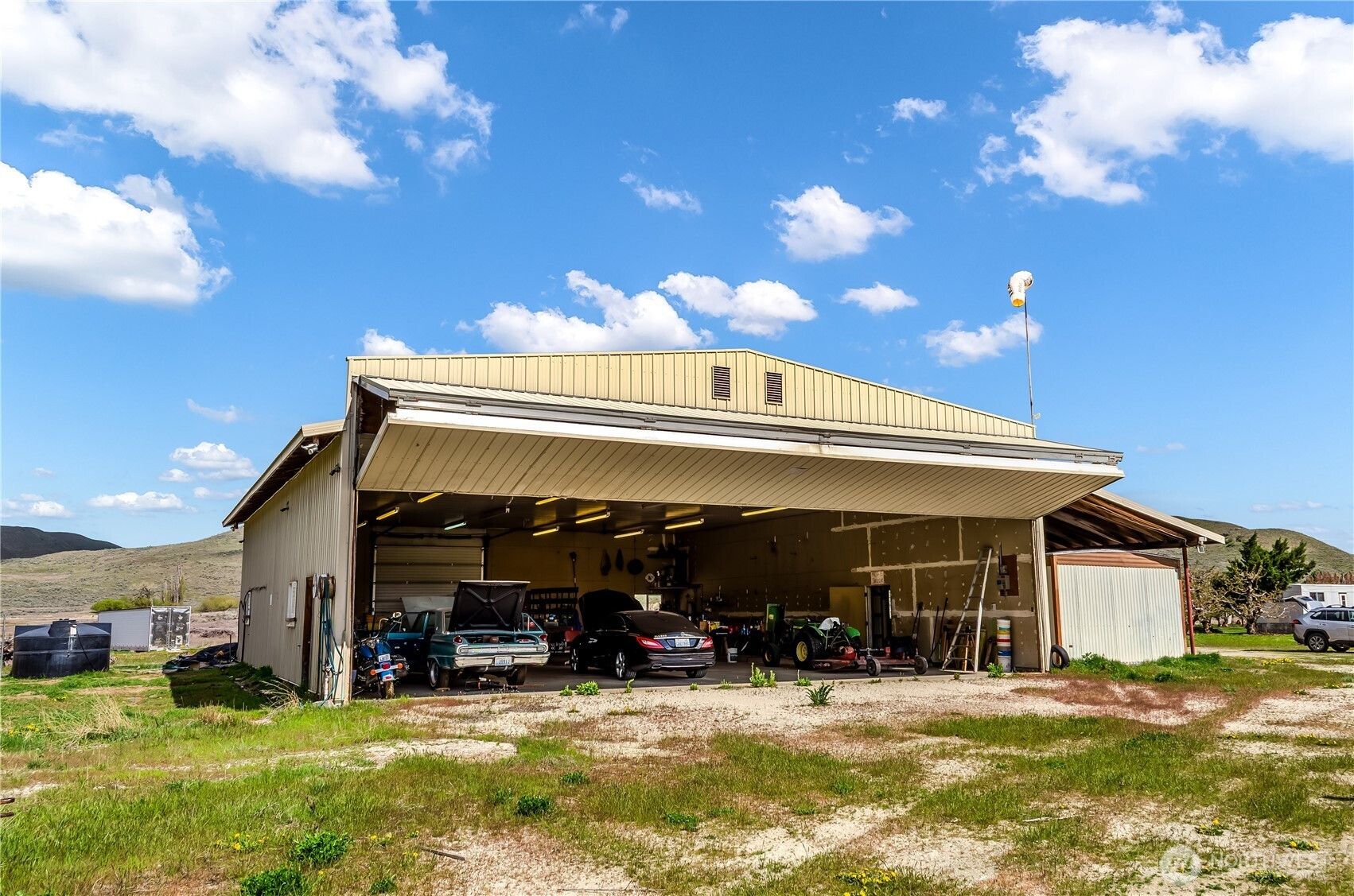 Rare opportunity to own a registered private airport, Lockwood Dry Coulee Airport, set on 401 expansive acres with a 3,800-ft runway. Take in breathtaking panoramic views of the city of Okanogan, surrounding mountains, river, and wide-open territories.This exceptional property offers limitless potential—create a premier fly-in community, remodel the existing 5-bedroom, 3-bath home with detached garage and indoor pool, or start fresh and build a one-of-a-kind aviation estate. Well and septic are already in place. Multiple prime building sites throughout the property provide flexibility for development or a private retreat.A standout feature is the impressive 50’x60’ hangar with a 49’x17’ bi-fold door and a 14’x50’ attached office—ideal for aircraft storage, operations, or hobby use. With no CCRs or HOA, year-round access, and direct proximity to BLM & DNR land, this property offers unmatched freedom and recreation. Conveniently located just minutes to downtown Okanogan, schools, dining, and shopping; 9' to Omak and under 30' to Brewster.