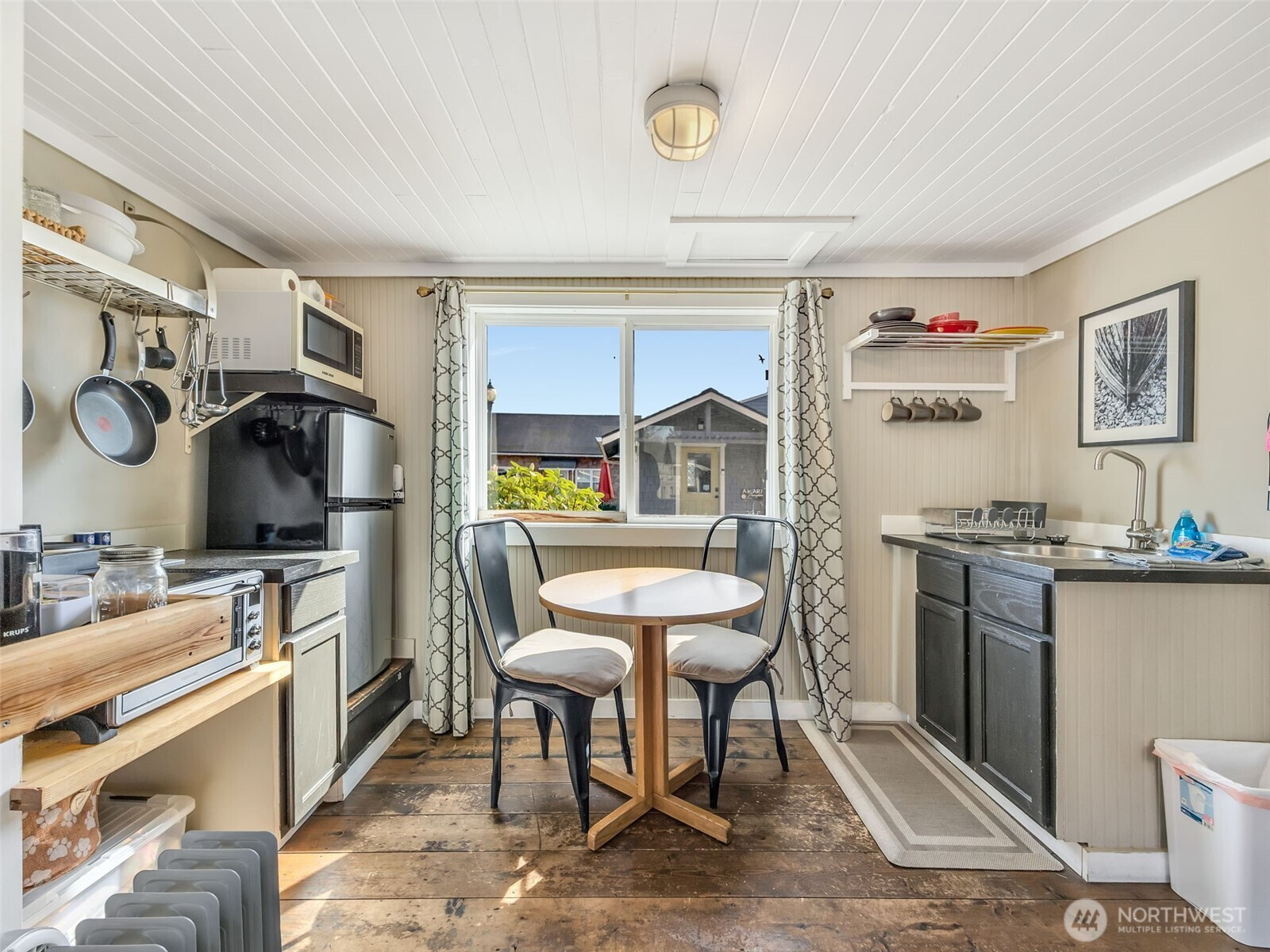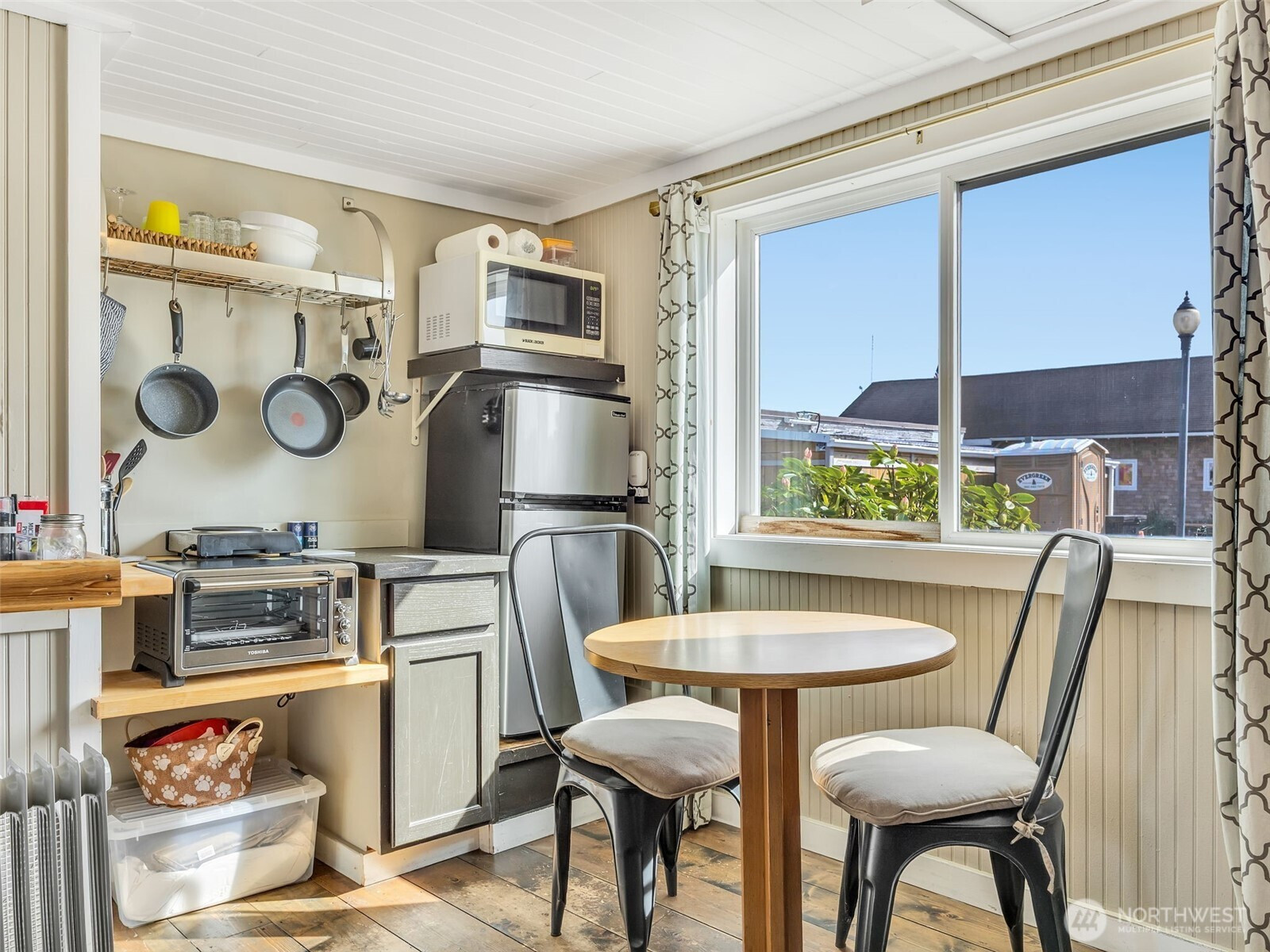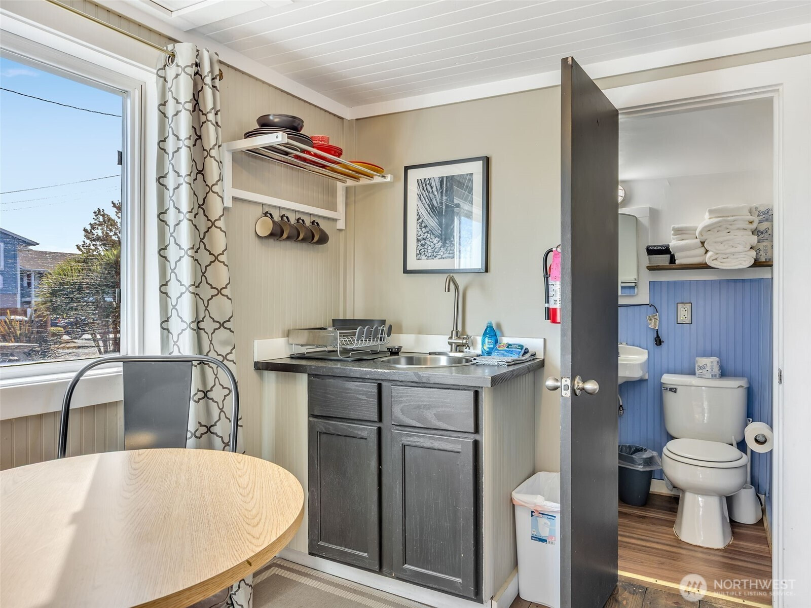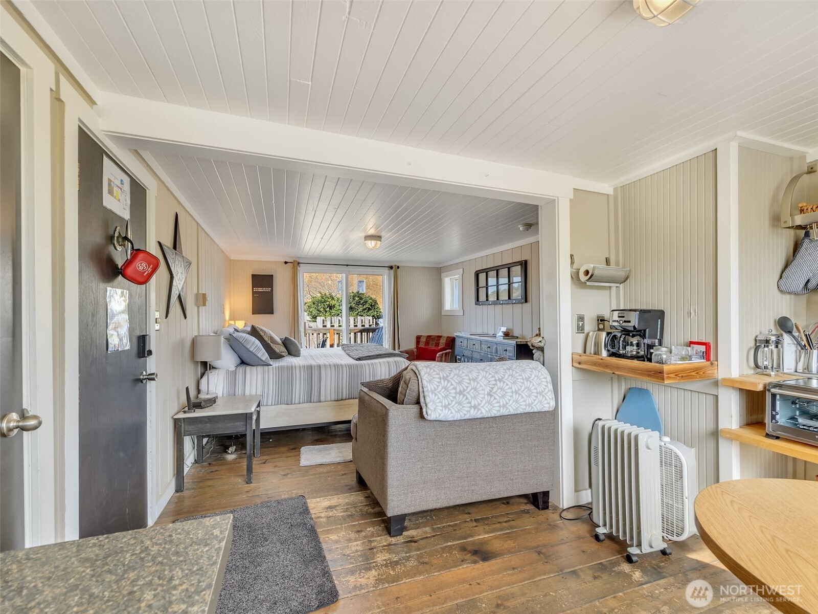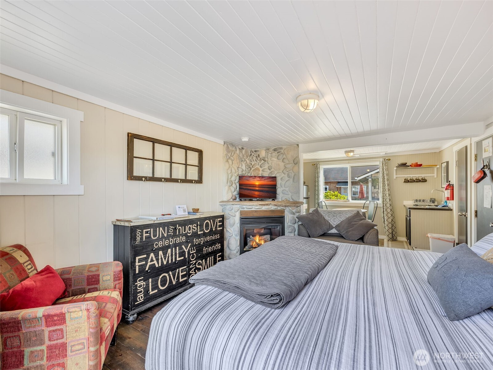 Tucked just moments from the sand, this fully furnished, coastal bungalow, offers an unbeatable location in the heart of downtown Long Beach. Situated in the Akari Bungalows community, this prime setting places you near the boardwalk, beach approach, shops, dining, and year-round events. Inside, the space is efficiently designed with warm wood flooring, a cozy gas fireplace, and an open layout that lives larger than expected. Sliding doors lead to a private deck, creating an easy indoor-outdoor flow to enjoy the coastal air. A standout feature is the separate 10x12 outbuilding, offering space for a full-size washer and dryer along with additional storage for beach gear, owner storage, or flex space. This added functionality is a rare bonus for properties in this location. Ideal as a personal getaway, low-maintenance beach retreat, or potential short-term rental (subject to city permitting), this property offers flexibility for a range of buyers. HOA dues include insurance and utilities, making ownership simple and predictable. With the boardwalk, beach approach, and downtown nearby, this is a strong opportunity to own in one of the Peninsula’s most sought-after locations.