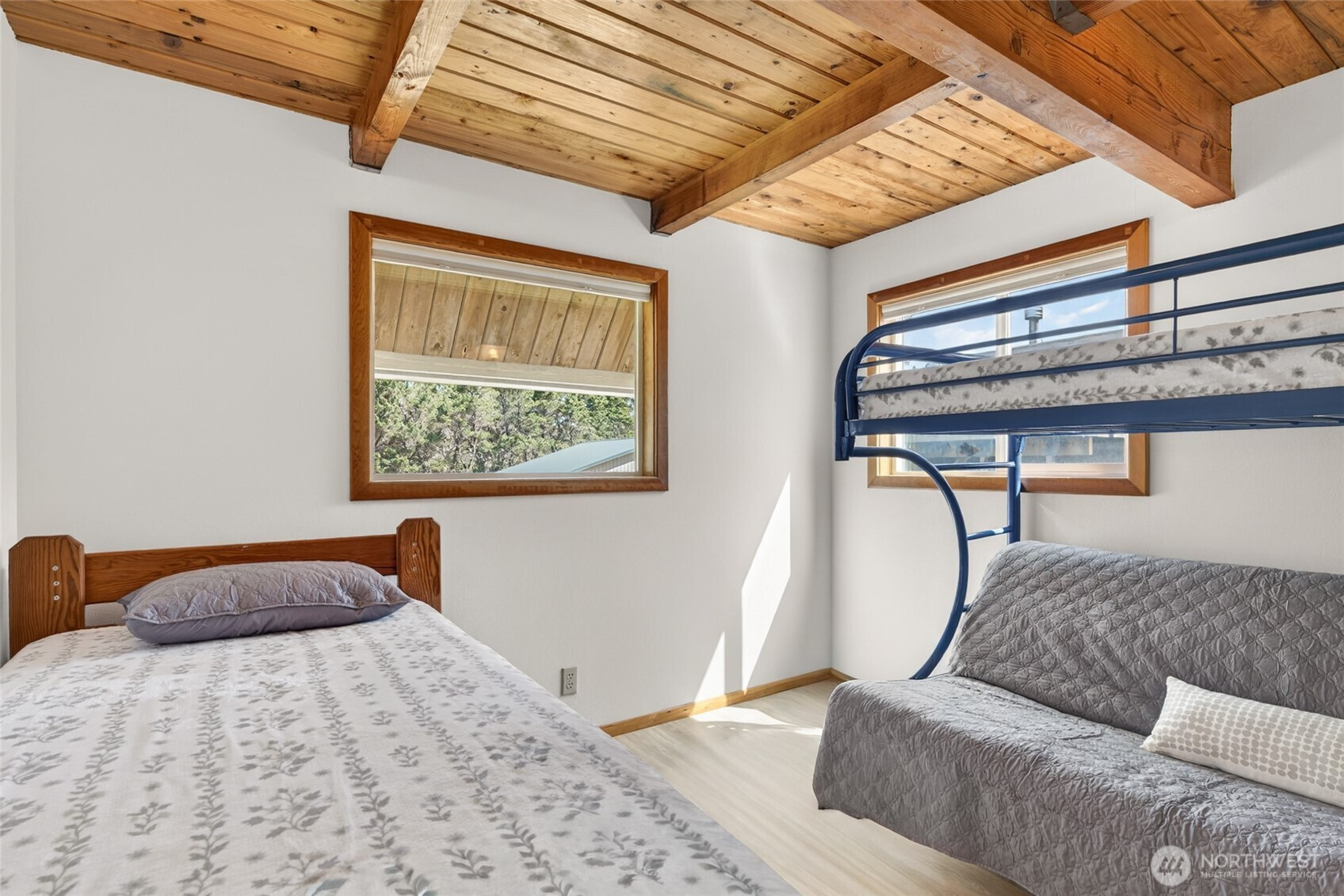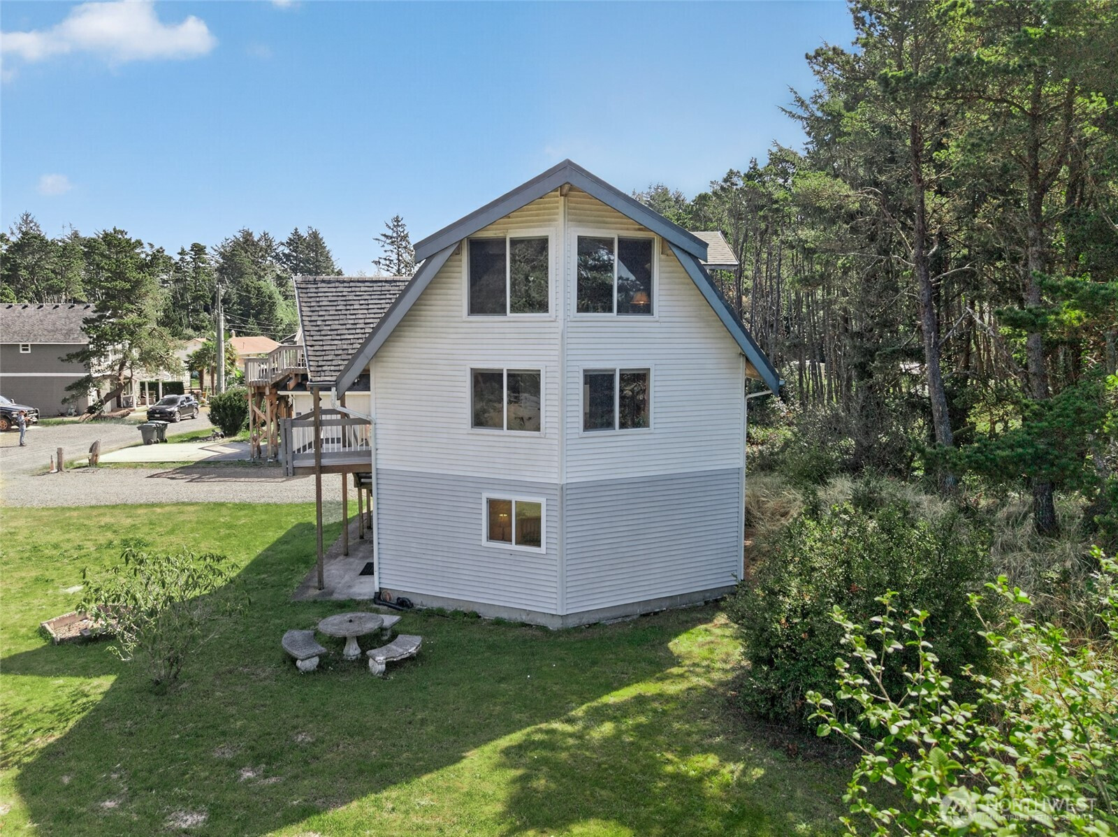 Tucked away at the end of a quiet lane with deeded beach access, this custom-built retreat offers the perfect blend of privacy, comfort, and connection to nature. Designed for both relaxation and entertaining, the first level features an impressive entertainment space complete with a bar, plus a bonus bedroom—ideal for guests or flexible living. Upstairs on the second level, you’ll find a well-appointed kitchen, dining area, and cozy living space, along with two bedrooms and a full bathroom—perfect for everyday living. The third floor is a true sanctuary, boasting a spacious living area and a private primary suite with generous storage and its own bathroom. Surrounded by towering pines along the western upland boundary, the home evokes a peaceful treehouse feel. Turnkey and ready for fun, this home comes stocked for the ultimate beach getaway—grab the clam guns, pack a picnic, and head for the sand just moments away via your deeded access path. Tucked off the road, it’s the perfect place to unwind, explore, and make lasting coastal memories.