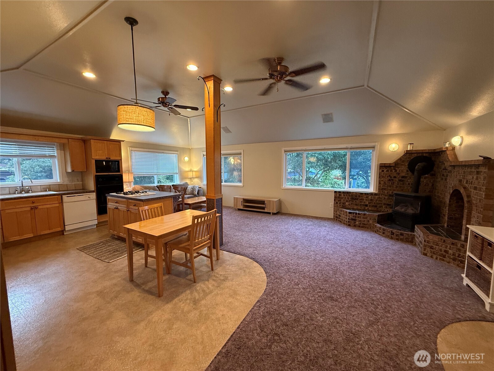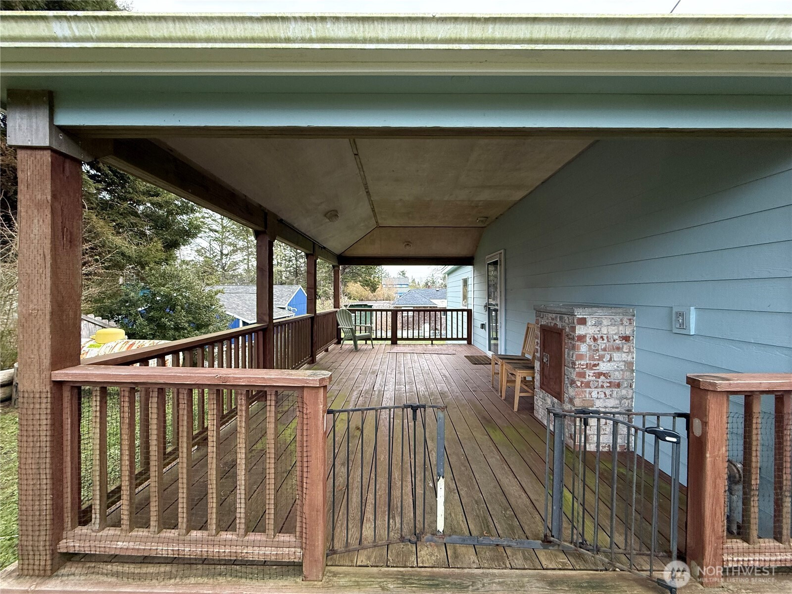 Great west side home on a large lot just a short distance to the ocean trail. Move-in ready with one bedroom and bath up, second bedroom and bath down—nice separation of space for guests or everyday living. Open living area flows into the kitchen with plenty of cabinets and an island with gas range. Vaulted ceilings, ceiling fans and lots of west-facing windows bring in good natural light, plus a propane corner stove with brick surround for a cozy touch. Covered patio at the northwest entry. Property includes two parcels totaling nearly 1/3 acre with fire ring, landscaping, partial fencing and room for RV or boat parking, along with a 12x20 shop and fenced area for pets or play. Located on a quiet dead-end street, approx. 250 feet to the start of the ocean trail—close enough to hear the ocean and catch those beach sunsets. Solid option for full-time living, weekend escape, or coastal getaway.