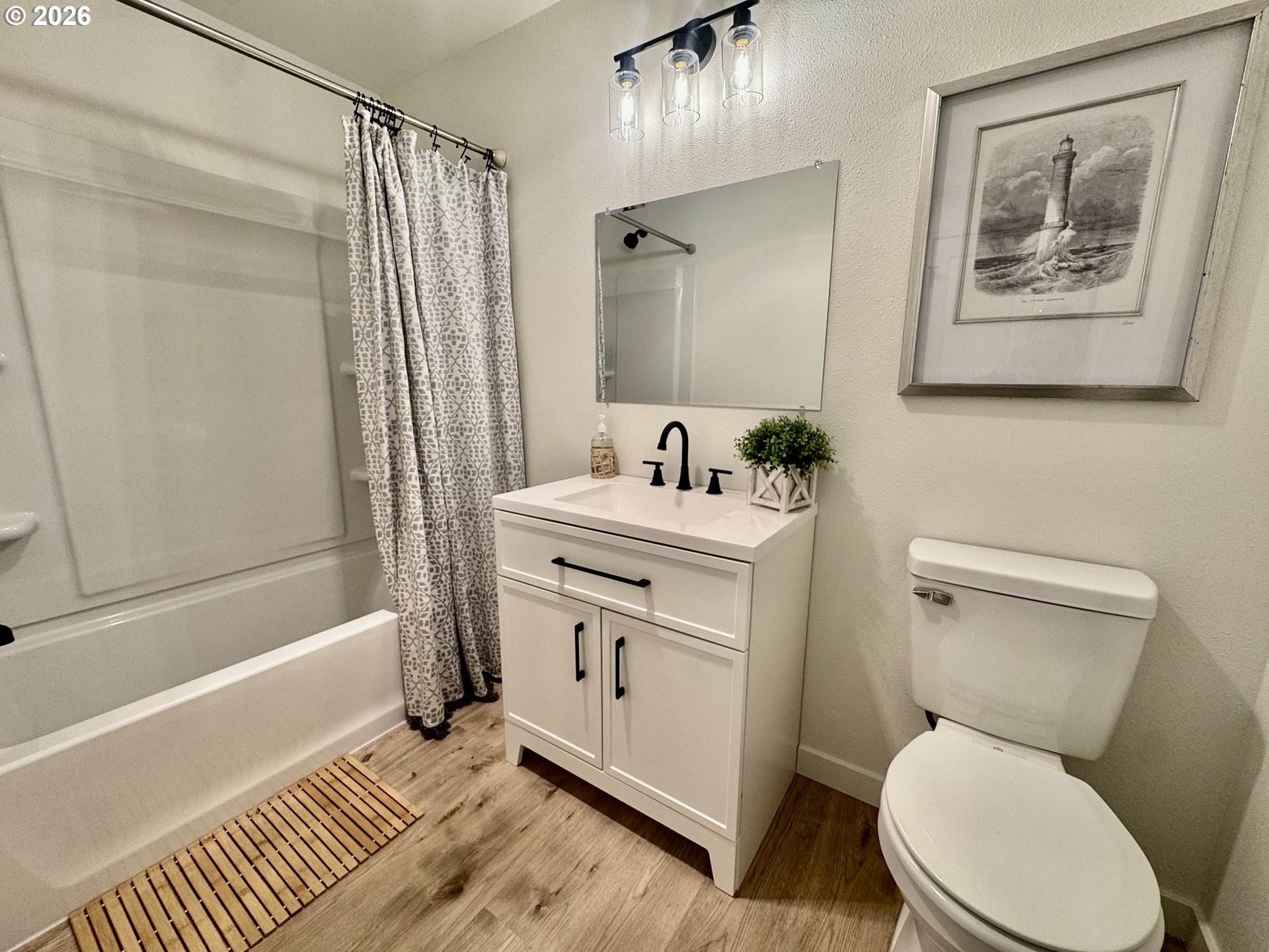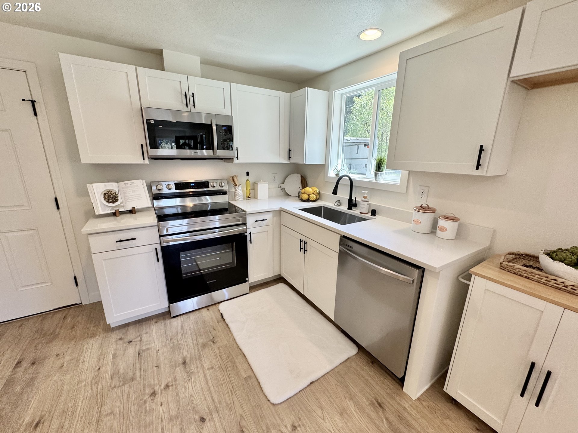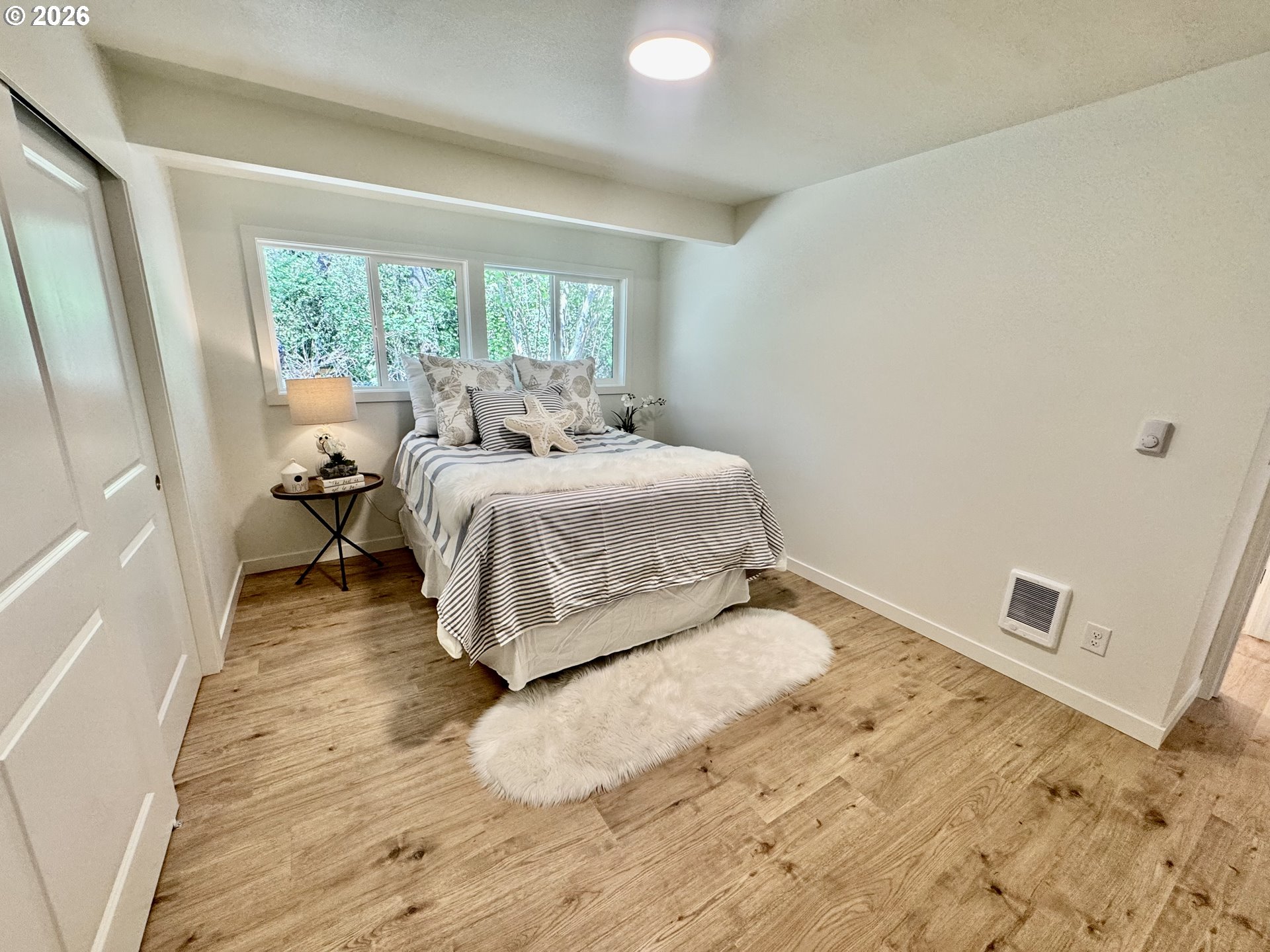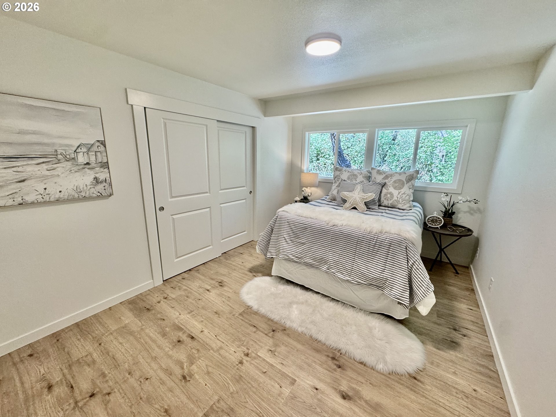 Completely Remodeled Beach Retreat.Welcome to your Long Beach getaway—perfectly positioned on a quiet dead-end road with direct beach access and backing to peaceful green space for added privacy. This beautifully updated home has been remodeled inside and out, offering a clean, modern feel with all the right upgrades.Step inside to an open, bright living space featuring new luxury vinyl plank flooring, fresh interior and exterior paint, and a cozy brick wood-burning fireplace—perfect for relaxing after a day at the beach. The remodeled kitchen shines with new cabinetry, updated counters, stainless steel appliances, and a convenient pantry for extra storage.The home also features vinyl windows, a fully remodeled bathroom, and thoughtful finishes throughout. Outside, you’ll find an oversized single-car garage with additional storage, plus ample room for RV parking.Enjoy the rare combination of privacy, functionality, and location—just moments from the sand with a serene natural backdrop.Beach living made easy—move-in ready and a must-see