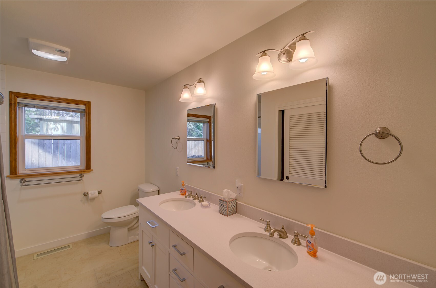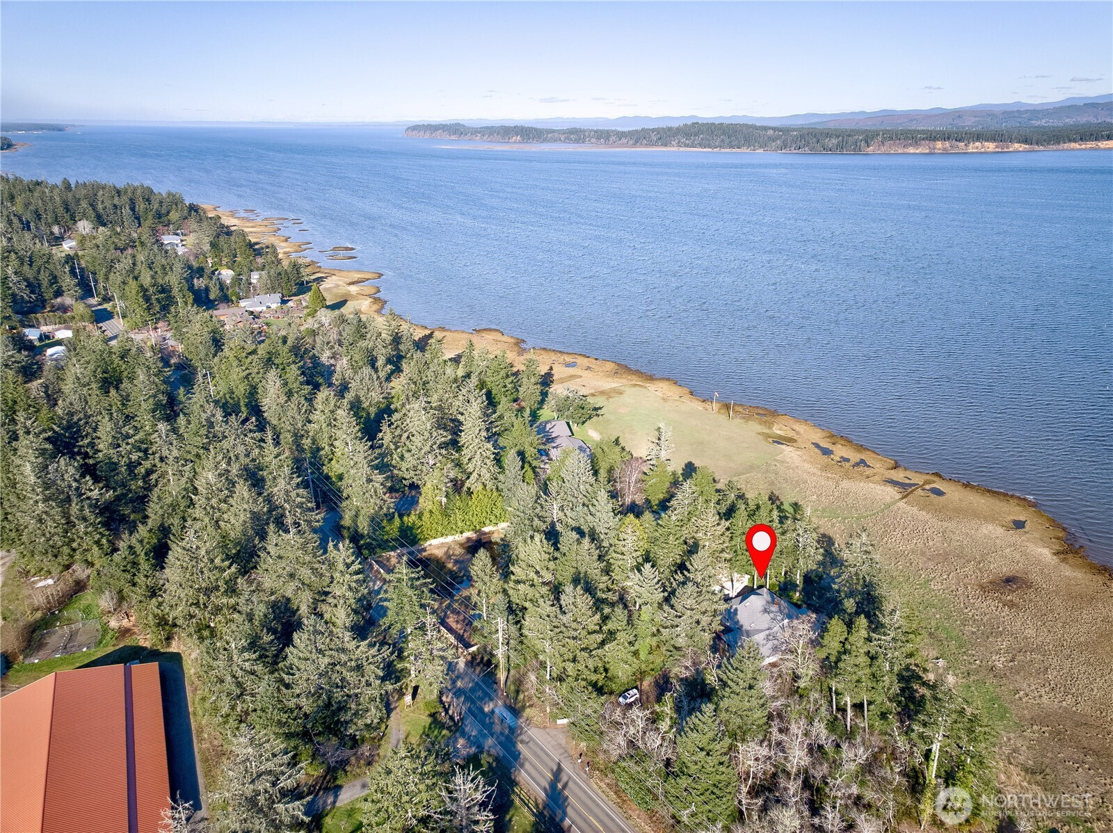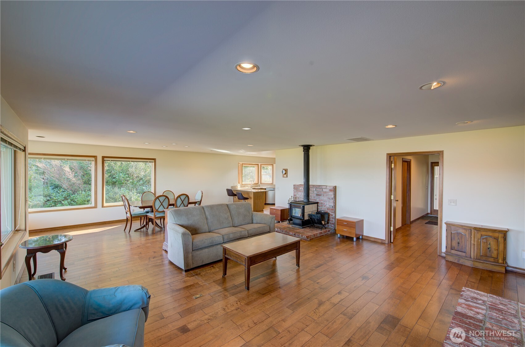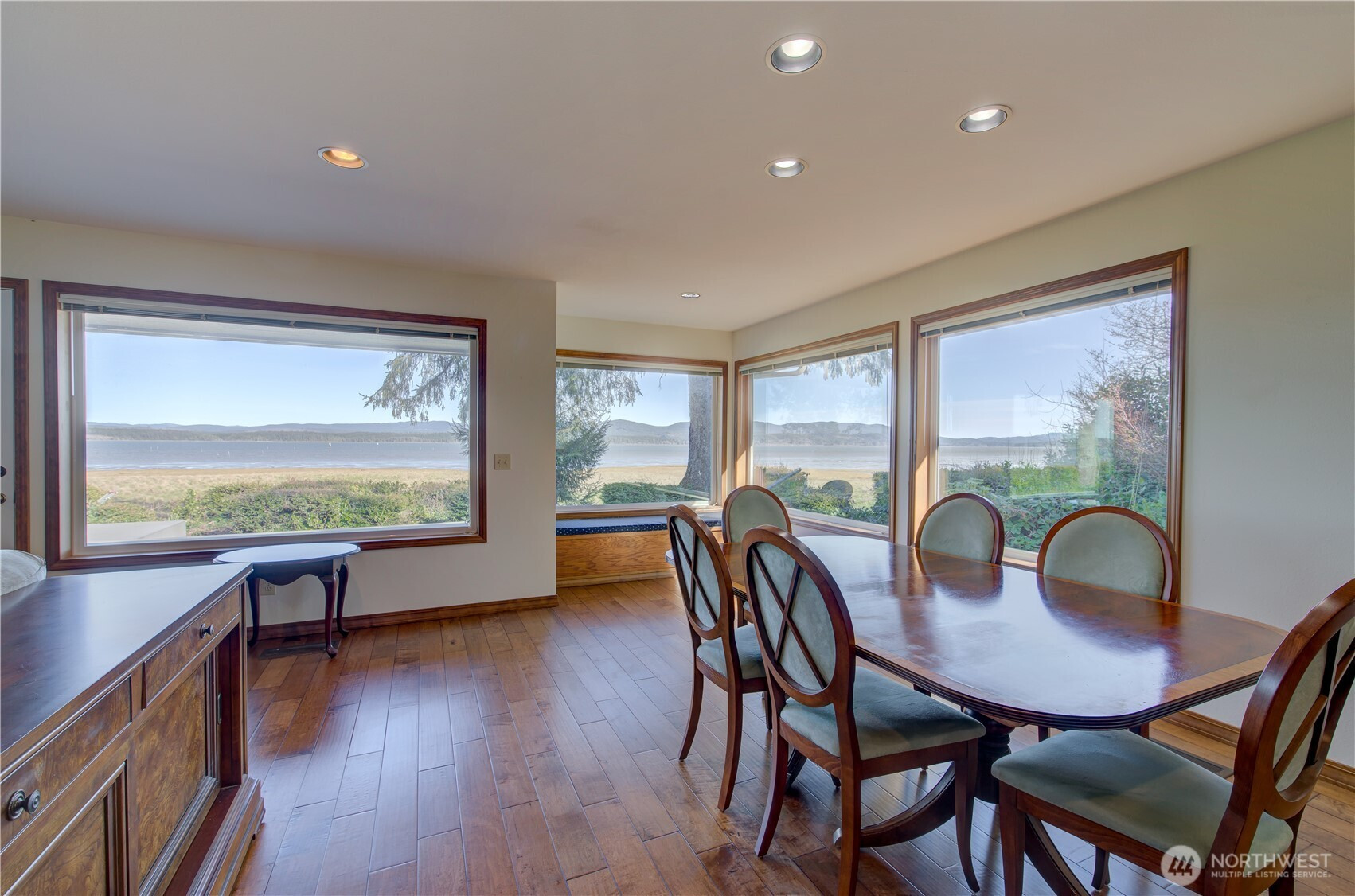This Willapa Bay front home is tucked away in the trees which provides a lovely sense of privacy and seclusion where you will enjoy stunning Bay and Willapa Hills views from this waterfront oasis. Enter in to a well maintained and spacious 2,453 square foot 3 bedroom home featuring 3/4 inch solid wood floors with factory finish, a wood fireplace plus a free standing wood stove, upgraded windows, granite counters and backsplash, and a 850 square foot deck. You will also find remodeled bathrooms with the primary ensuite bath featuring a heated floor and walk in shower that provides two regular shower heads along with a rain shower. The primary bedroom features a generously sized walk in closet. Additional upgrades are new water heaters, 43 can lights and new well pump. Generously sized attached 500 square foot 2 car garage. Large utility room with 1/2 bathroom. Circular driveway with an additional parking area for 2 cars.