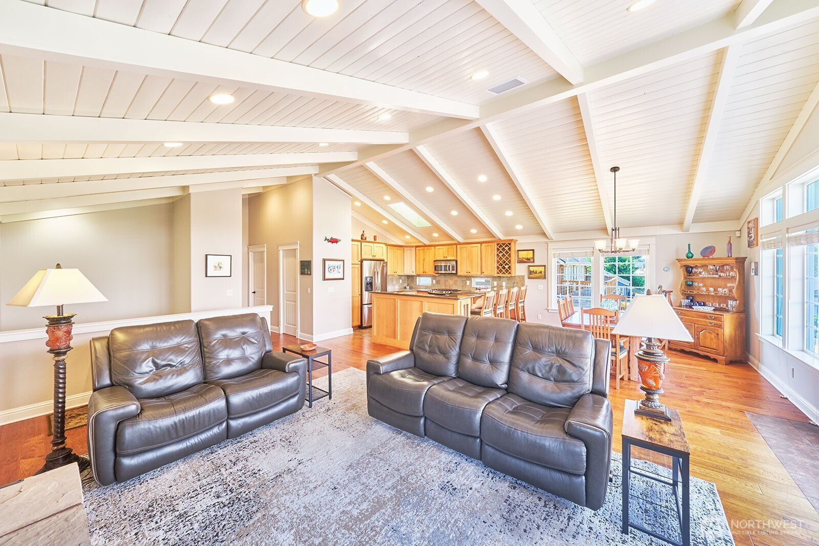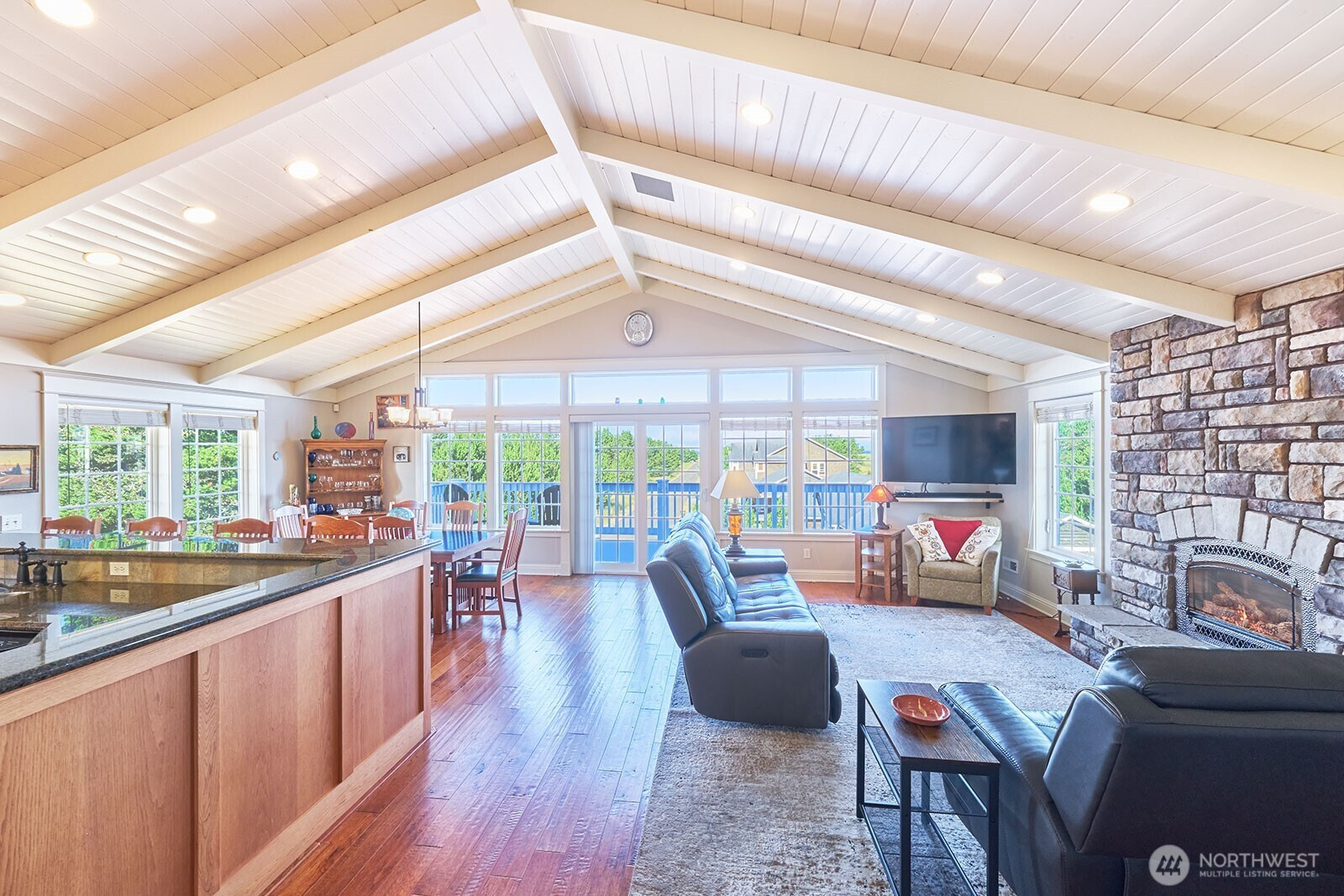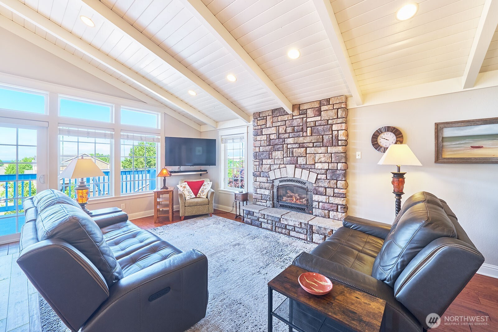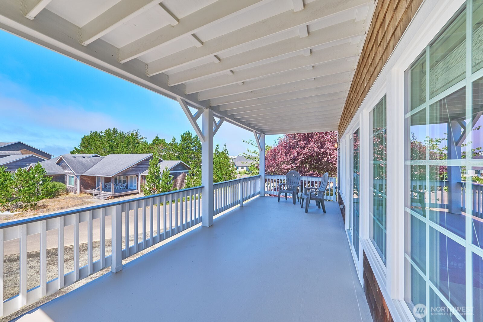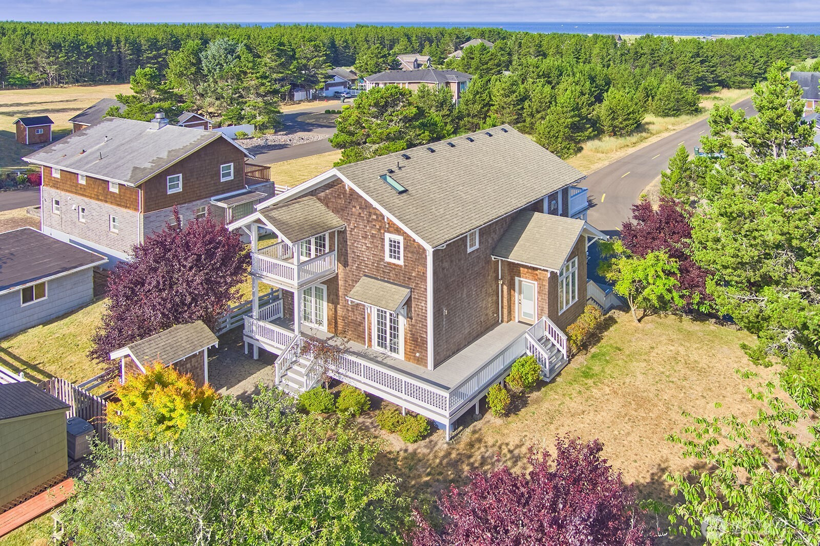 Architect-designed coastal retreat with ocean views, ideally positioned at the trailhead of the 8-mile Discovery Trail and close to town. Built by a luxury builder for personal use, this home delivers a rare blend of design, function, and active coastal living. A reverse floor plan maximizes light and elevation, with the top-floor great room serving as the home’s centerpiece—vaulted, sunlit, and anchored by a striking propane fireplace. It’s an ideal setting for entertaining, unwinding after a day outdoors, or watching Pacific storms roll in. Designed for those who value movement and flexibility, the multi-level layout creates distinct, purposeful spaces. The primary suite has granite finishes and a private east-facing deck to greet the sunrise with coffee. The mid-level offers a second primary suite, third bedroom, utility room, and an expansive family room opening to a covered deck—perfect for guests or extended stays. The ground level adds a large bonus room with ¾ bath, making a great home gym, office, or additional guest space. A finished/plumbed two-car garage provides ample room for bikes, boards, and everything that comes with an active coastal lifestyle. Set on two city lots, the additional parcel enhances privacy and offers future flexibility for expansion. Step outside to miles of trail, quick access to the beach, nearby golf, and year-round recreation. Coastal living for those who lean into the PNW lifestyle—and value a home that rises to meet it.
