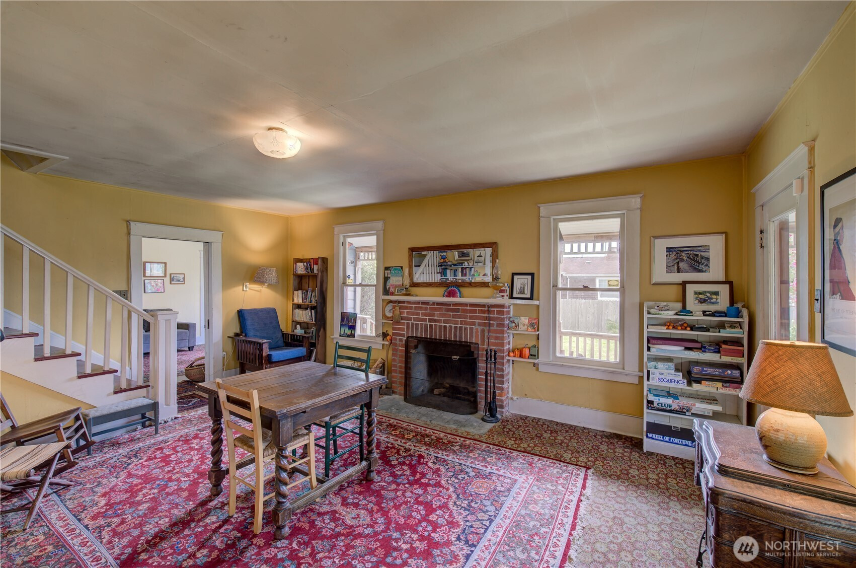 Great Location! Built in 1895, this is one of the original homes in downtown Long Beach and has been in the same family since the 1960's. Located just a few blocks from downtown, all the shopping, stores & fun times are easily accessible. Across the street is a playground, park and athletic court often used for pickleball. You'll find that the interior is comfortable & spacious w/ soaring ceilings and large rooms with a wood burning fireplace in the family room. The functional kitchen offers a propane range/oven. The roomy covered wrap around porch on the west & north sides of the home brings nostalgia of days gone by and offers beautiful privacy under the massive rhododendron 'tree' along with other mature flora. New roof 2025. Turnkey.