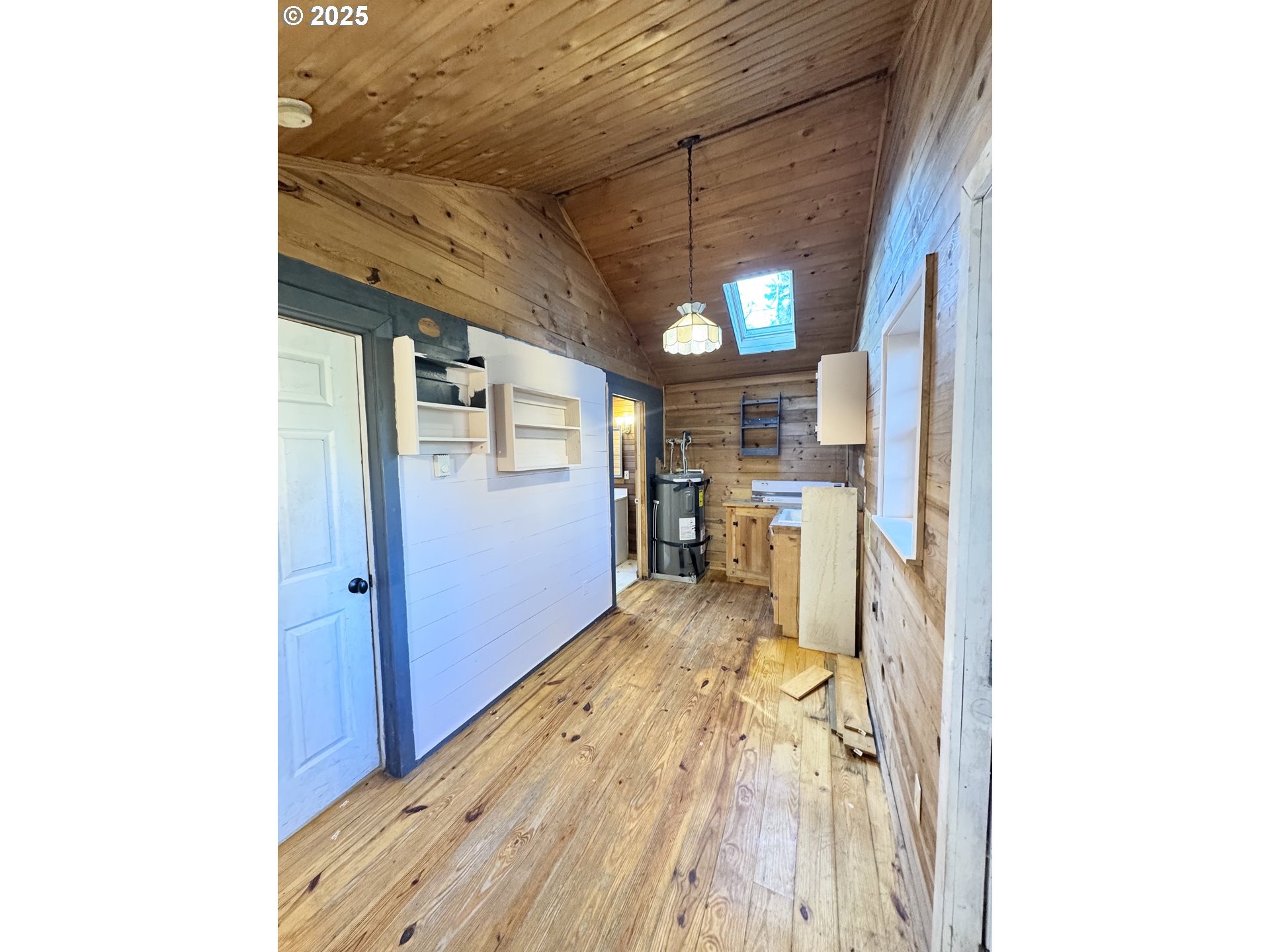 Looking for a beach retreat? This 3 bedroom (with unfinished upper loft), 1.5 bath cabin sits on a large wooded 2 parcel lot with a partial wrap around porch. New roof installed 3 years ago with partial window replacement done by Andersen Windows (possible warranty transfer) also done 3 years ago. With some TLC, this can be a true piece of paradise. The ideas are endless for your perfect home away from home. With less than a quarter mile to the ocean, enjoy the sounds of the ocean while you sit outside. Just a 5 minute walk from Beards Hollow and minutes from Long Beach shops & restaurants. BUYERS to do due diligence!!! County shows 917 sqft but home is 1200 sqft. SHORT SALE AS-IS SALE!
