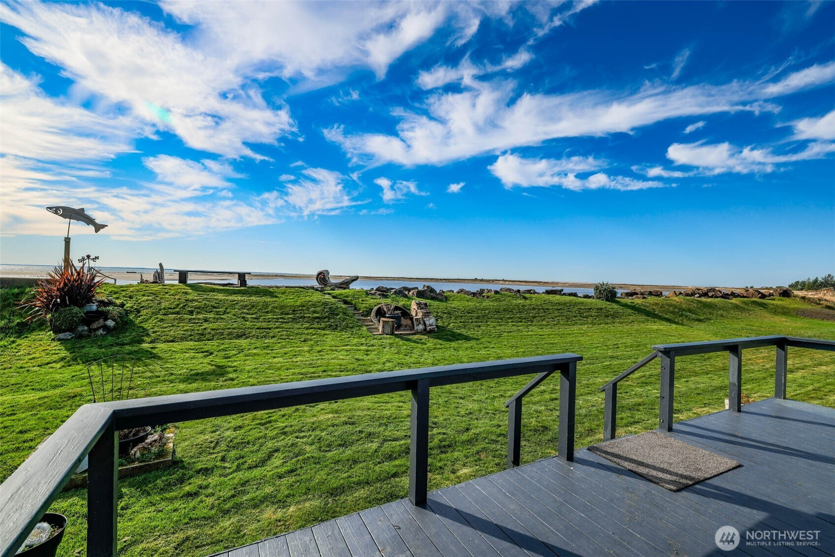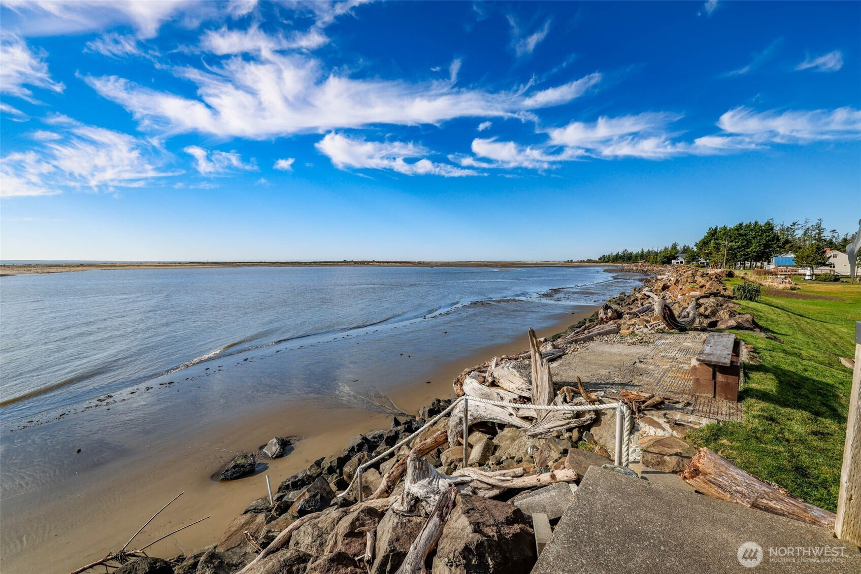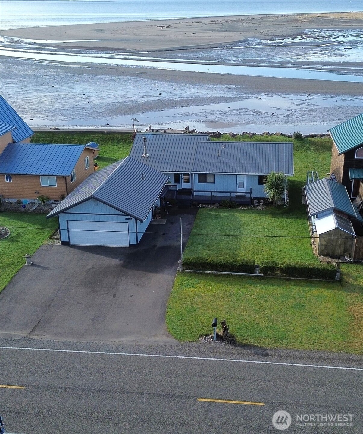 Waterfront living in Tokeland doesn’t get much better than this. This well-maintained home sits on Willapa Bay with spectacular, unobstructed views stretching across the water to the ocean beyond. The living room, kitchen/dining area, and primary bedroom all enjoy water views, bringing the bay into everyday living.Inside, you’ll find vaulted ceilings, stone entry and fireplace surround with a cozy woodstove. The primary bath features a new soaker tub, perfect for unwinding after a day on the coast. Step outside to the wraparound deck to take in unforgettable sunsets and fresh bay air. The property includes two bedrooms plus a detached guest room in the garage with its own kitchenette and 3/4 bath—ideal for visitors or extra flexibility. A two-car garage, outdoor built in firepit, stairs to the beach and garden space complete this special waterfront retreat.