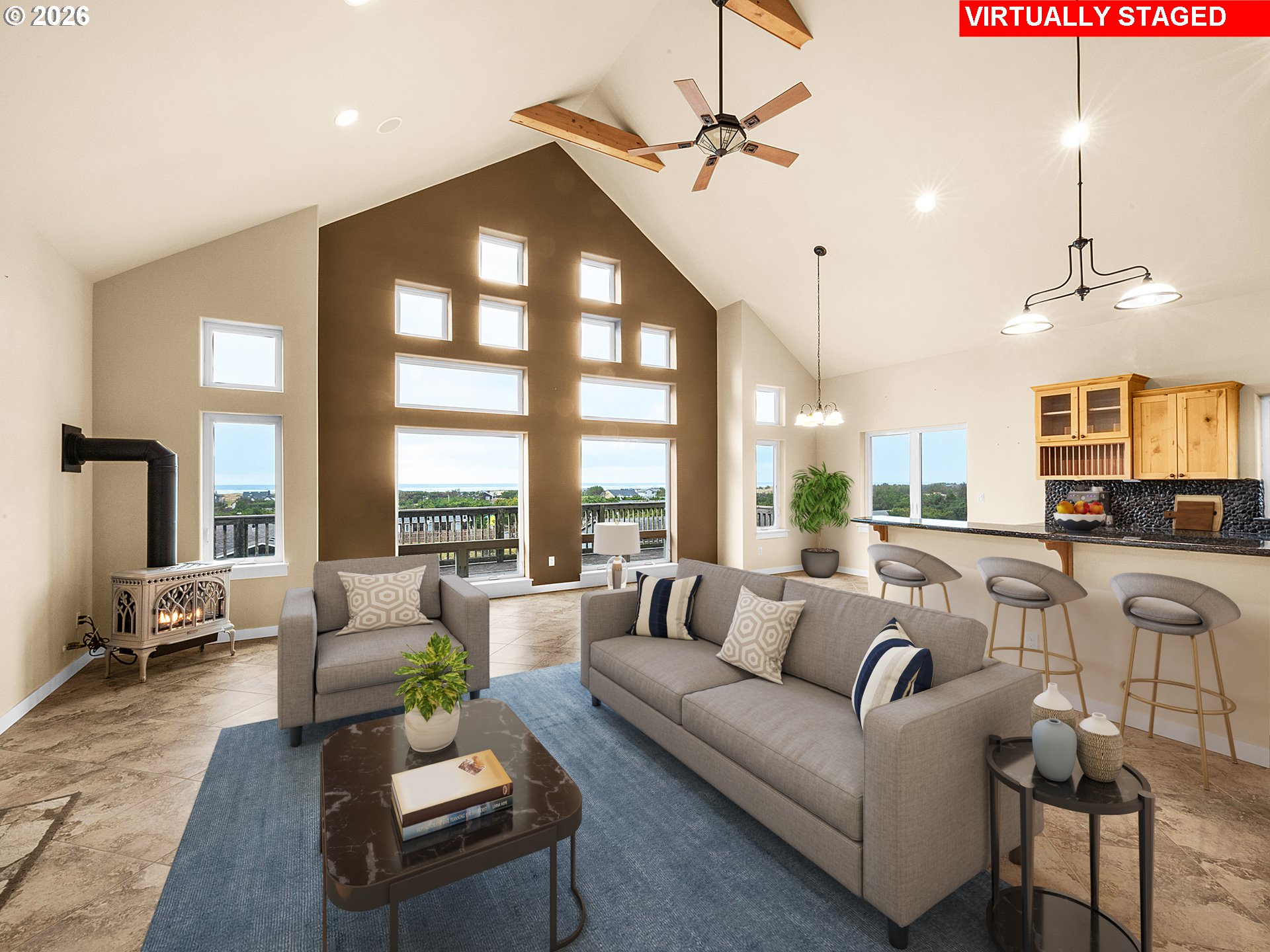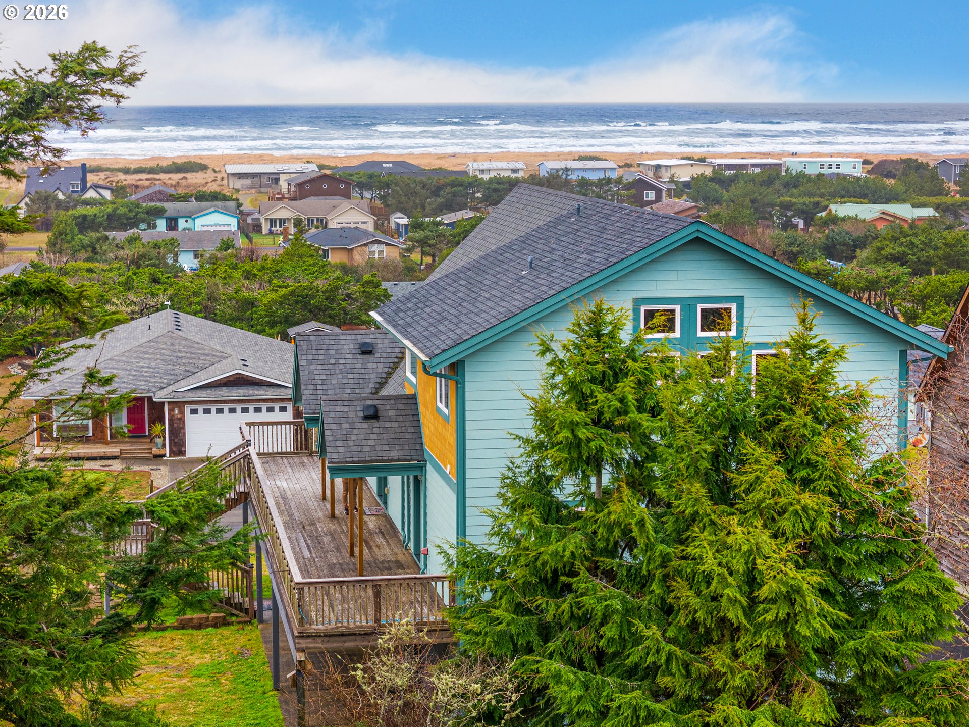 (503) 893-8874Enjoy OCEAN VIEWS across the ENTIRE front of this immaculate custom-built home! Soaring vaulted ceilings and a loft-style primary with ensuite (heated bathroom floors!)make this home uniquely special. The den/office/media room has surround sound, but could also be a great guest room (non conforming- no closet, but seller has an estimate in place for basic closet install if desired). There are built-in speakers inside & out for year-round entertaining. The kitchen is a dream w/ stainless steel appliances, LP Gas Stove, granite countertops, knotty alder cabinets, EZ-close drawers, pantry, and lazy-susan style corner cabinet. Home has high efficiency Convectair all-digital heating system and is wired for a security system. In addition, home has upgraded HD9 structure. The 4-car garage actually has room for 4 cars, in addition to a "shop" area, & 1/2 bath. Washer, dryer and small generator in garage stay. Seller is offering concession specifically toward deck (with strong offer), but is willing to consider all offers!