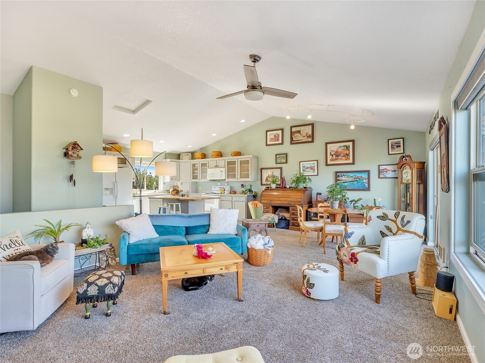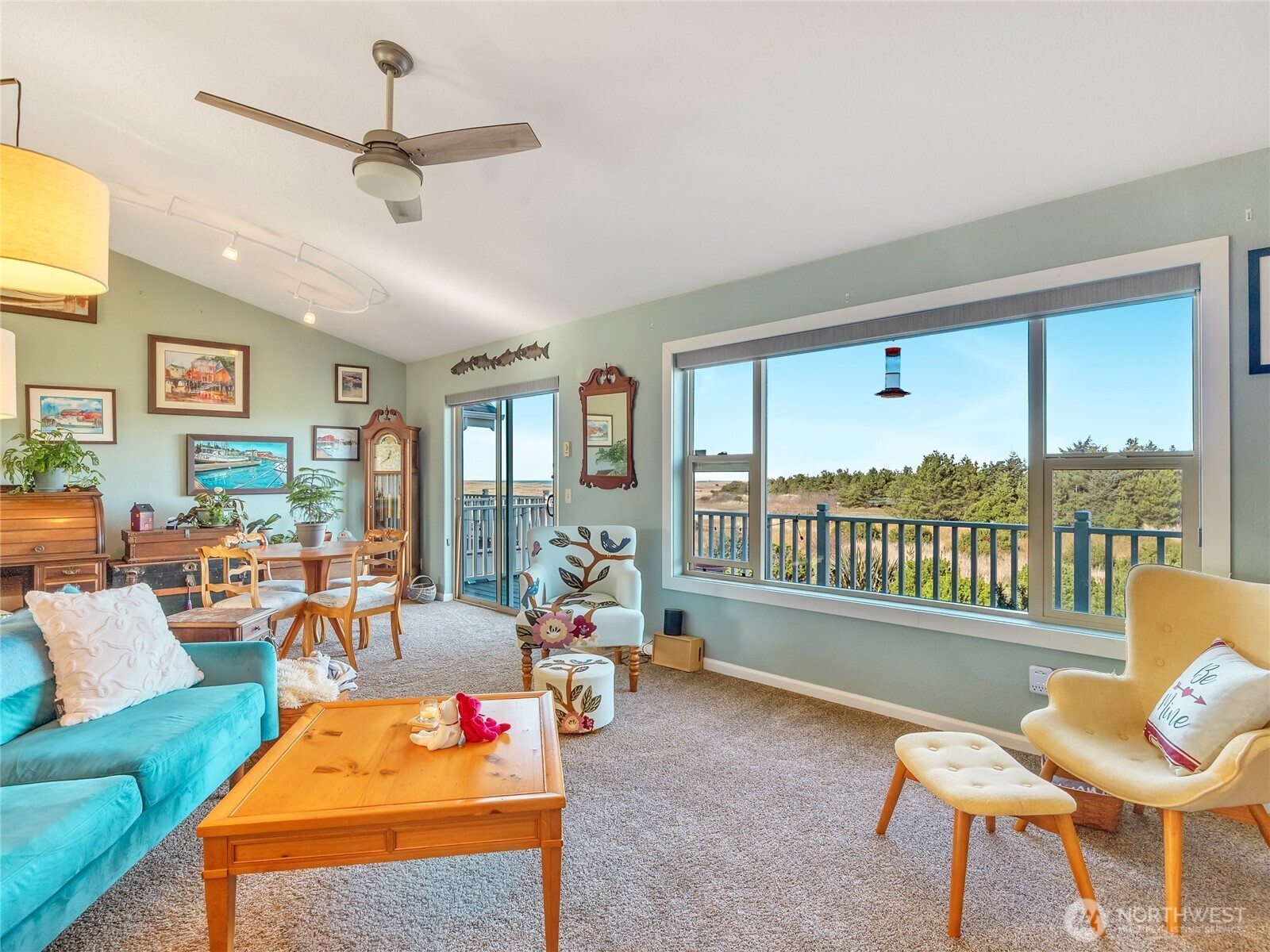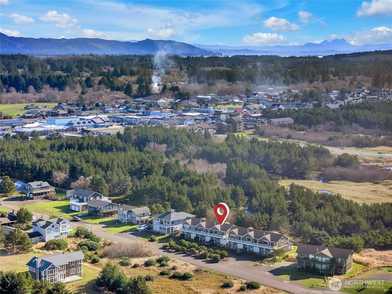 Coastal living awaits in this beautifully updated 2-story condo in Long Beach, WA, with sweeping Pacific Ocean views in an intimate 6-unit complex. This rare end-unit style home lives like a townhouse, offering a smart, comfortable layout with 2 bedrooms and 1 bath on the main entry level. The upgraded downstairs bath features a newly tiled shower and luxurious heated radiant flooring for added comfort after beach walks. Upstairs, an inviting open-concept living, dining, and kitchen space is designed to maximize light and views. Enjoy the warmth and charm of a new electric fireplace with shiplap surround, creating a stylish focal point for relaxing or entertaining. The kitchen has been refreshed with upgraded cabinetry, offering ample storage and a clean, modern look, along with easy flow to the dining area. A convenient half bath on this level adds practicality for guests. With only six units in the building, you’ll appreciate the peaceful, private feel of this small community. A private garage provides secure parking and extra storage for beach gear, bikes, and more. Whether you’re looking for a full-time residence, weekend getaway, or investment property, this ocean-view condo offers the perfect blend of comfort, style, and coastal charm in the heart of Long Beach.