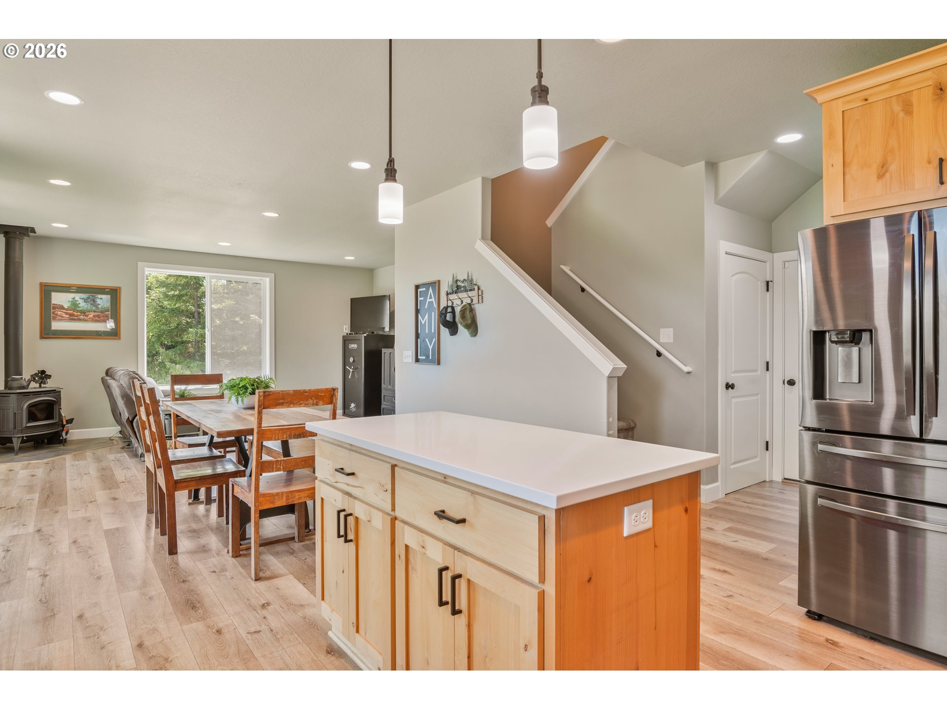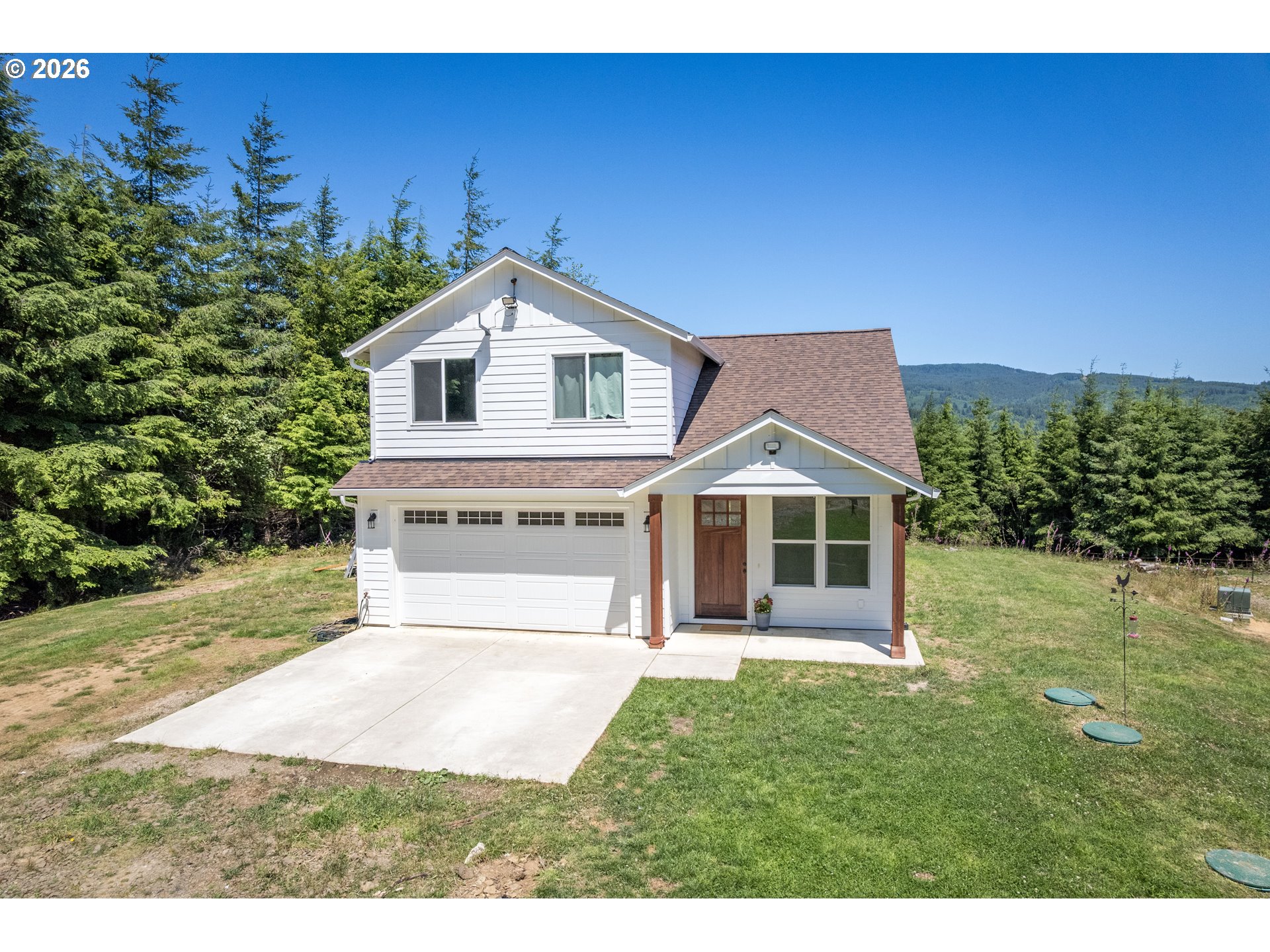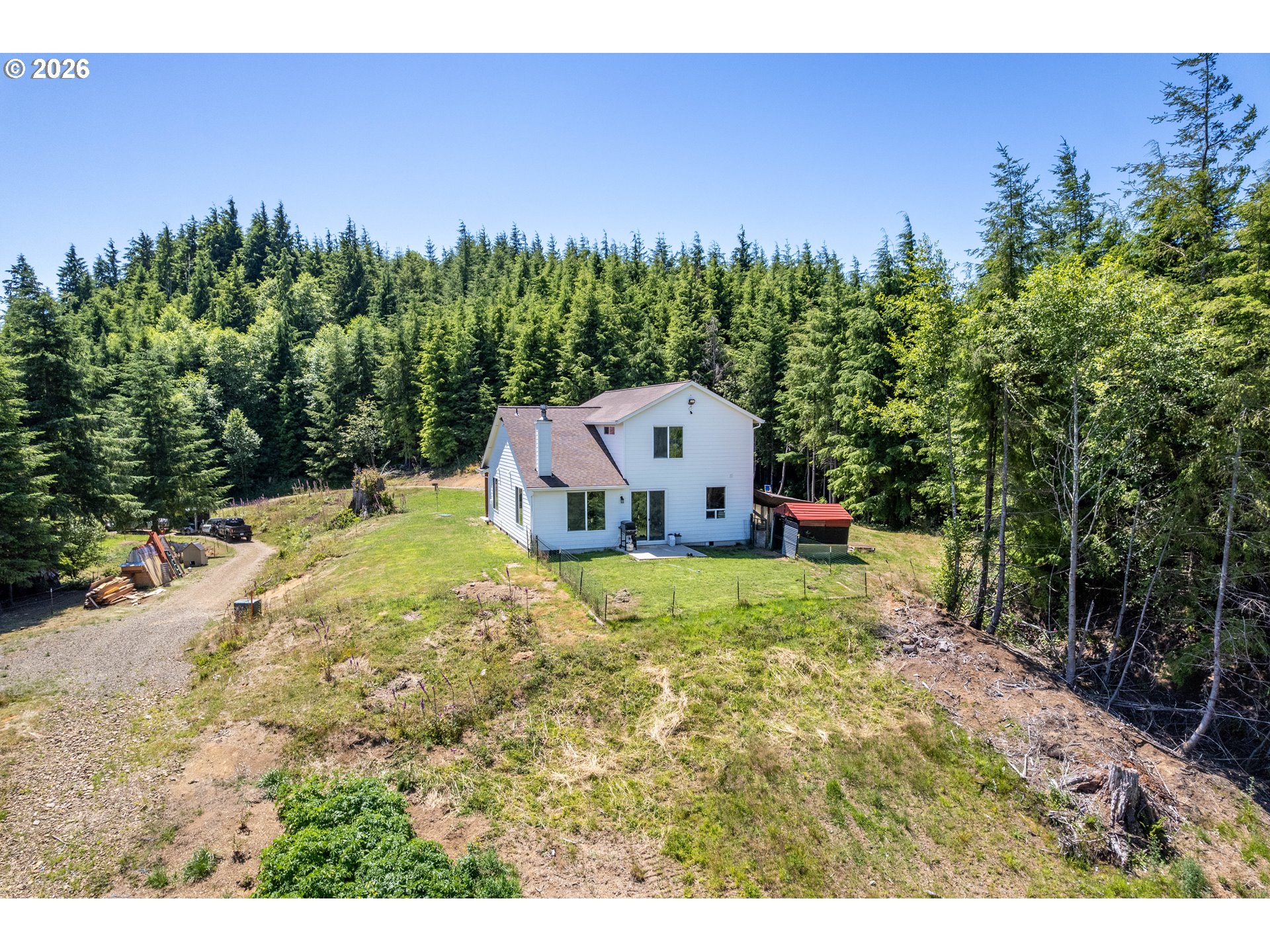 Modern Living meets natural beauty nestled on 13+ forested acres, offering privacy, space and style. Soaring windows flood the space with natural light and frame sweeping views. The grand kitchen has both beauty and function, featuring quartz countertops, stainless steel appliances, abundant storage and counter space. It flows into the dining area and family room, where a wood stove adds warmth and charm. The primary suite is a true retreat with a large walk-in closet and a spa-like bathroom. Two additional bedrooms and a full bath along with a half bath to round out the thoughtfully designed floorplan. RV parking, space for a shop and a small pasture ready for your hobby farm dreams. Potential to subdivide (buyer to verify). This is Northwest living at its best!
