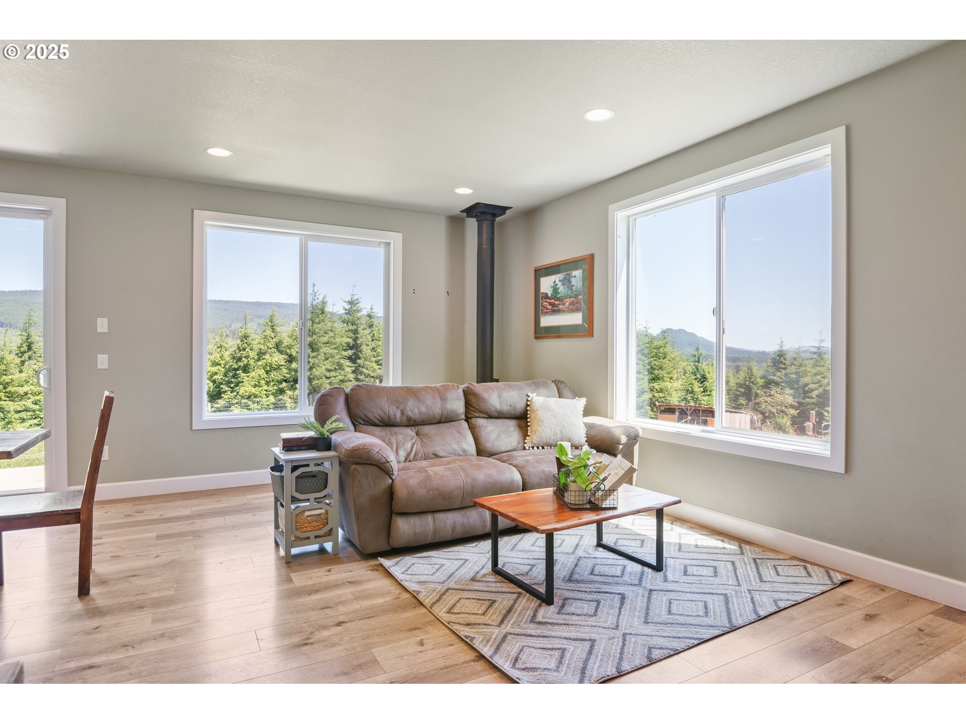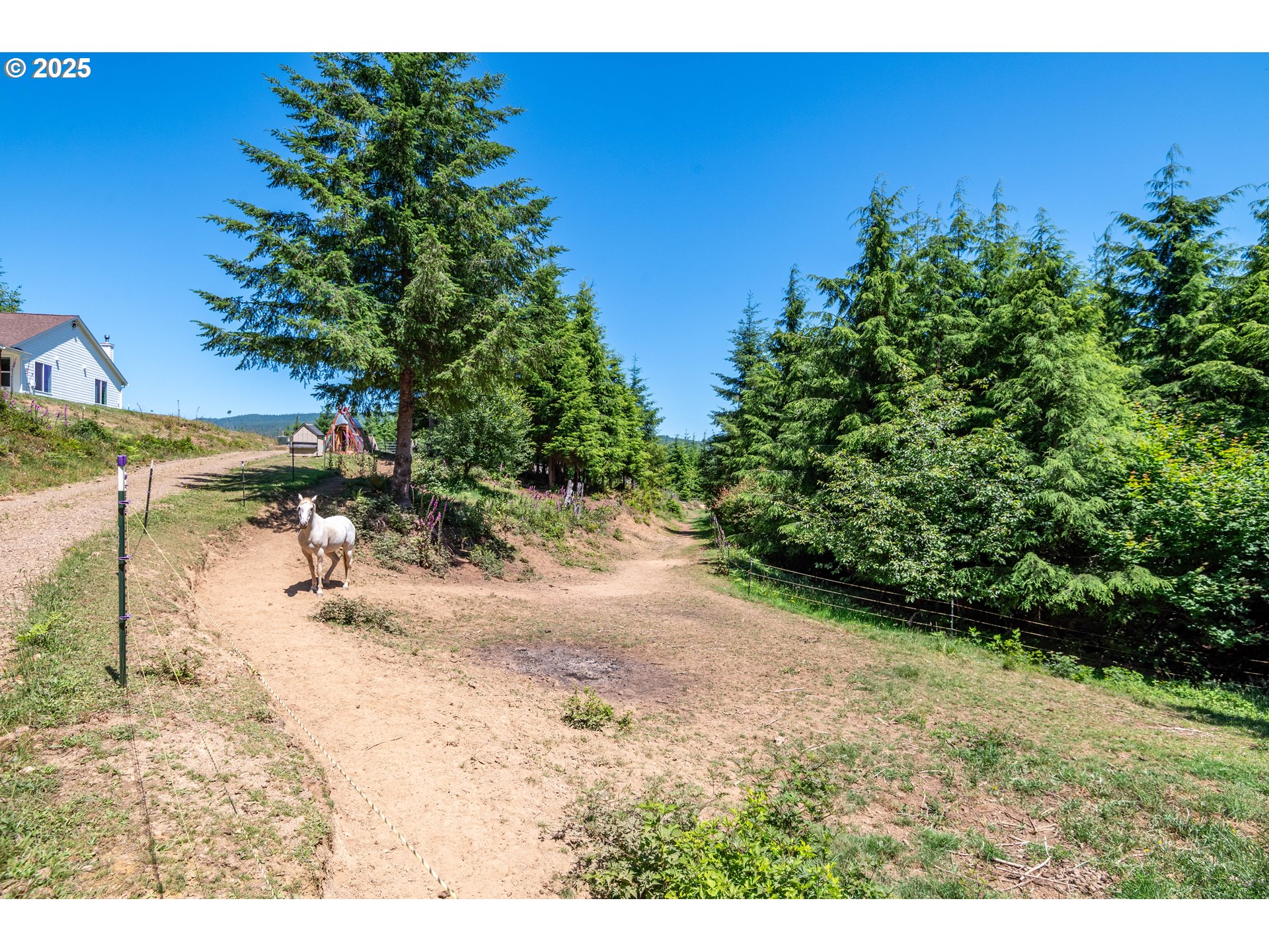 Modern living meets natural beauty on 13+ forested acres. This 2023-built home offers the perfect blend of privacy, space and style, nestled among over 13 acres of fir trees. Step inside to soaring windows that flood the space with natural light and frame sweeping views. You are welcomed by the front living room which offers a quiet retreat, with luxury vinyl flooring throughout the main floor. The grand kitchen is built for both beauty and function, featuring quartz countertops, stainless steel appliances, abundant storage and generous counter space. It flows seamlessly into the dining area and spacious family room, where a wood stove adds warmth and charm- ideal for gatherings or quiet evenings in. The primary suite is a true retreat with a large walk-in closet and a spa-like bathroom complete with an oversized tiled shower. Two additional bedrooms and 1.5 baths round out the thoughtfully designed floor plan. Outside there is room to stretch out. RV parking, space for a shop and a small pasture with chicken coop ready for your hobby farm dreams. With potential to subdivide (buyer to verify), this property offers both lifestyle and investment opportunity. Private, peaceful and surrounded by evergreens- this is Northwest living at its best!