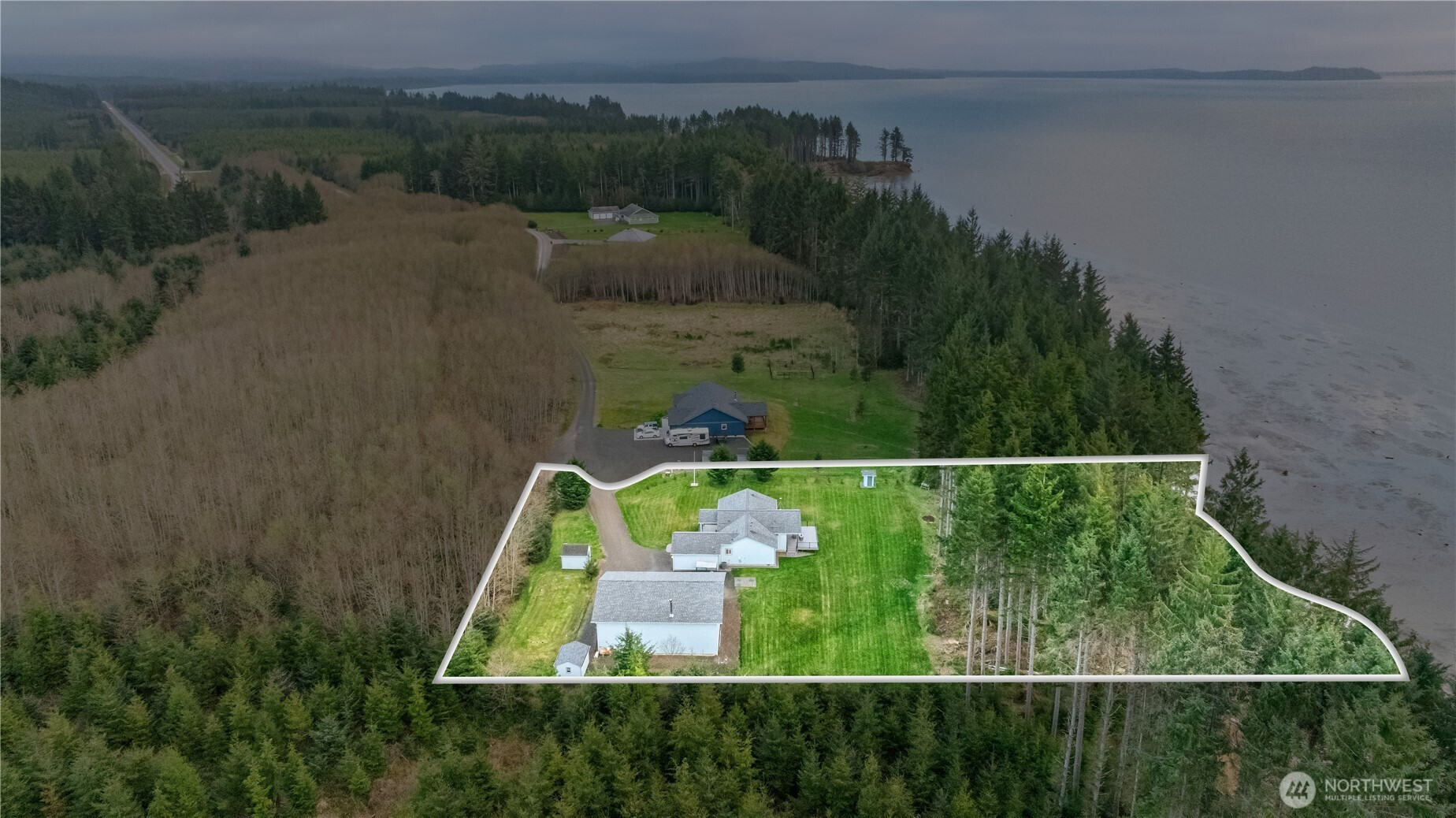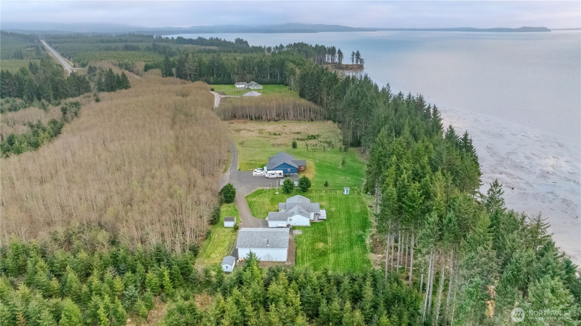 Nestled at the very end of a quiet cul-de-sac in desirable Willapa Bay Estates, this beautifully designed 3-bedroom, 1.75-bath home offers privacy, tranquility, and truly one-of-a-kind views from the moment you step inside. Situated on just over 2 acres, the property provides the perfect blend of space and functionality, ideal for those seeking room to live, work, and play. The open-concept layout welcomes you with a spacious dining area right off the entry, seamlessly flowing into a stunning kitchen featuring a distinctive hexagon island, sleek stainless steel appliances, and elegant granite countertops, perfect for both everyday living and entertaining. The main living room continues to impress with vaulted ceilings, large windows, wood stove, and direct access to the large front deck w/ glass railing, trex decking and an outdoor firepit. Retreat to the generously sized primary suite, complete with a walk-in closet and a private bath, offering a peaceful haven at the end of the day. Additional to the attached 2-car garage, the property continues to impress with a massive 3-bay, 2,000 sq. ft. insulated shop complete with a ¾ bathroom, 200 amp service, and wood stove, ideal for hobbyists. There’s also dedicated RV parking with full hookups, plus a 10 x 12 garden shed for additional storage. With its unique setting, over 2 acres of usable land, impressive shop space, and breathtaking views, this is truly a rare opportunity in the Pacific Northwest.