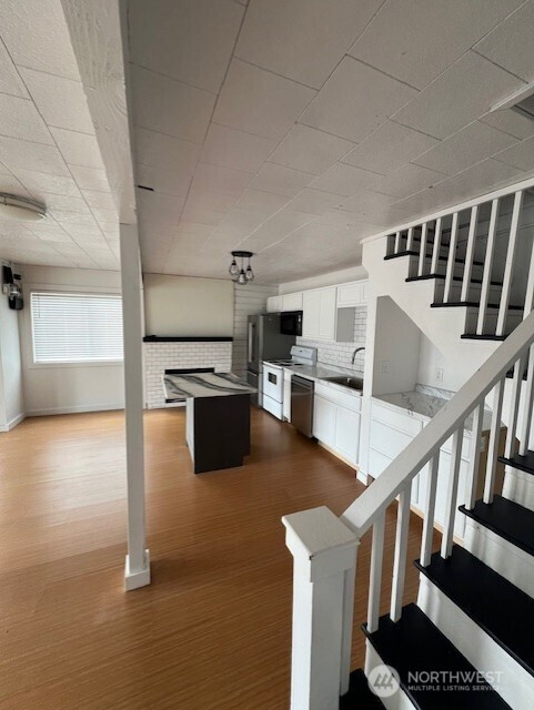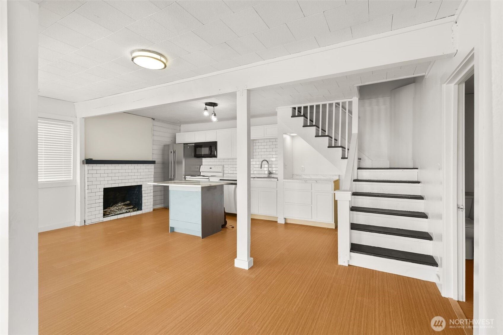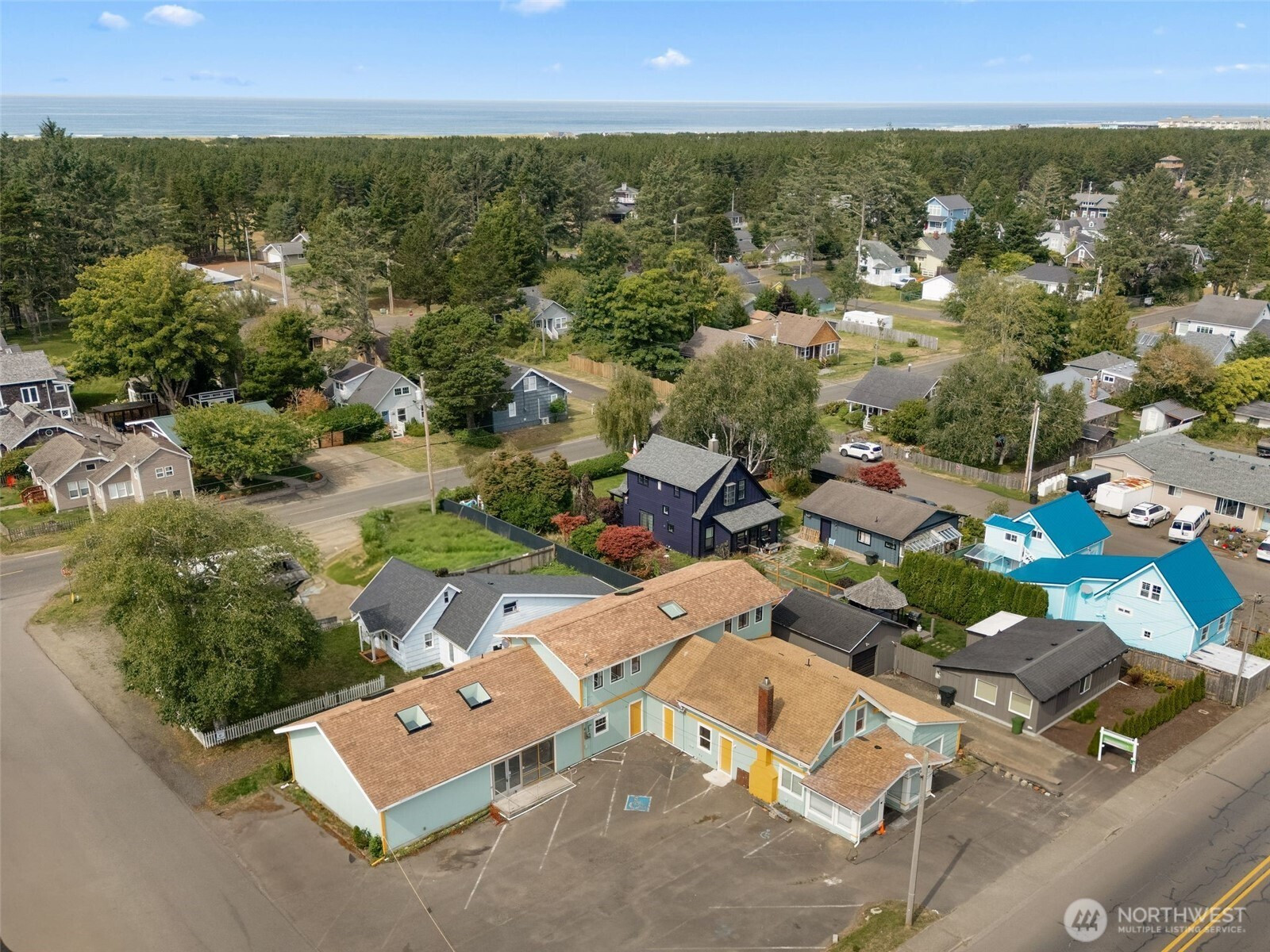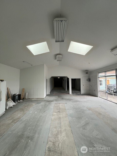 Located on the main thoroughfare, this large community commercial building includes room for a business of your choice and two living spaces one unfinished and one ready to go. Living space includes kitchen, living space, 3 bedroom, 2 bathrooms. Brand new appliances, include washer and dryer, refrigerator and dishwasher newer stove and microwave. The kitchen and living spaces have been remodeled. Finish the 2nd unit to your liking, included are all permitted plans; it is approximately 400 sq. ft. This unit has a new foundation and updated systems. The shop area has vaulted ceilings, sky lights, loft area, 6 large bay windows, also an ADA ramp. There are 12 parking spaces. The property will be sold as is.
