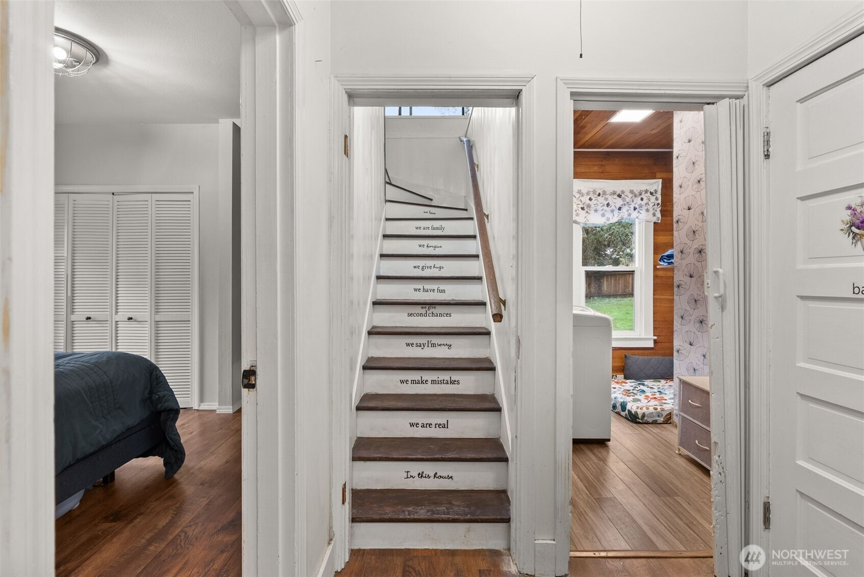 Welcome to this charming 3-bedroom home on a large double lot in a quiet neighborhood close to amenities and a nearby park. Enjoy outdoor living with a backyard featuring a fire pit, garden space, large play area, privacy fencing, and a covered back patio with hot tub—perfect for relaxing year-round. Enter through the covered front porch into a welcoming living area with built-in storage throughout. The bright kitchen offers subway tile and an island with seating. The main-floor primary bedroom includes a full bath with dual vanity and shower/tub combo. Upstairs are two additional bedrooms with new carpet and a half bath. Attached one-car garage, and ample driveway parking.