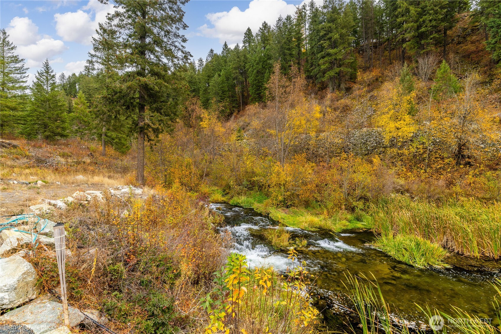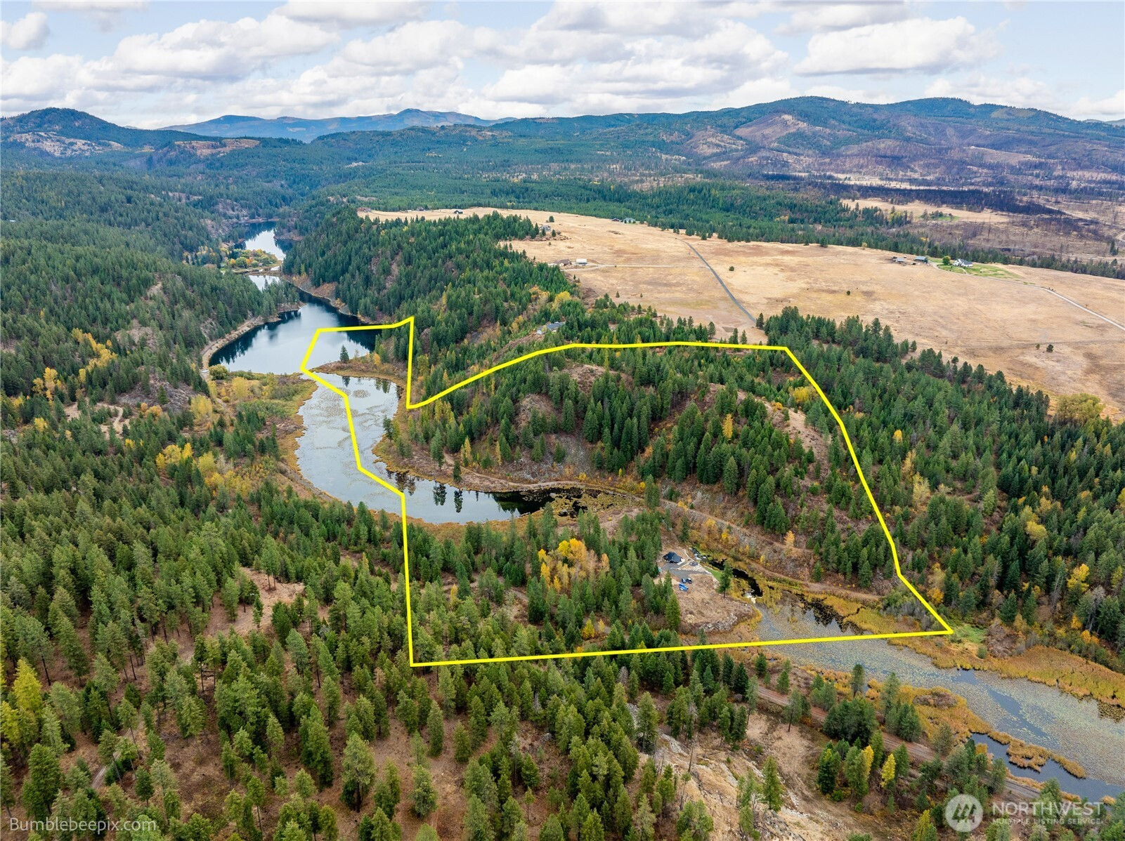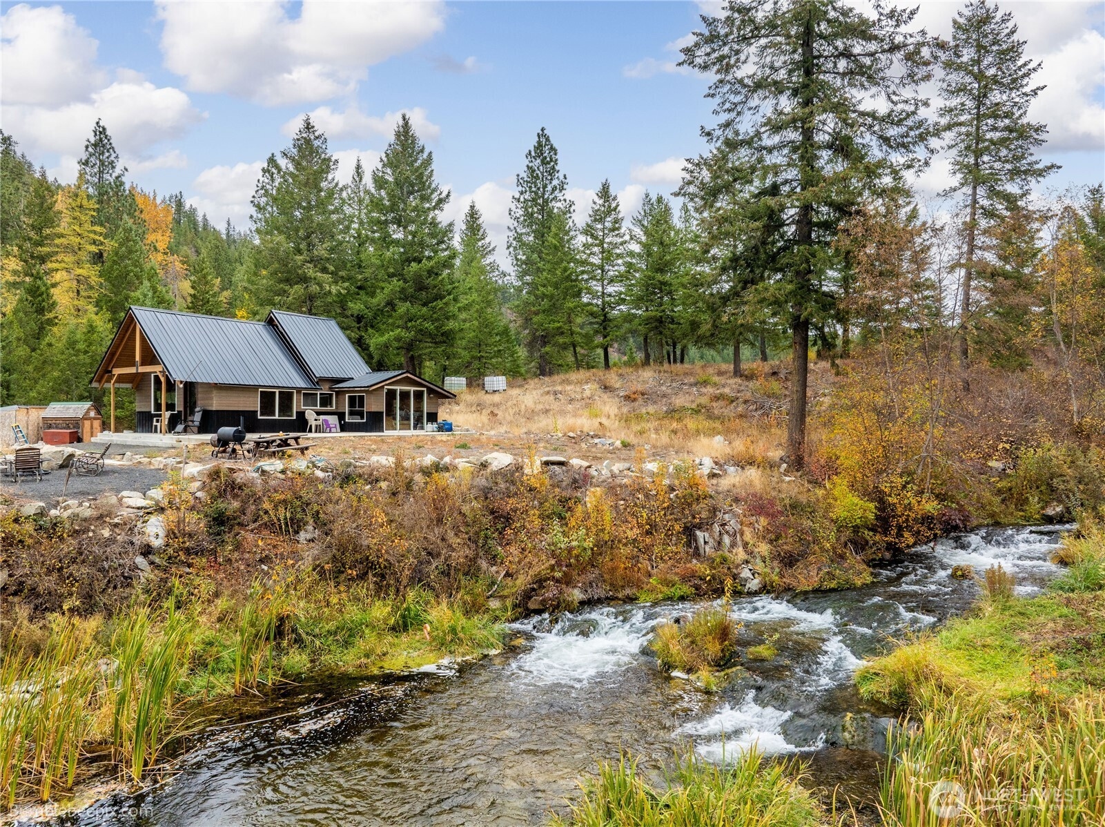 Discover rare privacy and panoramic mountain views on private acreage along the headwaters of the Little Spokane River, just 25 miles north of Spokane. This unique property features a 2015 remodeled, off-grid 960 sq ft cabin set along the river’s edge—ideal for a peaceful retreat, hunting base, or weekend escape. Enjoy abundant wildlife and expansive open space rarely found this close to town. Incredible potential for recreation, seclusion, or future development. Sale contingent upon buyer’s concurrent purchase of xx N Chain Lake Dr; combined parcels total approximately 52 acres and include frontage on Chain Lake and the Little Spokane River, along with prime building sites overlooking Chain Lake.